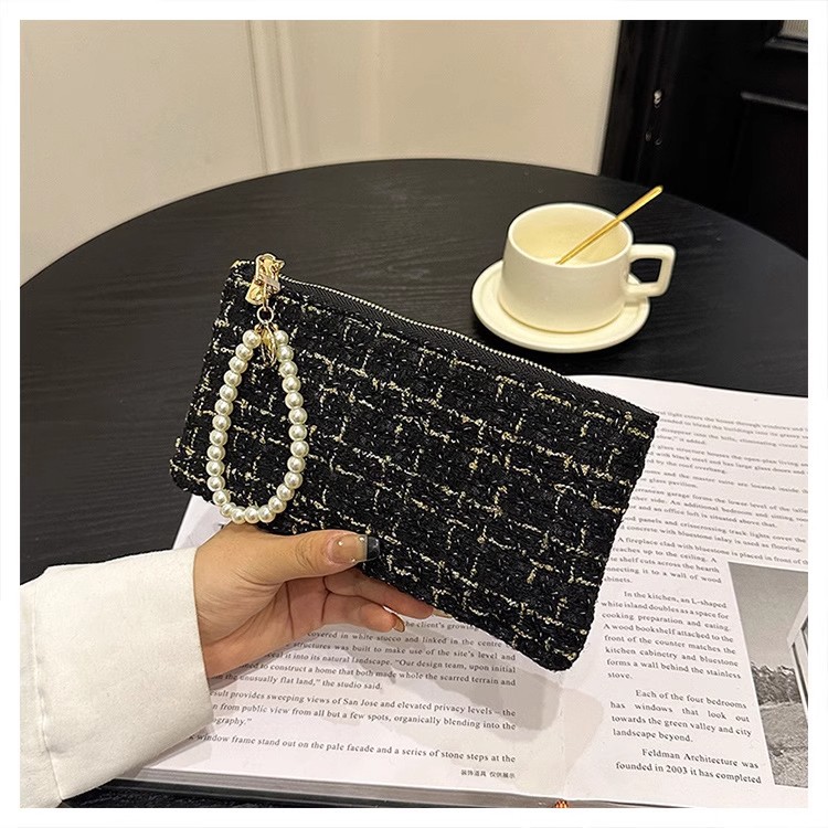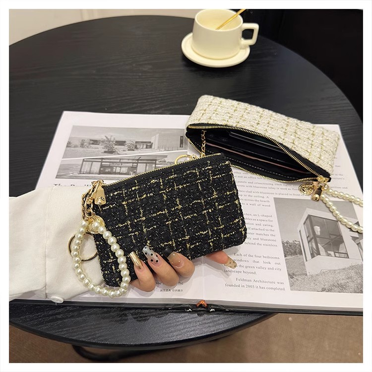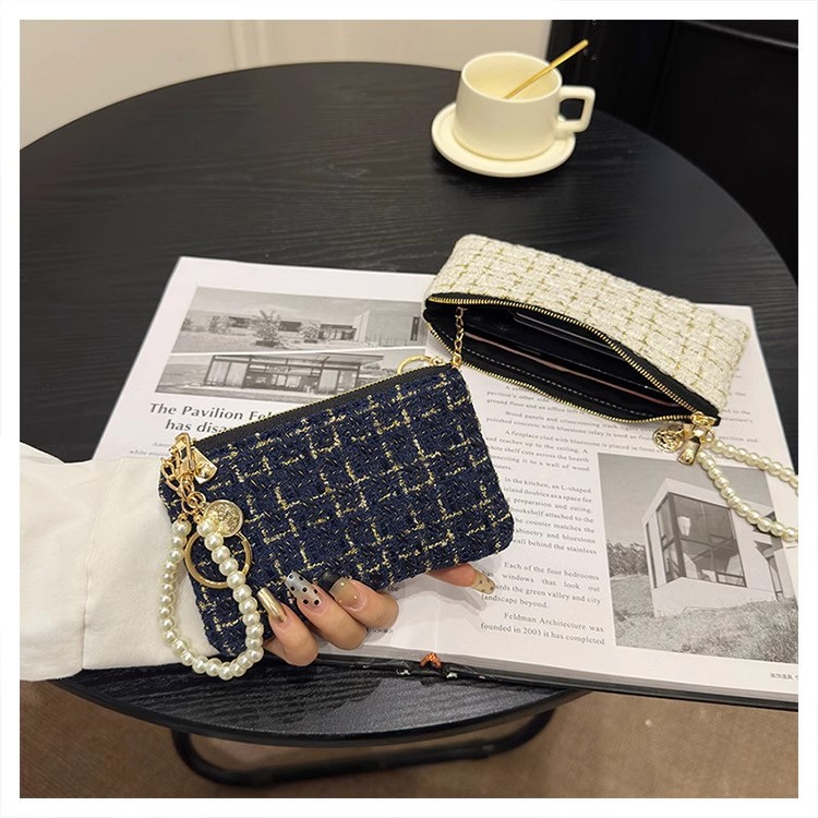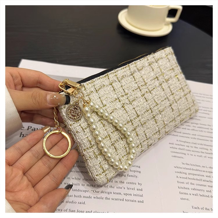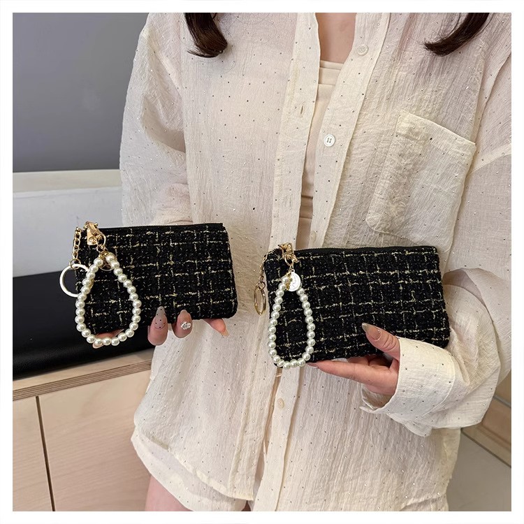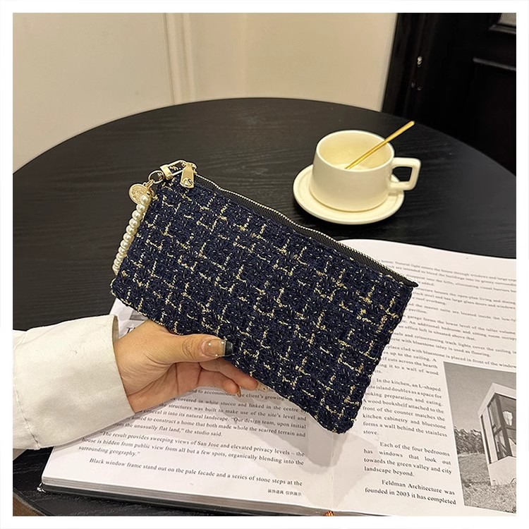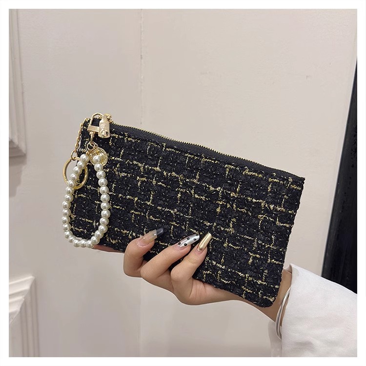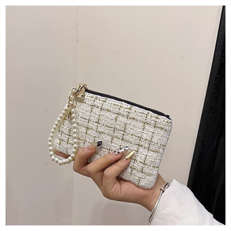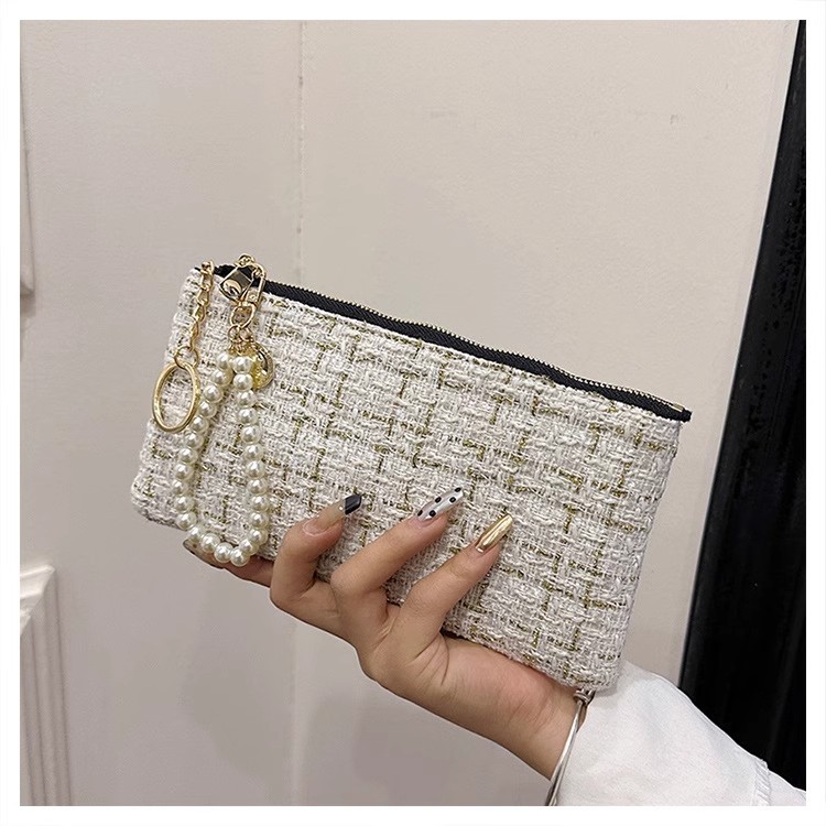 지갑 여성용 짧은 샤넬 스타일 지퍼 코인 백 캔버스 짠 카드 홀더 절묘한 드라이버 라이센스 키 클러치 백