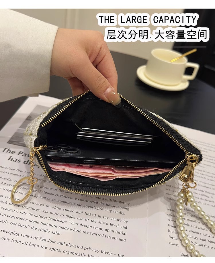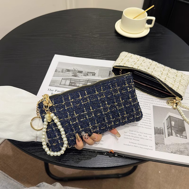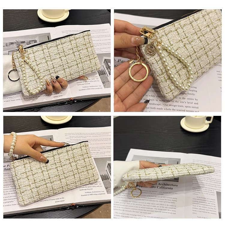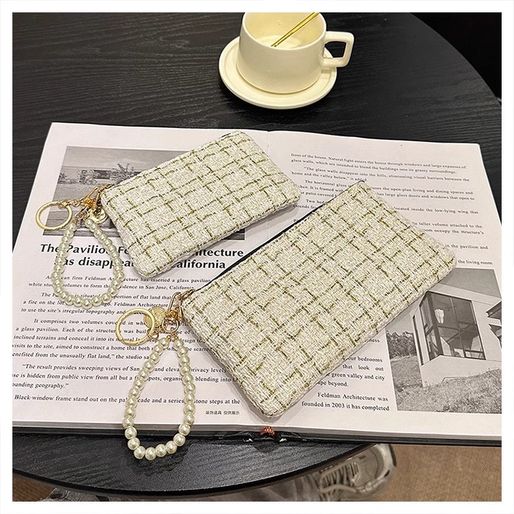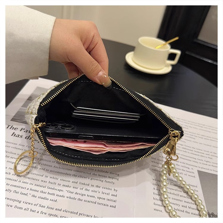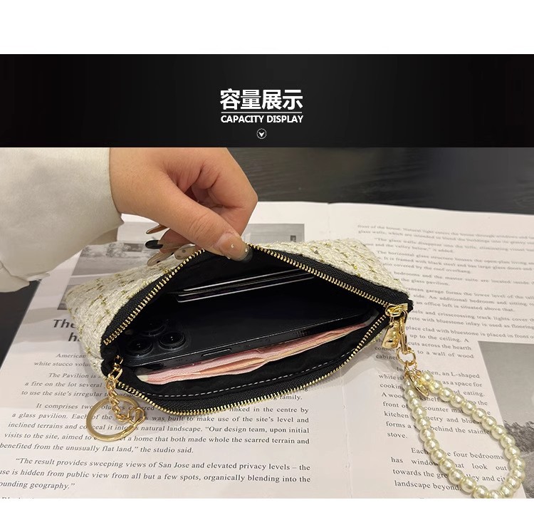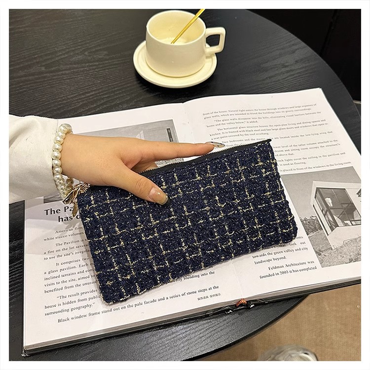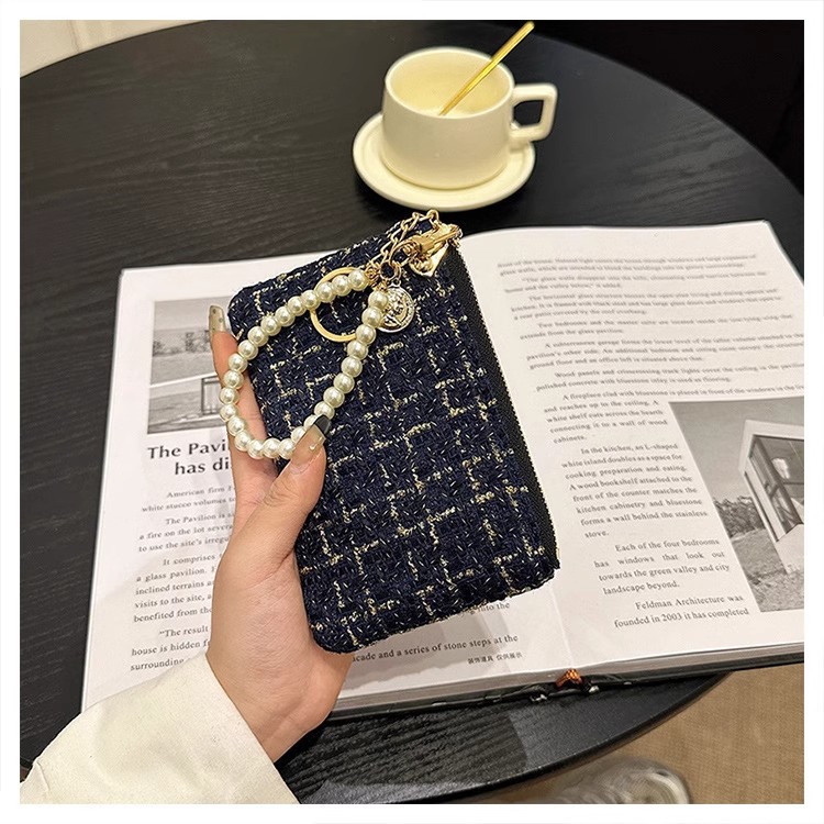 지갑 여성용 짧은 샤넬 스타일 지퍼 코인 백 캔버스 짠 카드 홀더 절묘한 드라이버 라이센스 키 클러치 백