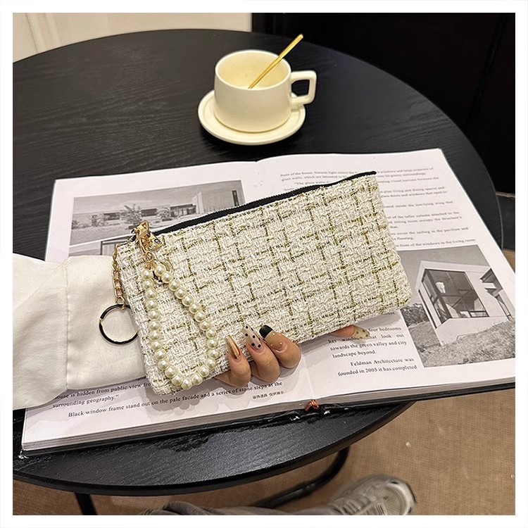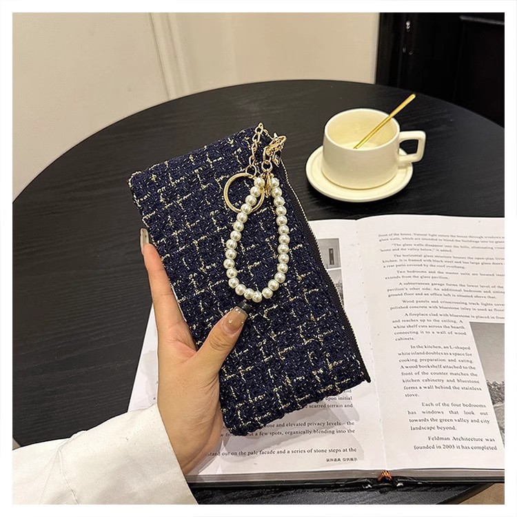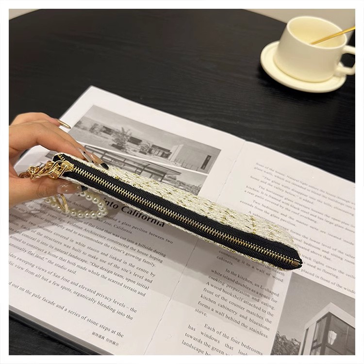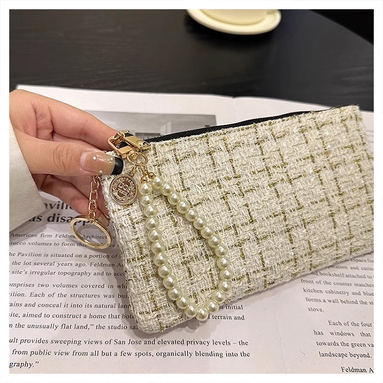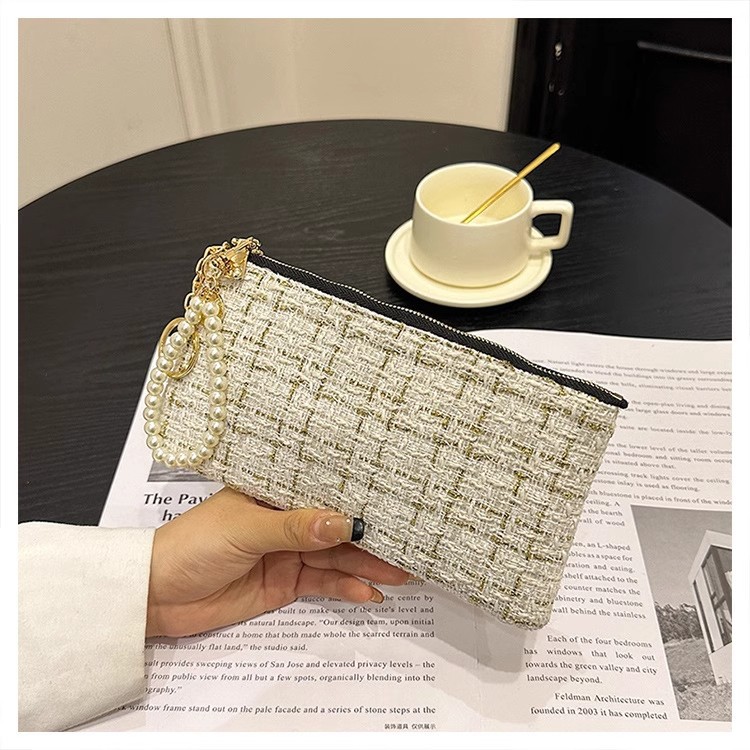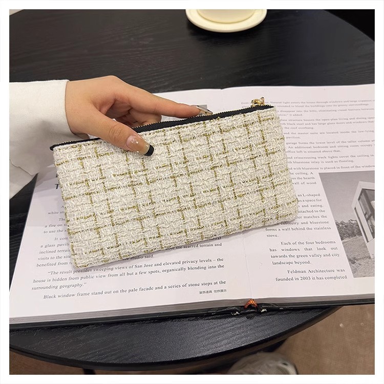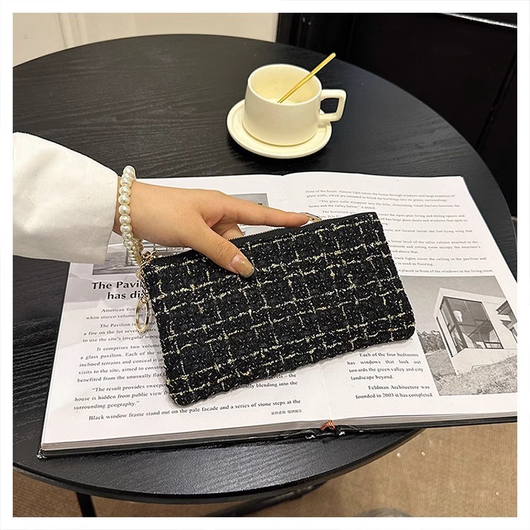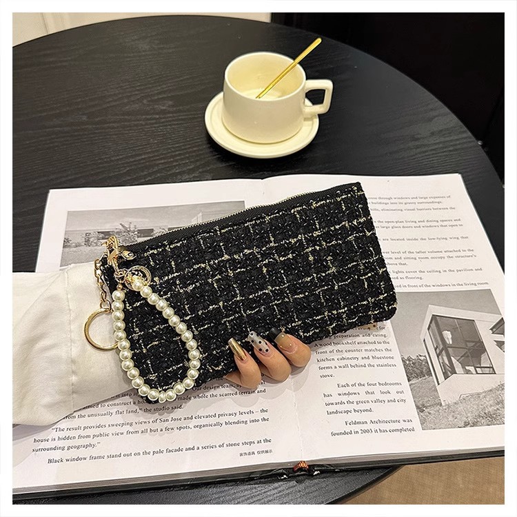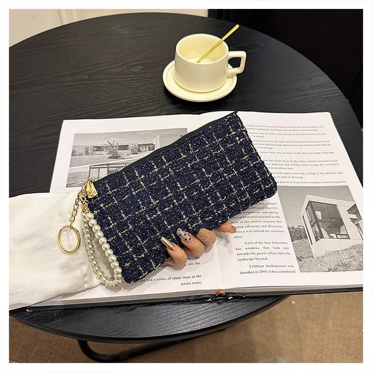 지갑 여성용 짧은 샤넬 스타일 지퍼 코인 백 캔버스 짠 카드 홀더 절묘한 드라이버 라이센스 키 클러치 백