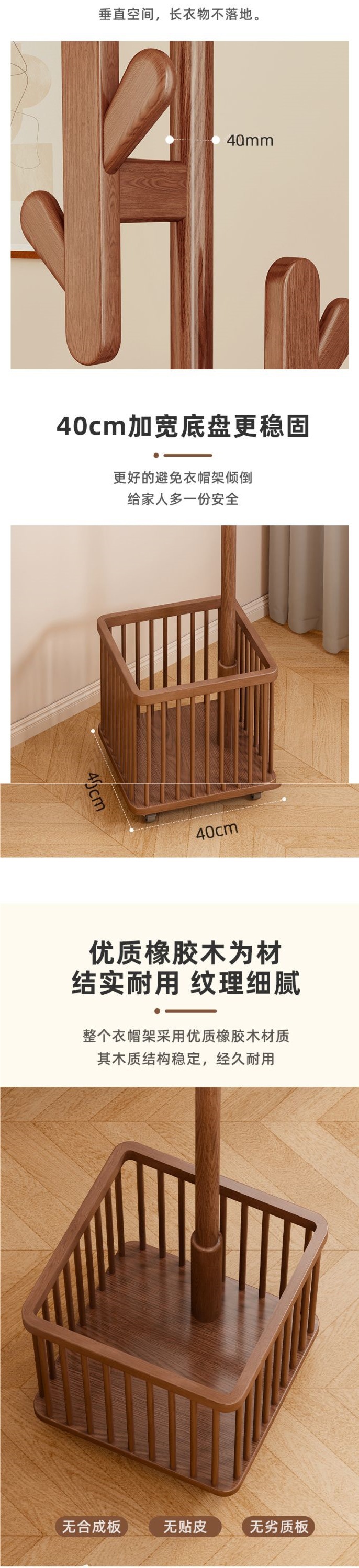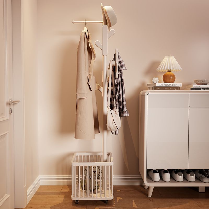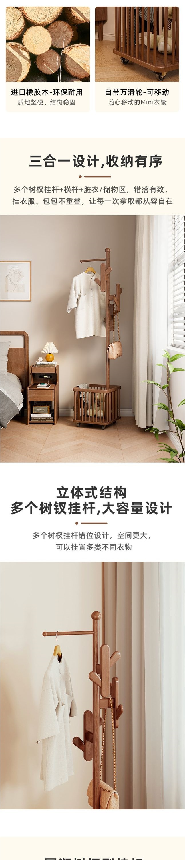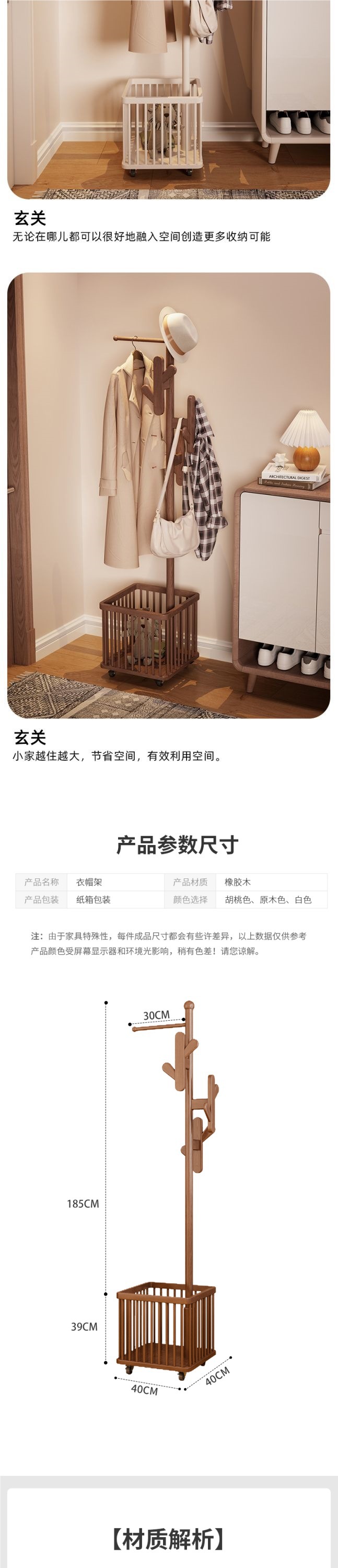 단단한 나무 옷걸이 바닥 코트 랙 침실 이동식 가정용 옷 바구니 보관 랙 걸이 다기능 가방