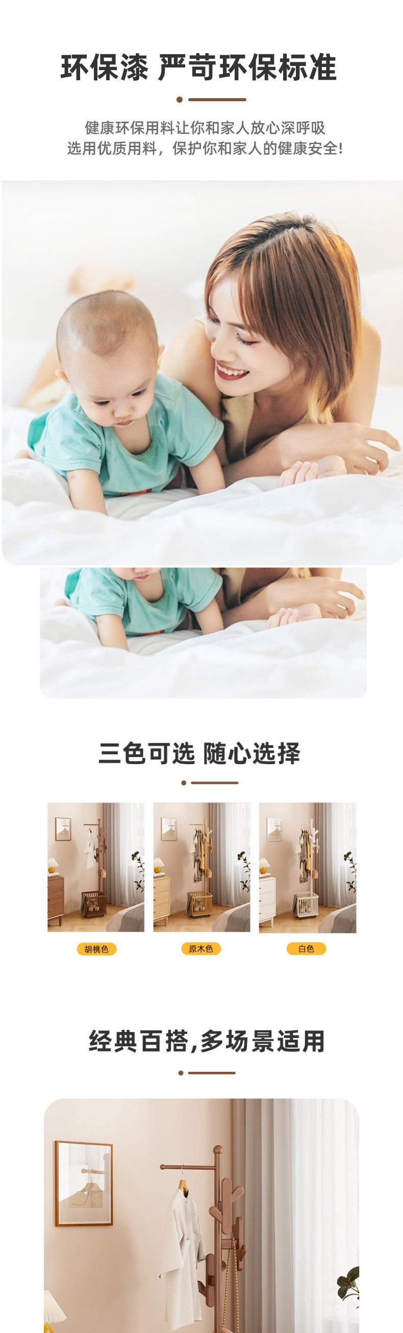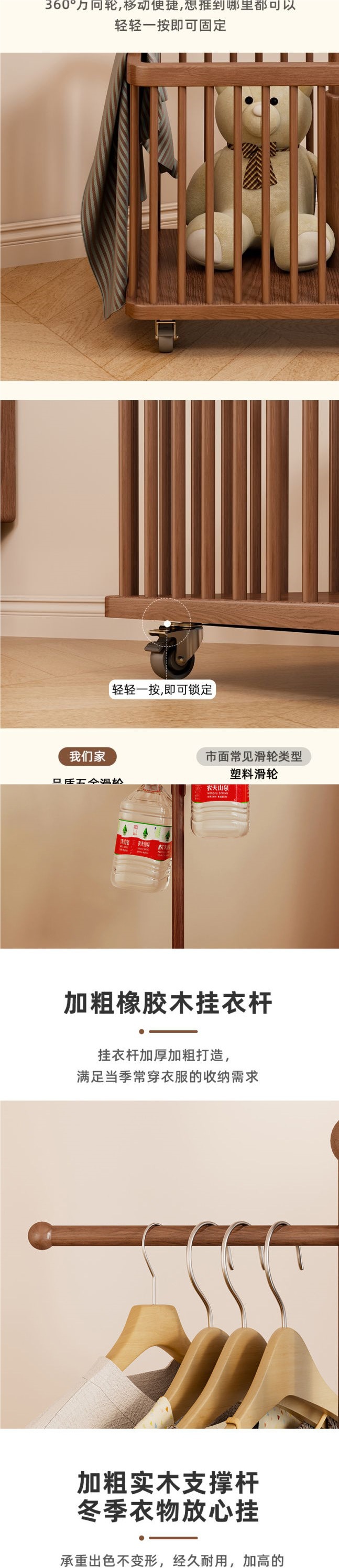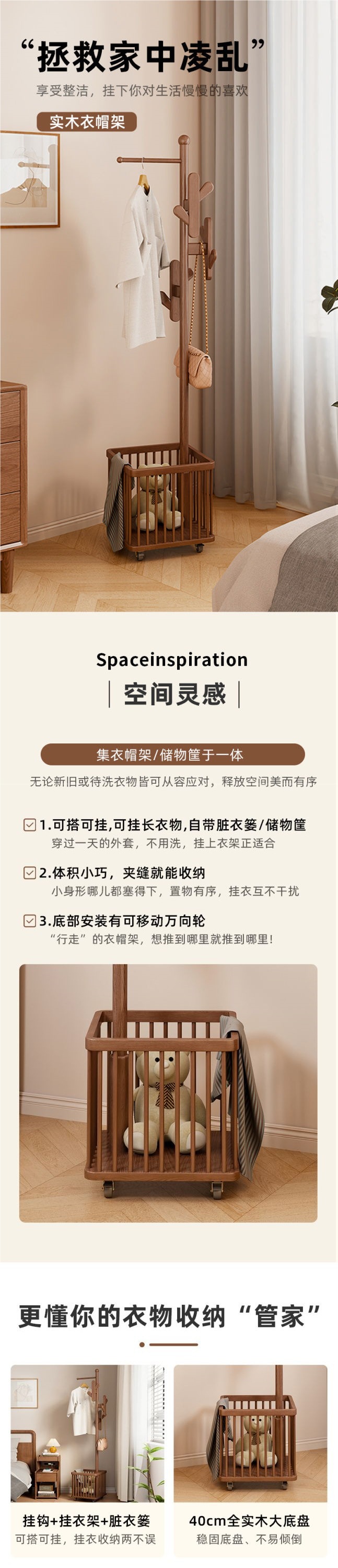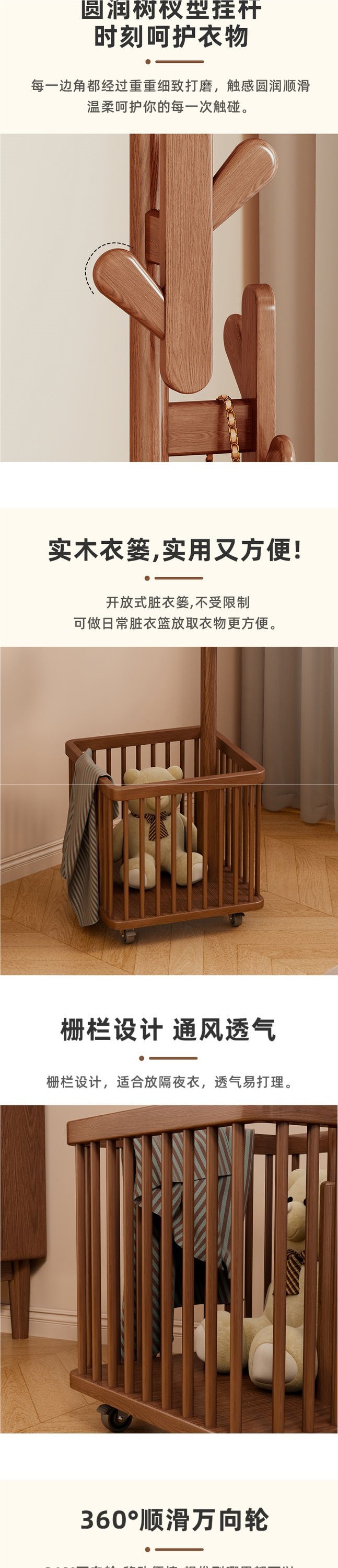 단단한 나무 옷걸이 바닥 코트 랙 침실 이동식 가정용 옷 바구니 보관 랙 걸이 다기능 가방