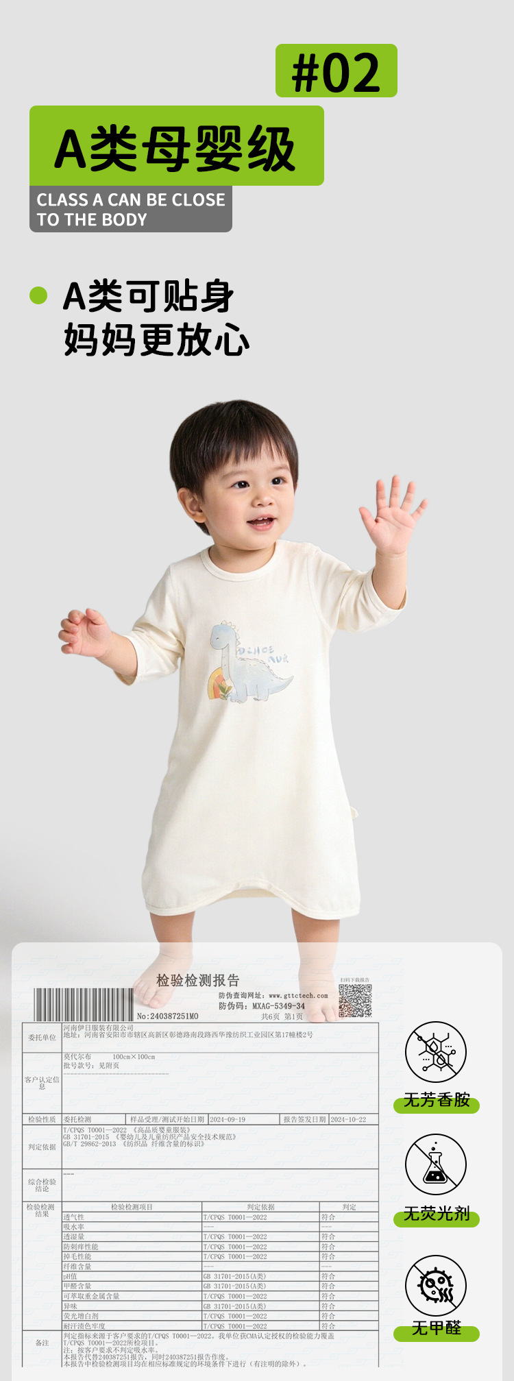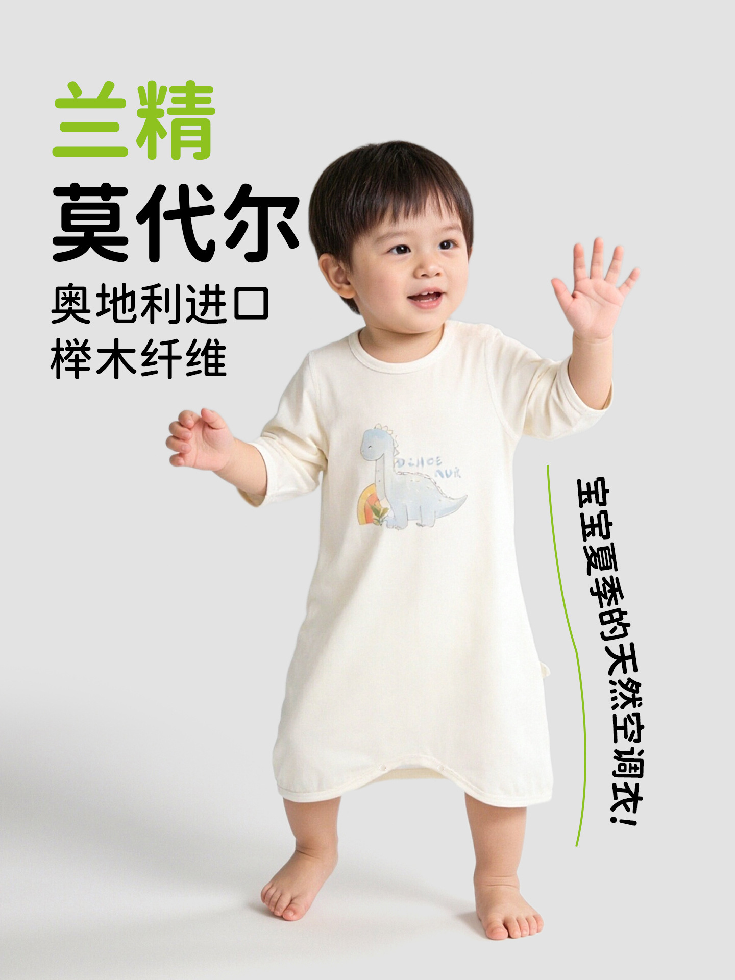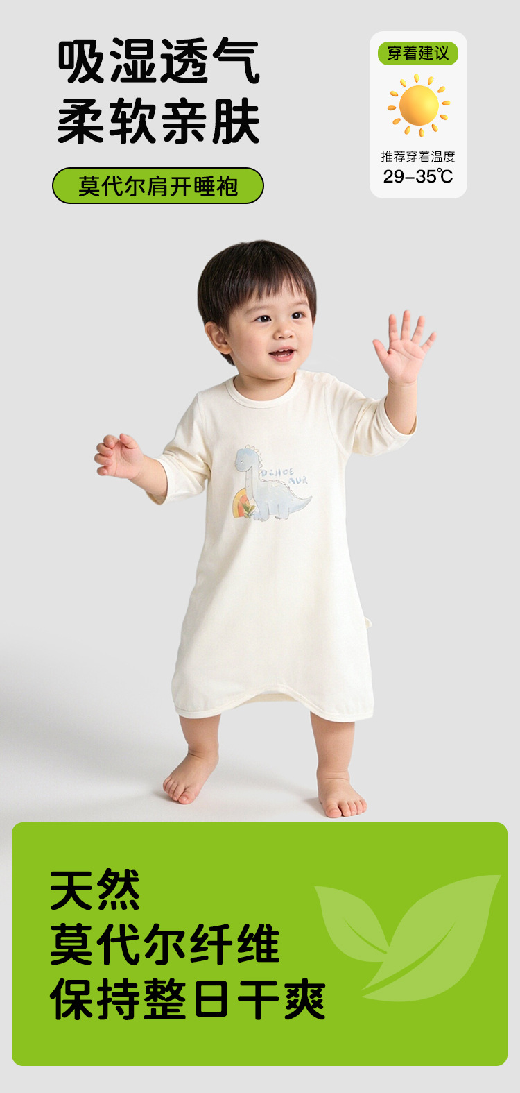 공룡 아기 9부 소매 잠옷