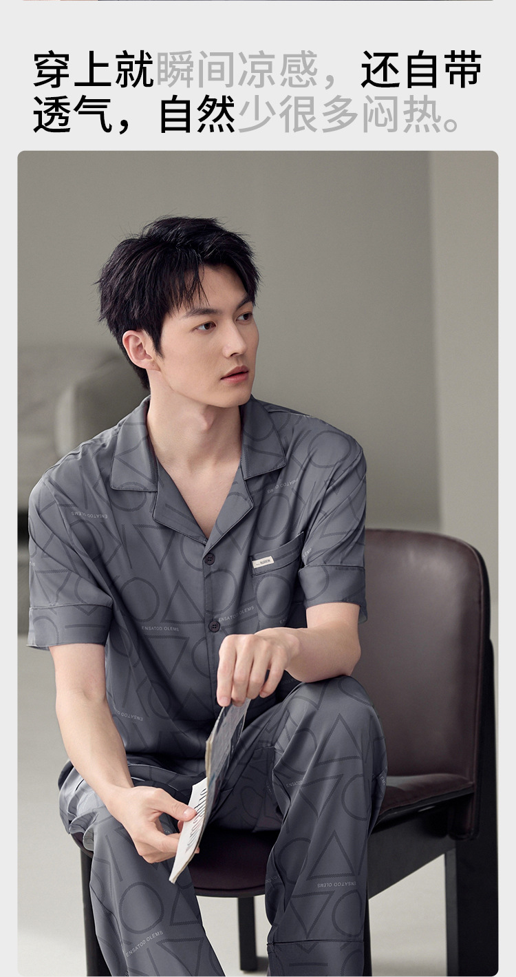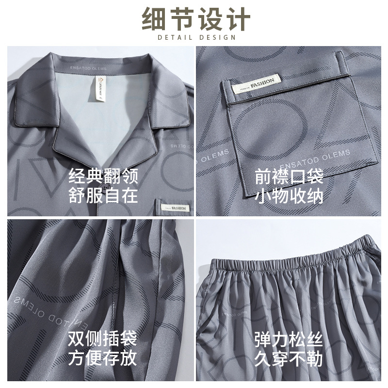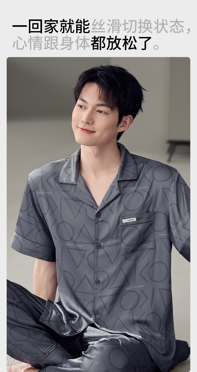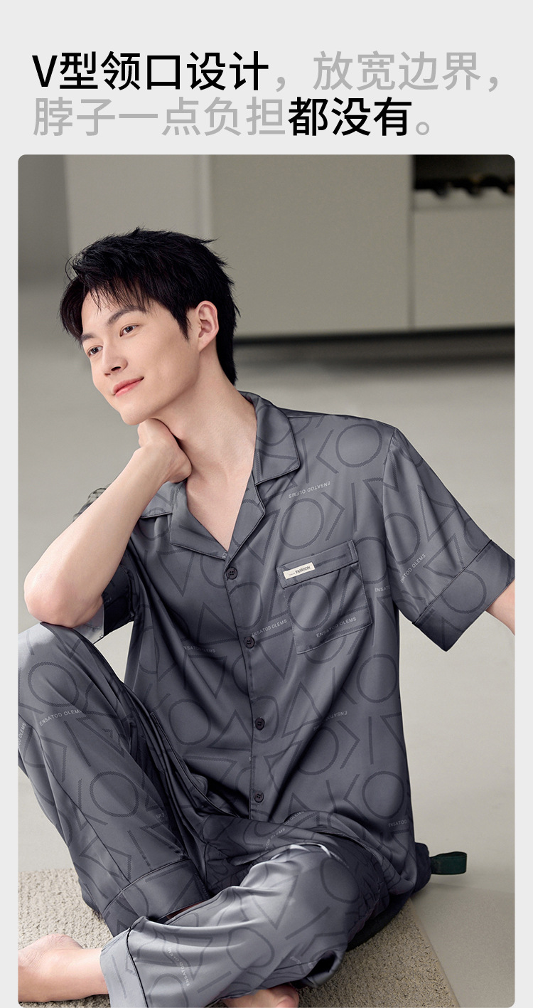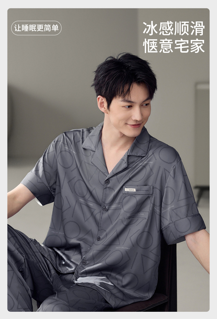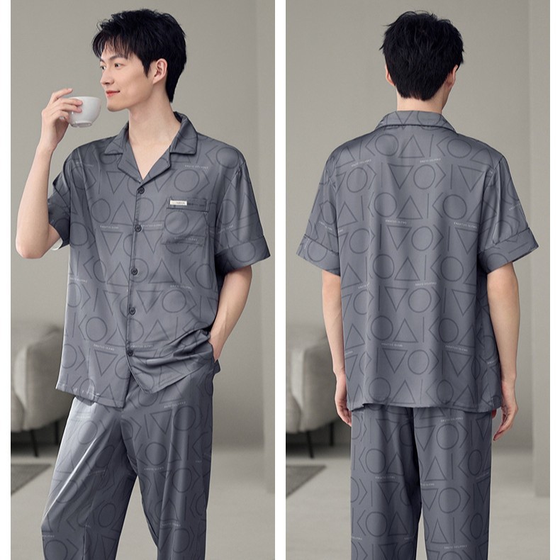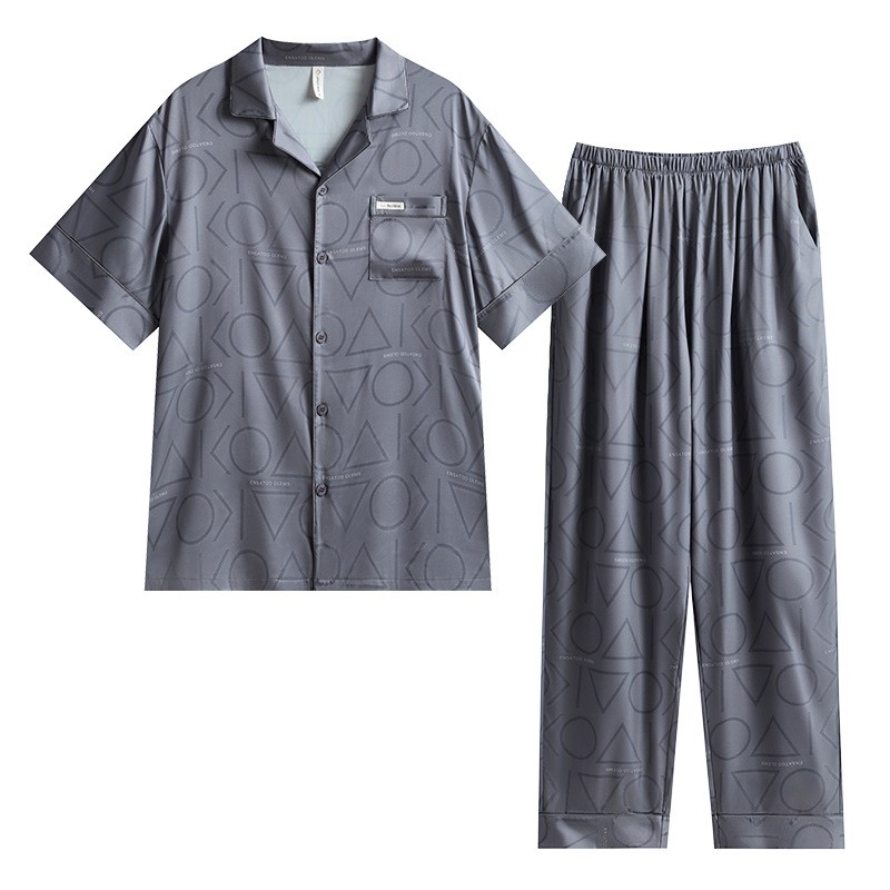 남성용 잠옷 여름 얇은 얼음 실크 간단한 청소년 한국어 버전 시뮬레이션 실크 느슨한 대형 홈웨어 세트
