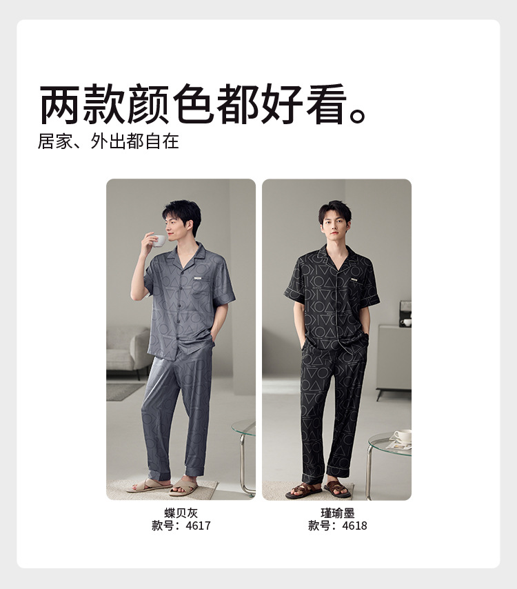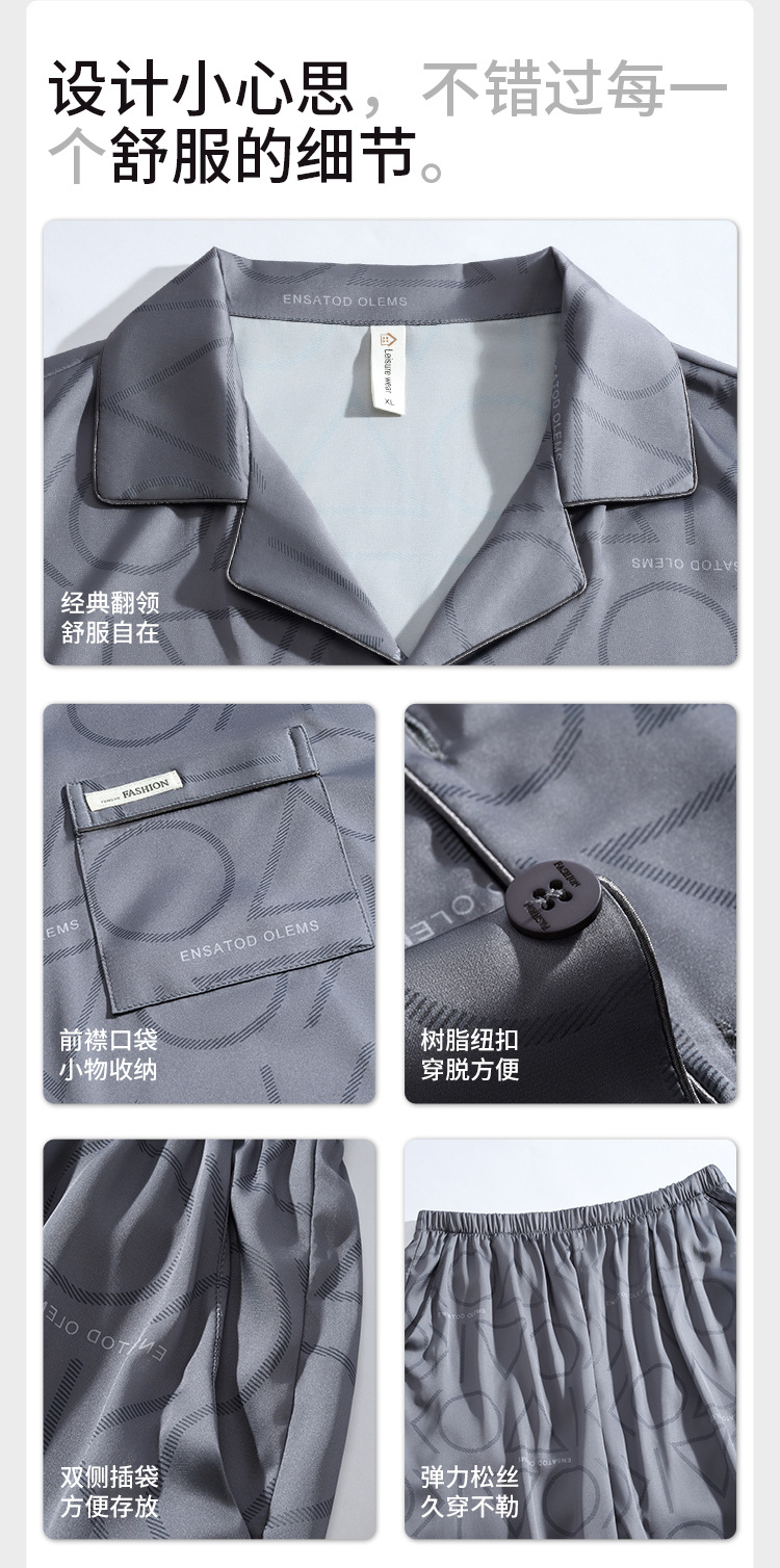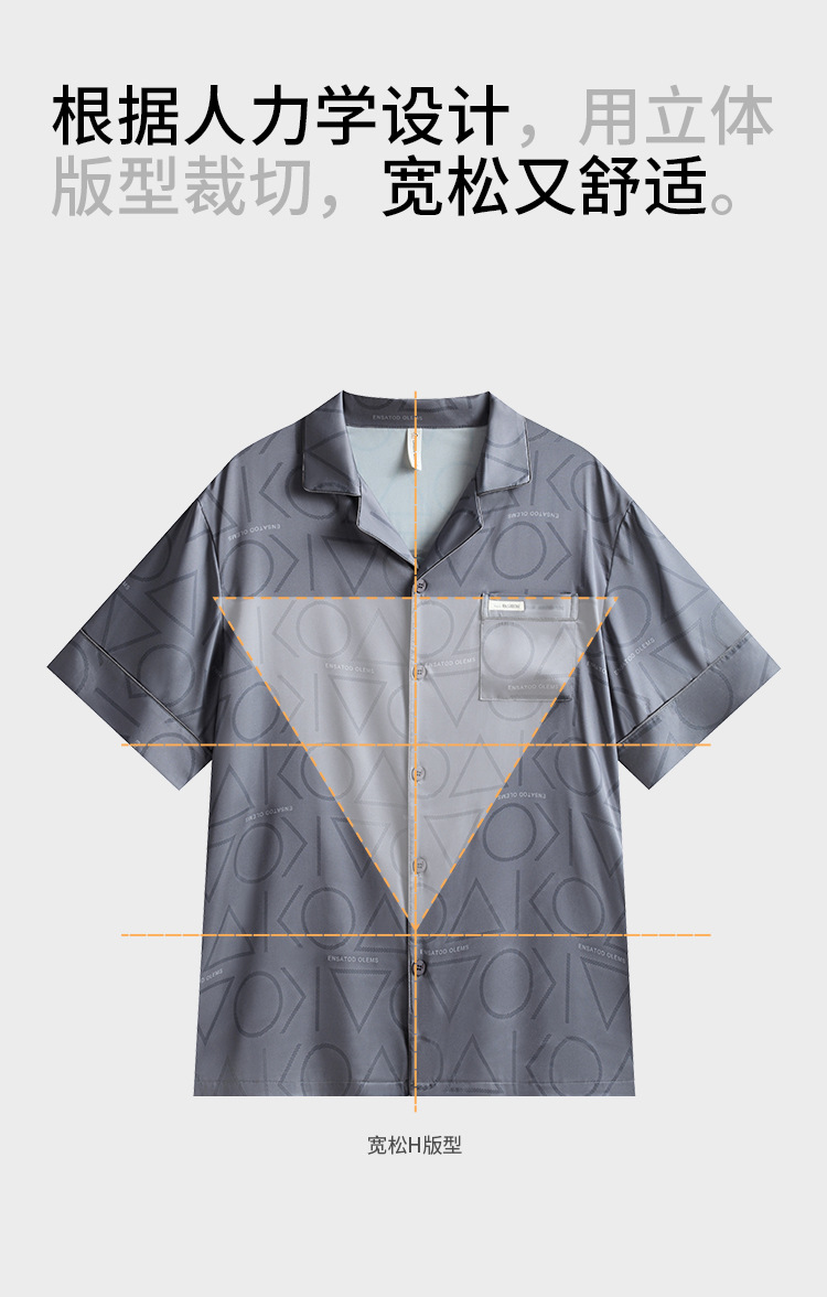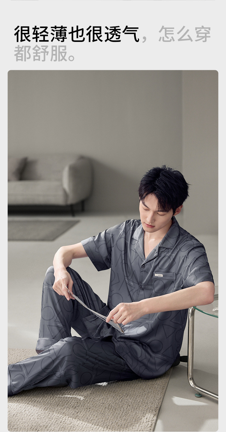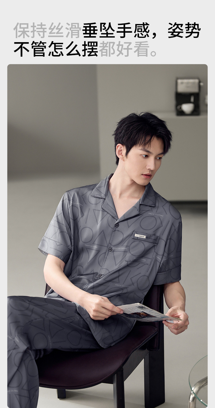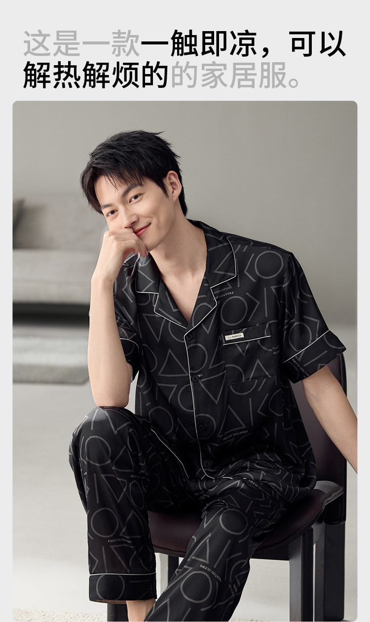 남성용 잠옷 여름 얇은 얼음 실크 간단한 청소년 한국어 버전 시뮬레이션 실크 느슨한 대형 홈웨어 세트