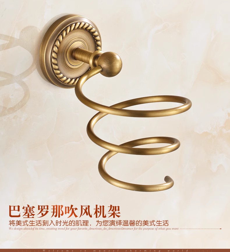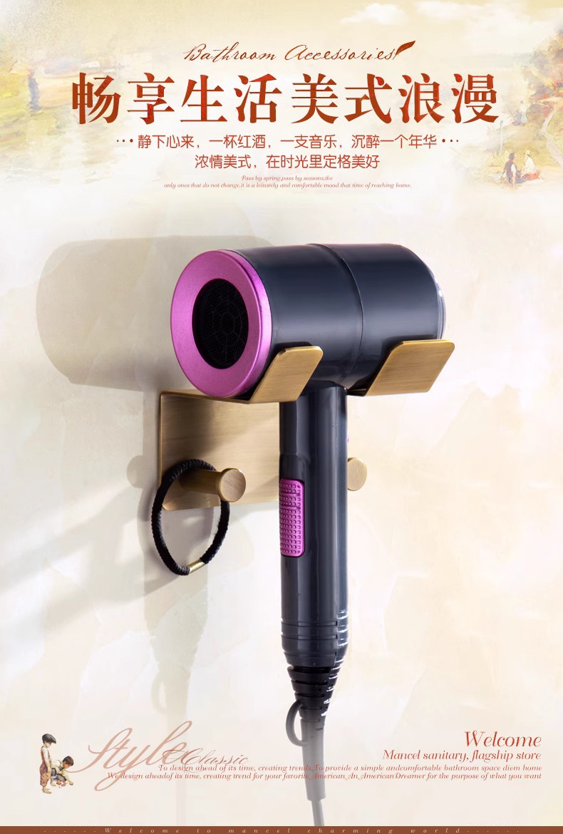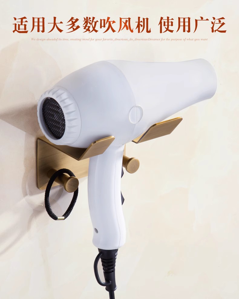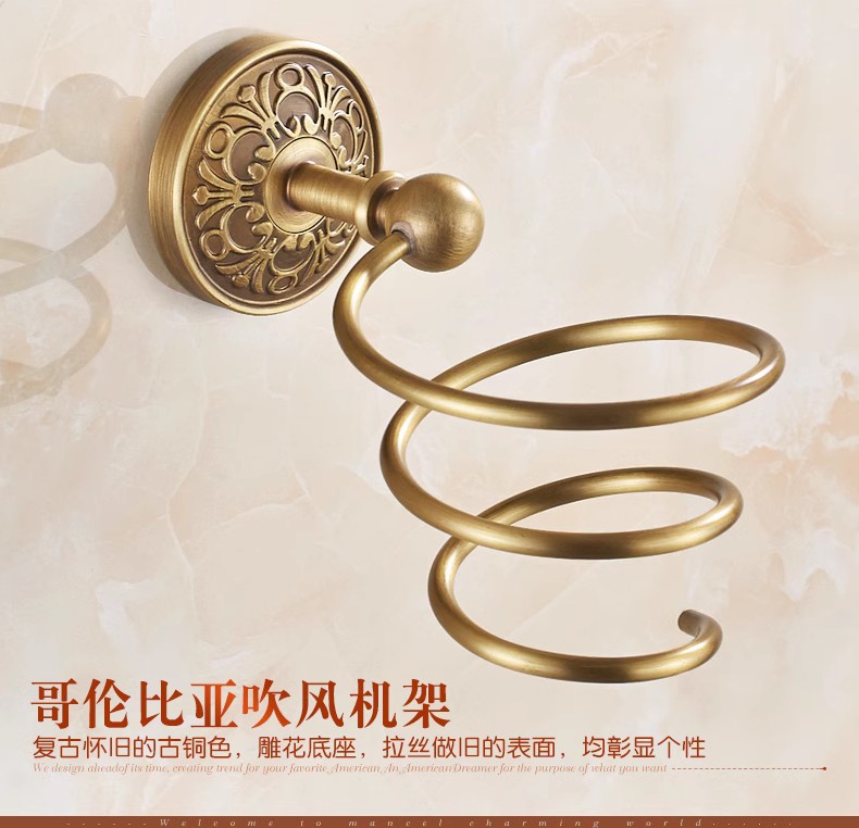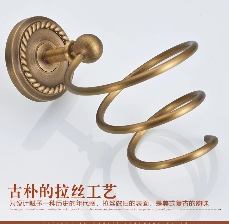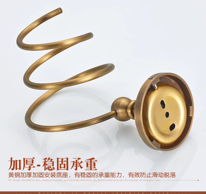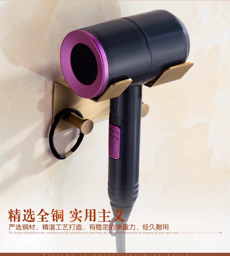 전체가 구리로 제작된 앤티크 범용 헤어드라이어 프레임(나사 포함/못이 없는 접착제)