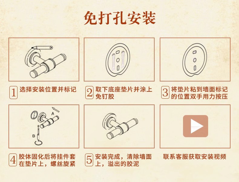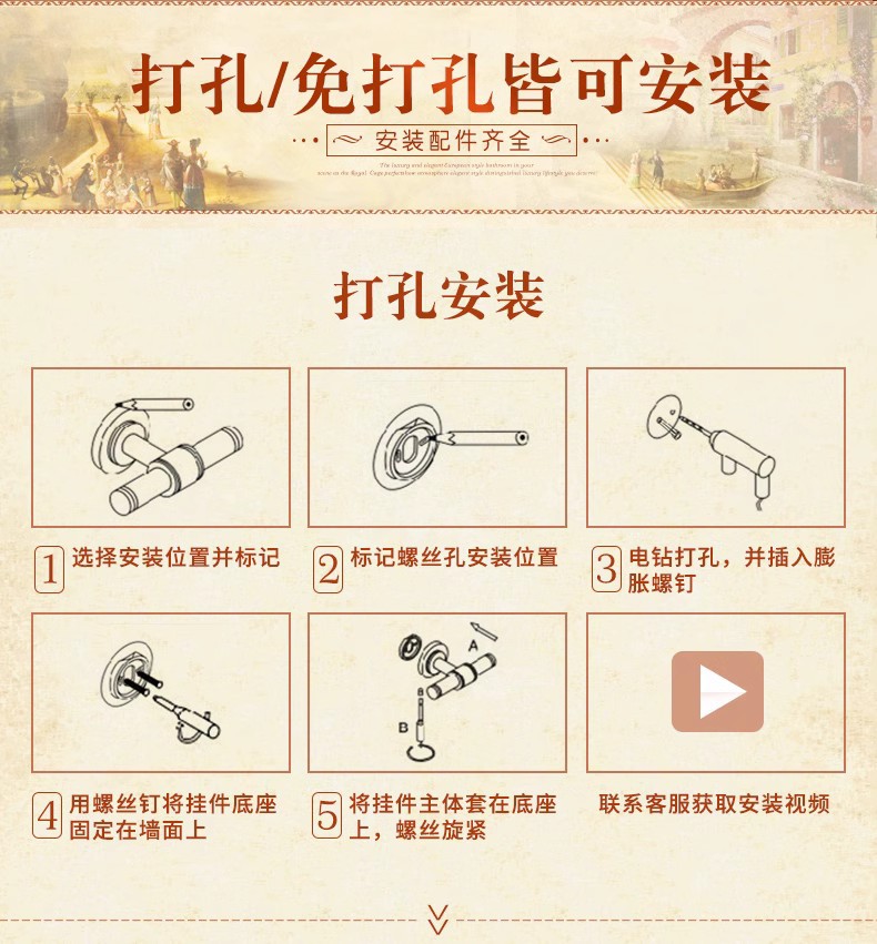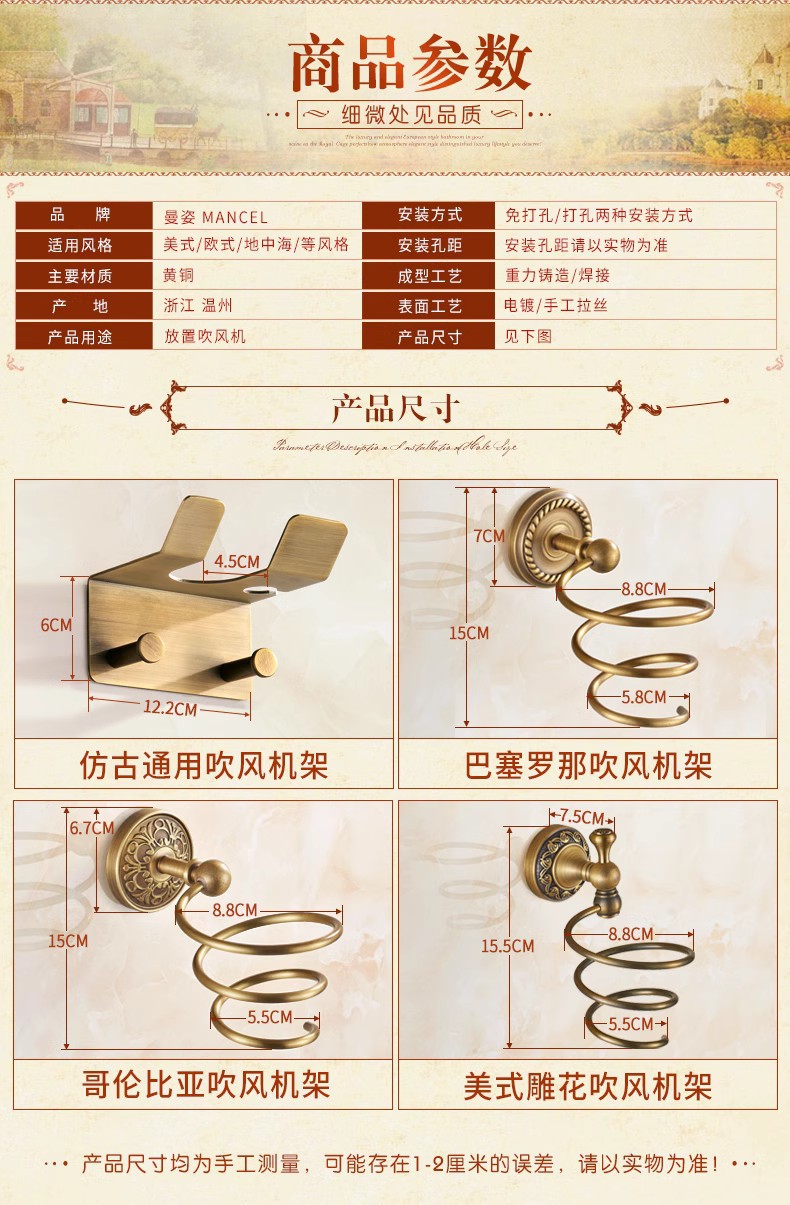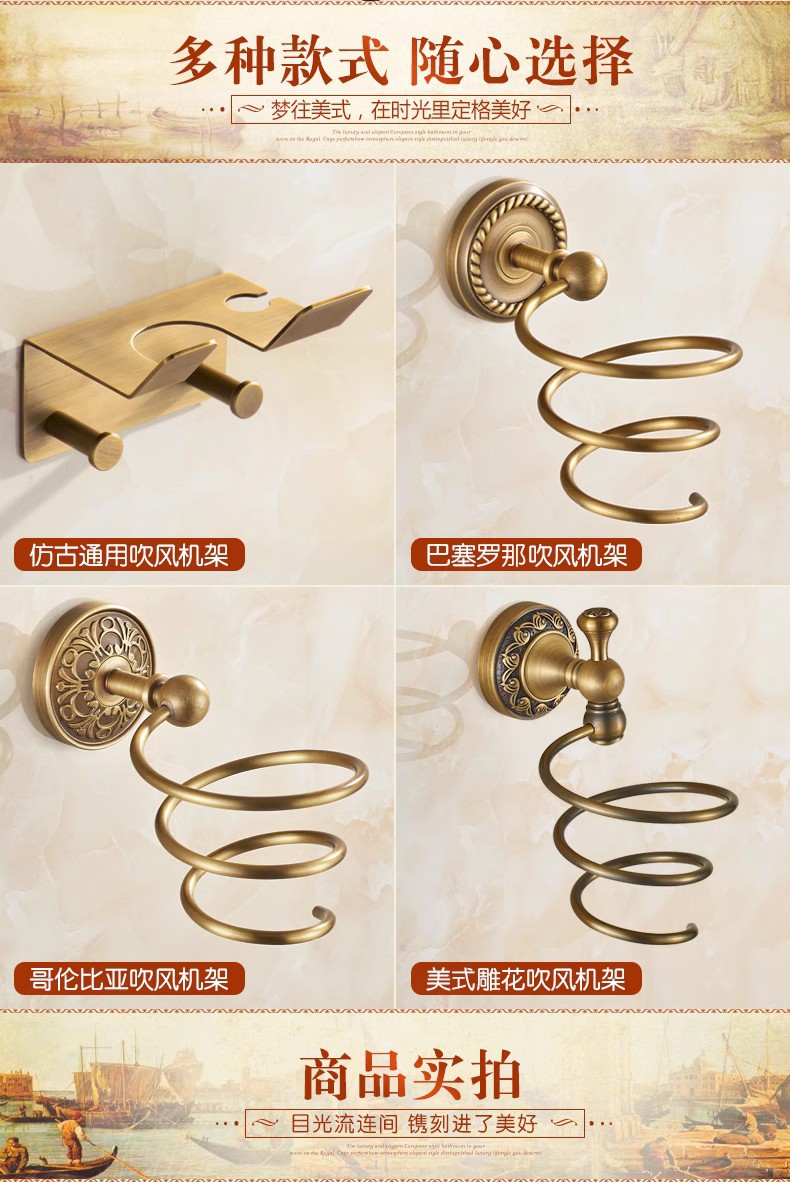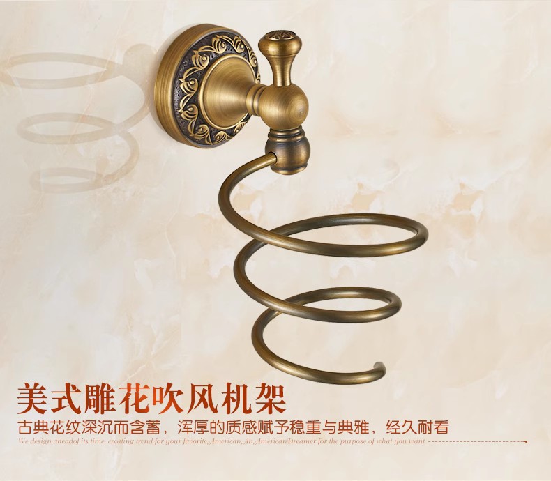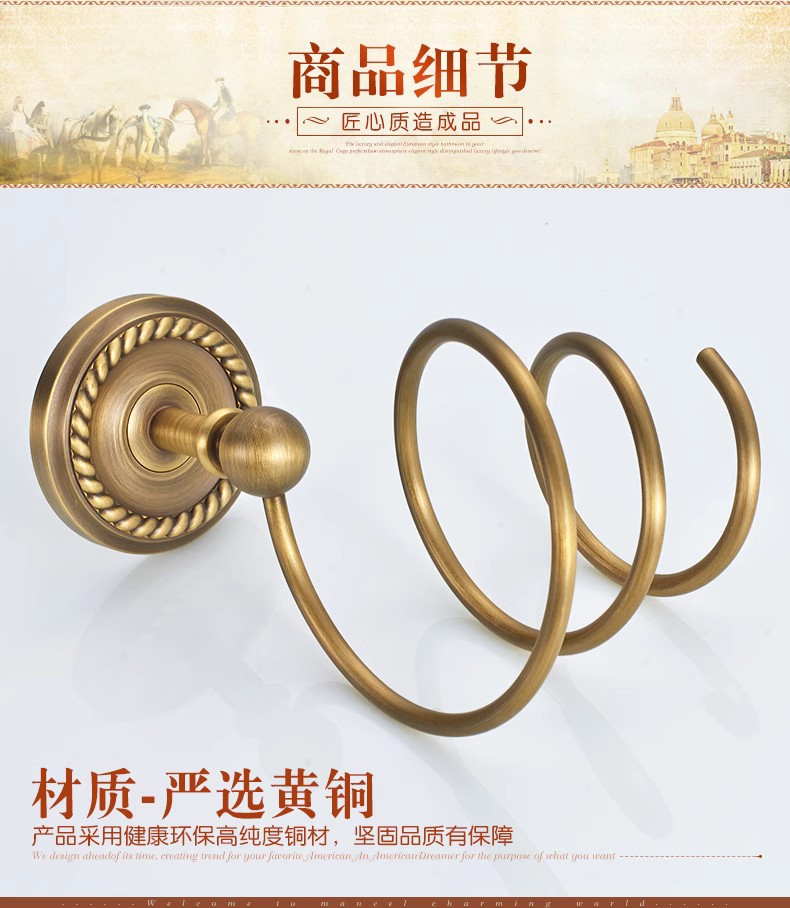 전체가 구리로 제작된 앤티크 범용 헤어드라이어 프레임(나사 포함/못이 없는 접착제)