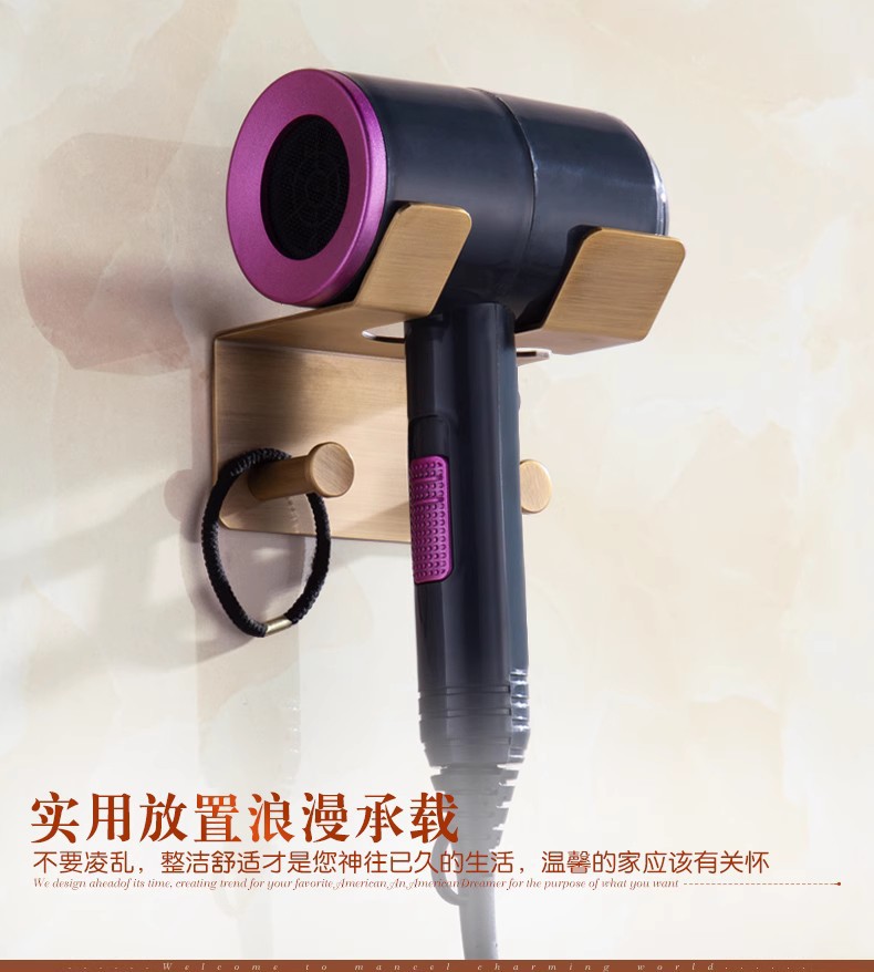 구멍이 없는 전체 구리 헤어드라이어 랙, 욕실 벽걸이형 욕실 보관함, 유럽식 수납형 화장실 헤어드라이어 랙