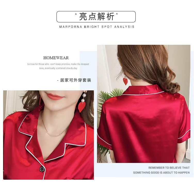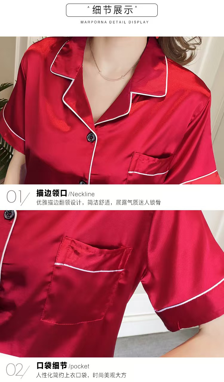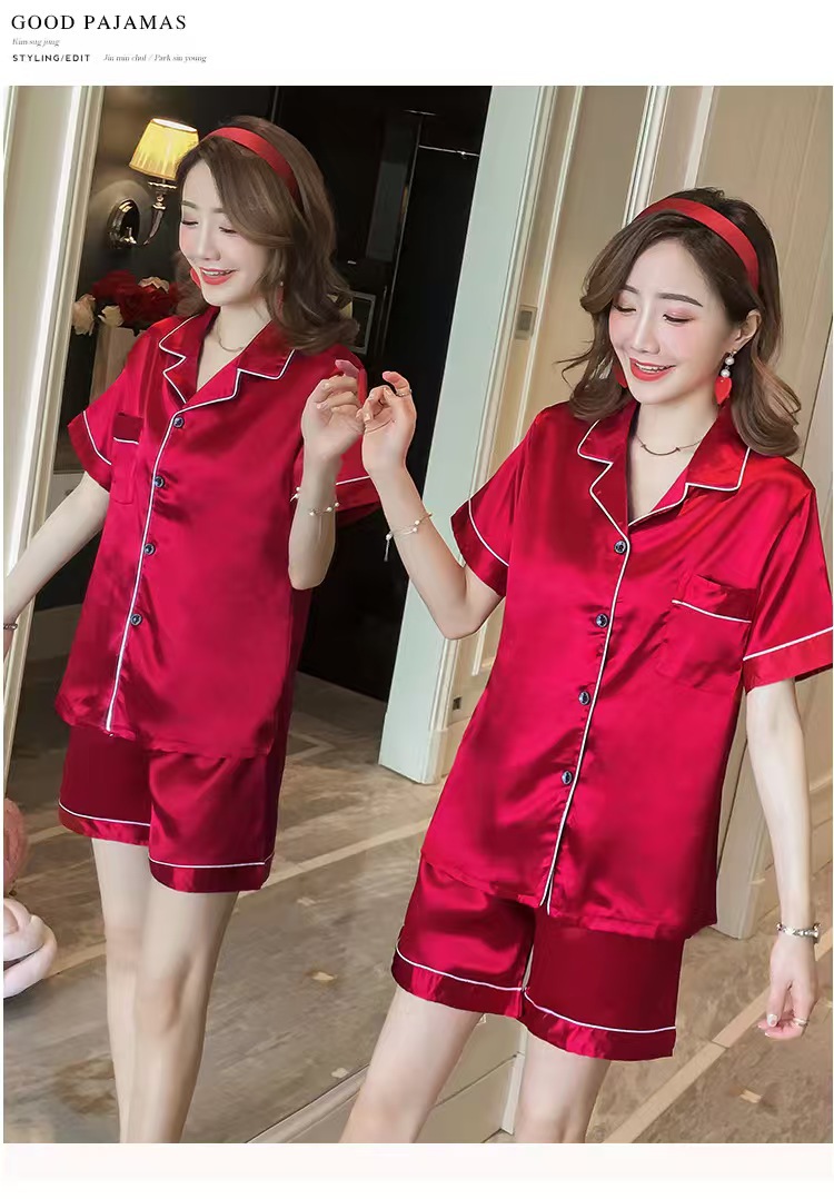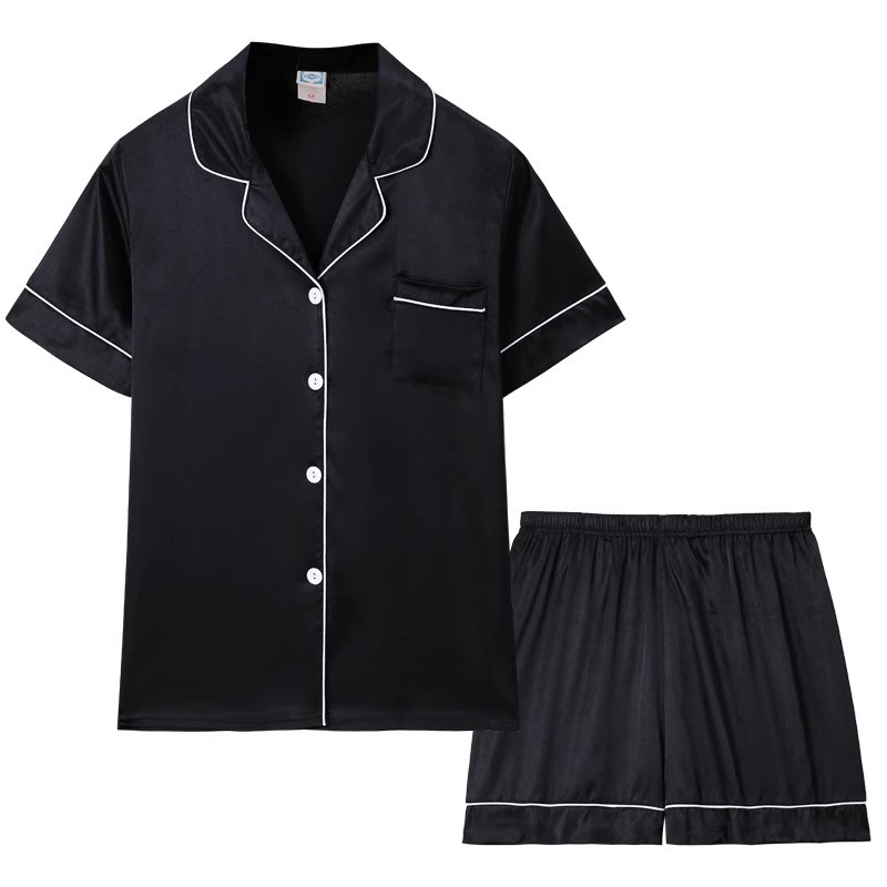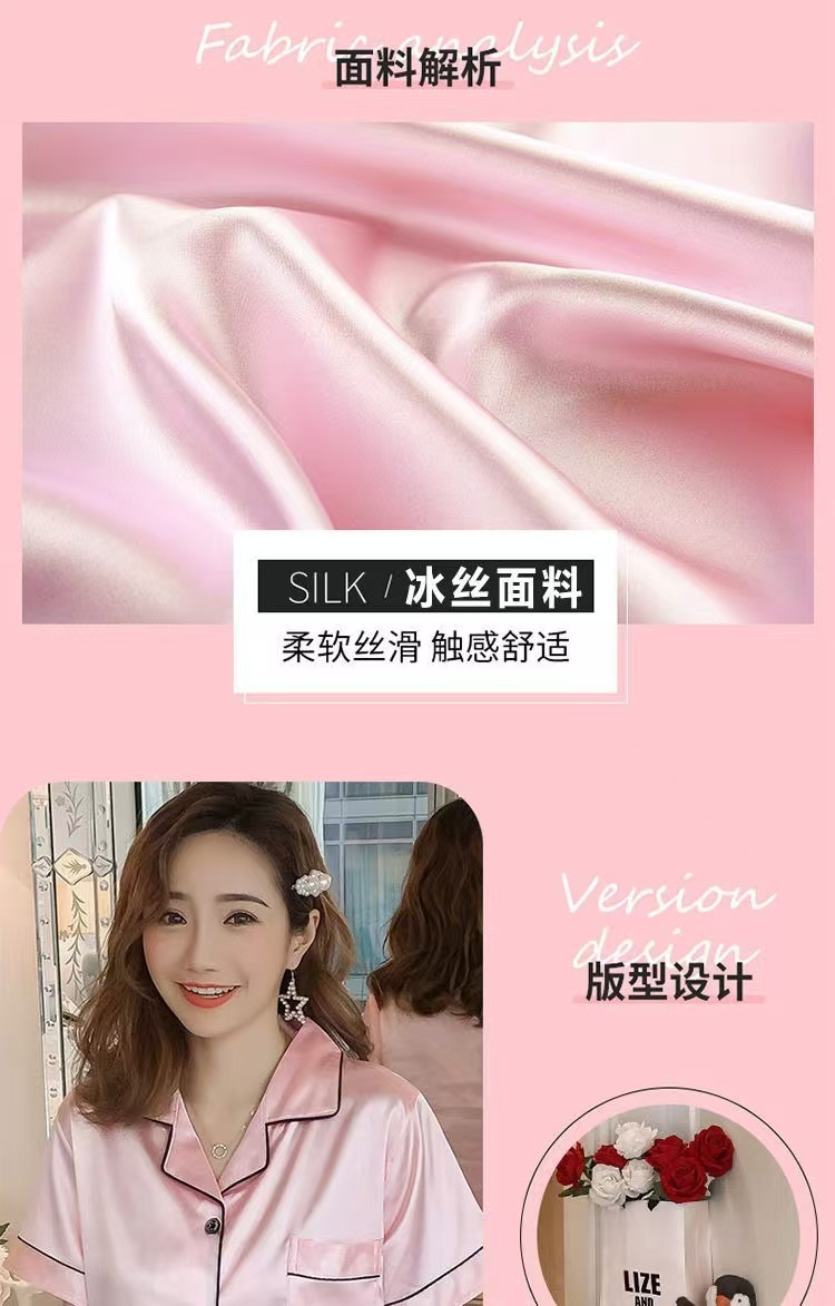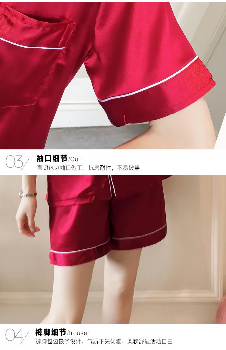 여성을위한 단색 반팔 얼음 실크 잠옷 여름 새로운 멋진 캐주얼 느슨한 실크 투피스 홈웨어 세트