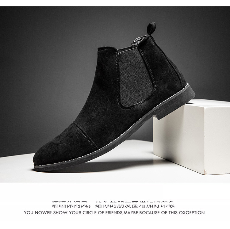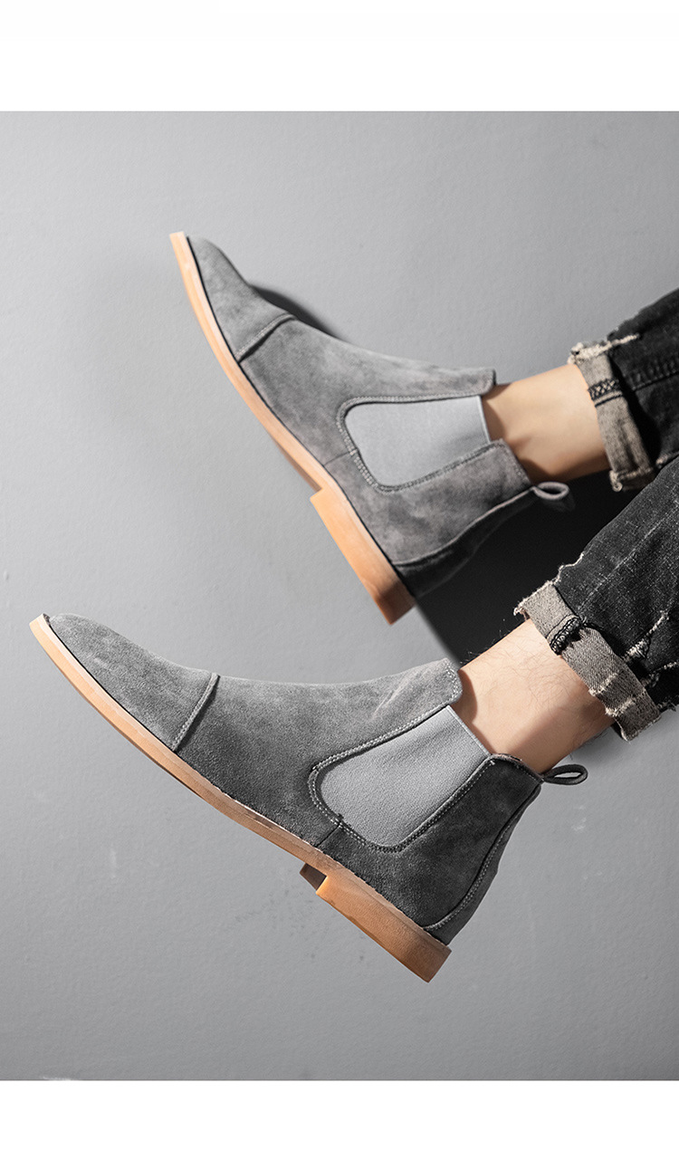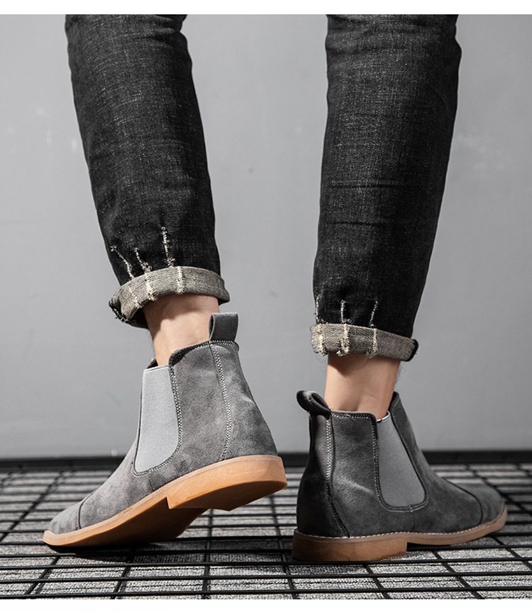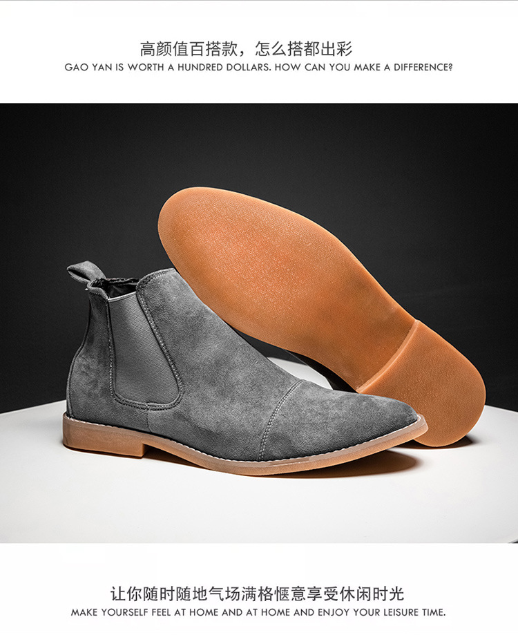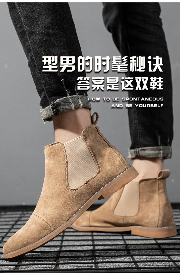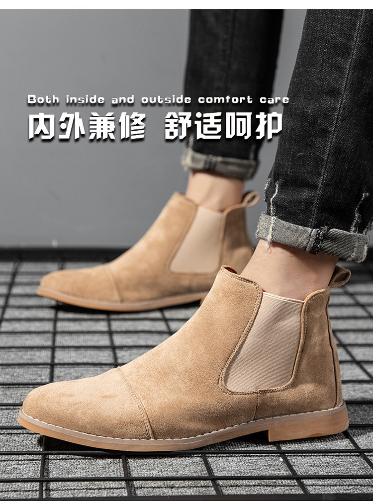 AliExpress 봄 스웨이드 가죽 포인티드 부츠 크로스보더 대형 짧은 부츠 하이탑 마틴 부츠 캐주얼 복고풍 남성 신발