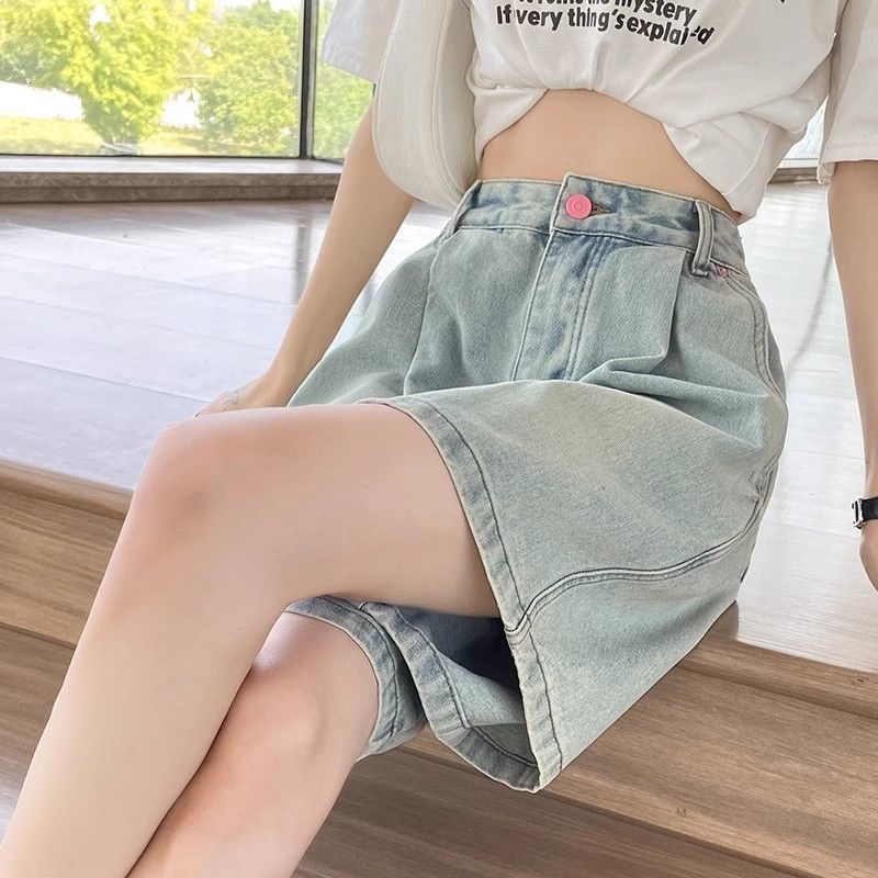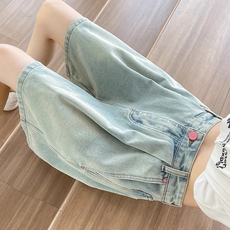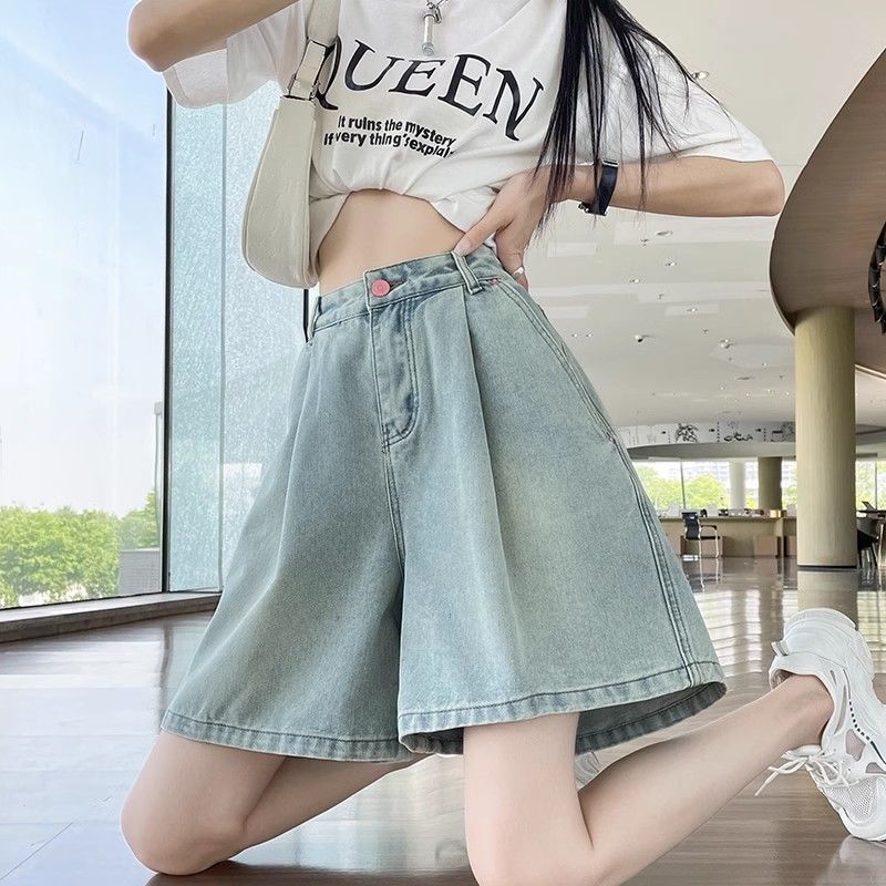 여성용 데님 반바지 여름 얇은 2025 새로운 스타일 뚱뚱한 mm 하이 웨이스트 루즈 슬리밍 작은 사람들을위한 와이드 레그 5 점 중간 바지