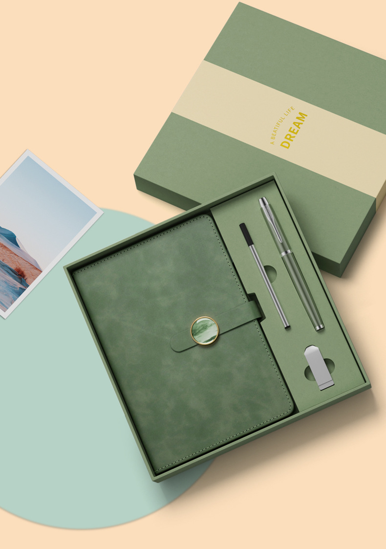 A5-녹색-보온병 컵+U 디스크 선물 상자