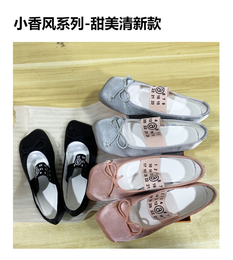 틈새 틸트 헤드 발레 신발 로우 힐 보우 플랫 힐 메리 제인 신발 얕은 입 새틴 작은 샤넬 스타일 신발 여성