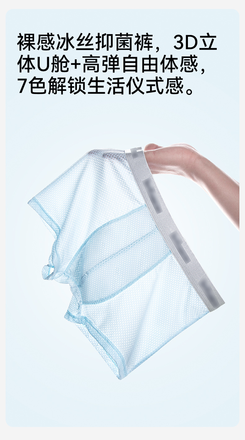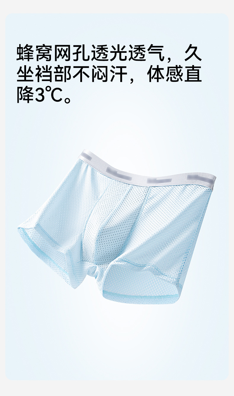 아이스 실크 얇은 허니컴 메쉬 통기성 남성 속옷 항균 반바지 여름 남성용 중간 허리 높이