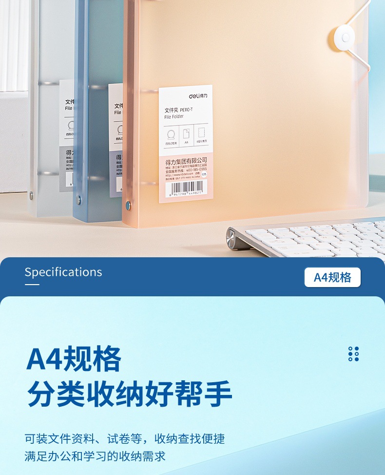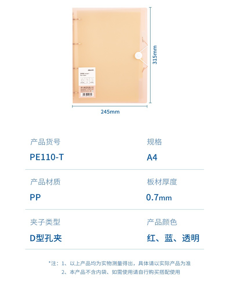 델리 PE110-T 4홀 클립 루스리프 폴더 a4 루스리프 정보북 정리 시험지 대용량 수납 클립