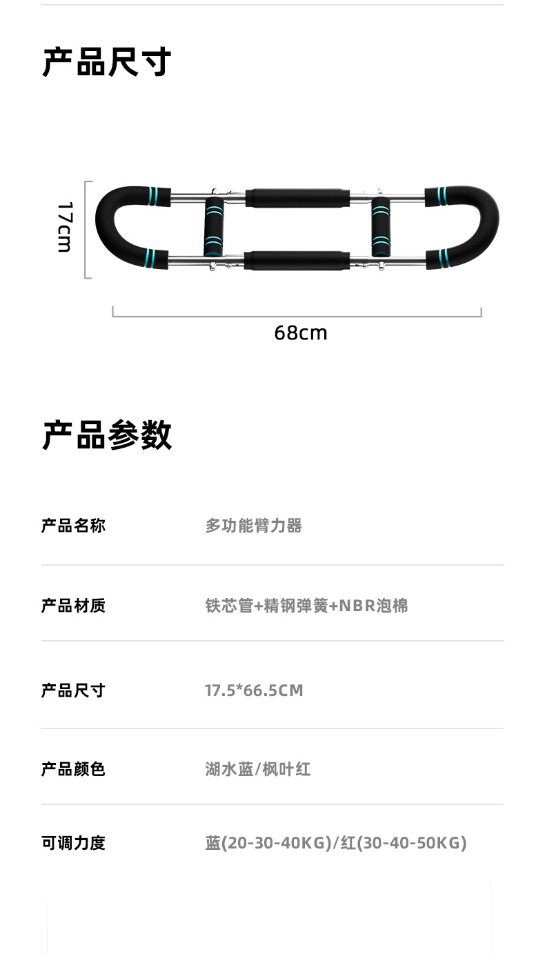 새로운 타입의 남성용 조절식 스프링 바, 가슴 근육 훈련 및 팔 그립 강화를 위한 가정용 피트니스 기구