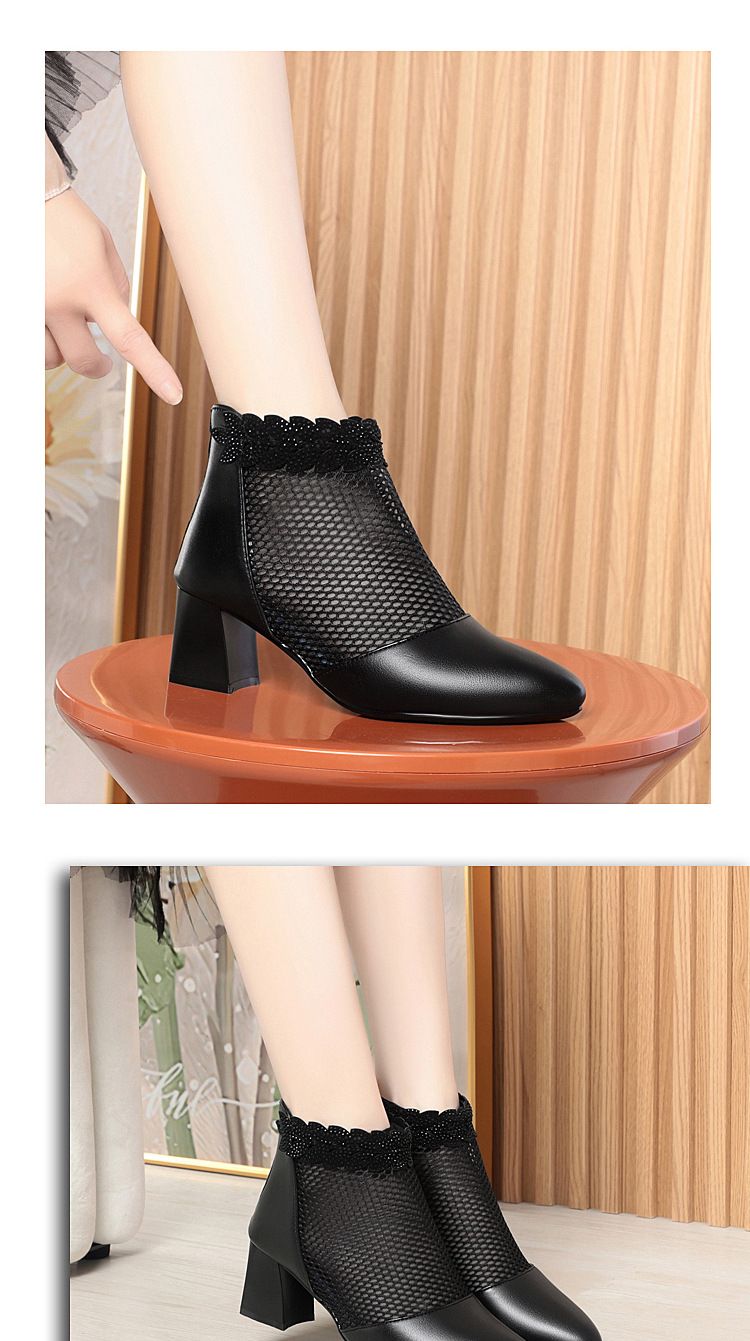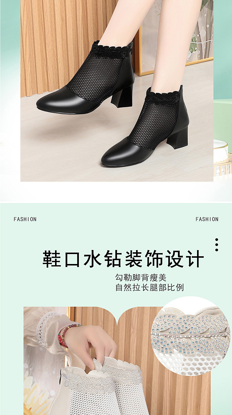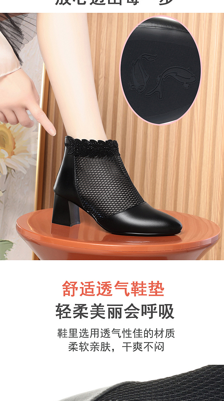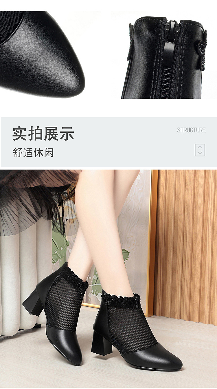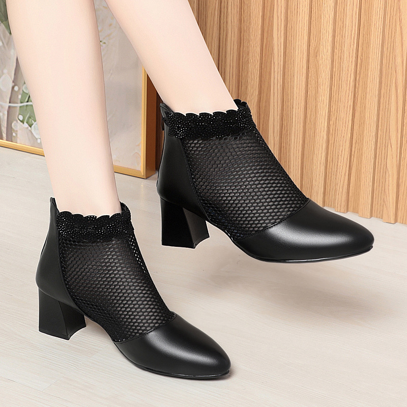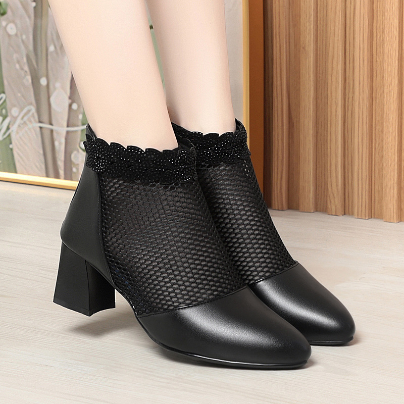 천연가죽 메쉬 중공 샌들, 하이힐, 패셔너블한 중년 엄마 부츠, 여성용 숏부츠, 두꺼운 굽, 통기성 메쉬 메쉬 부츠