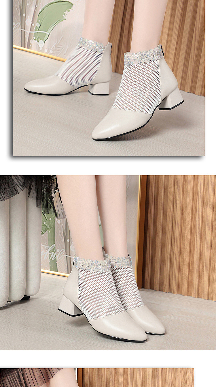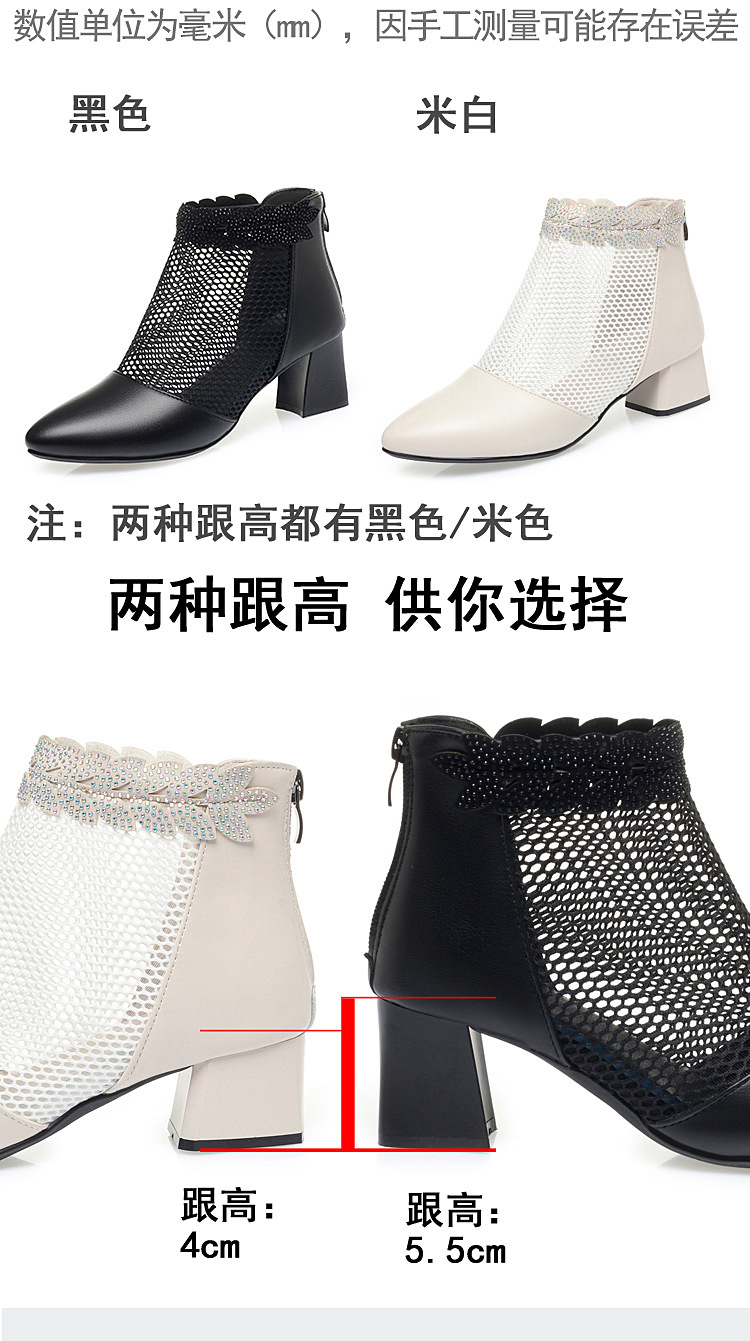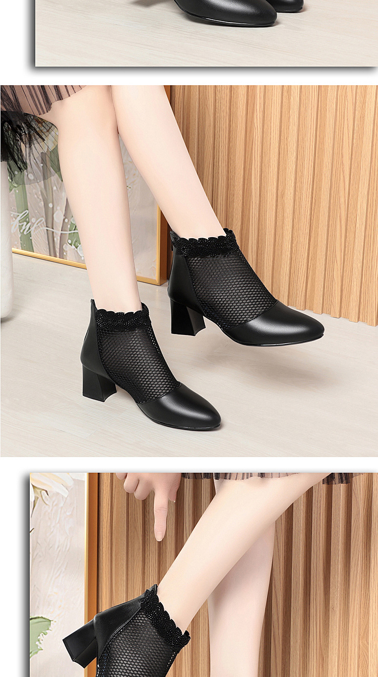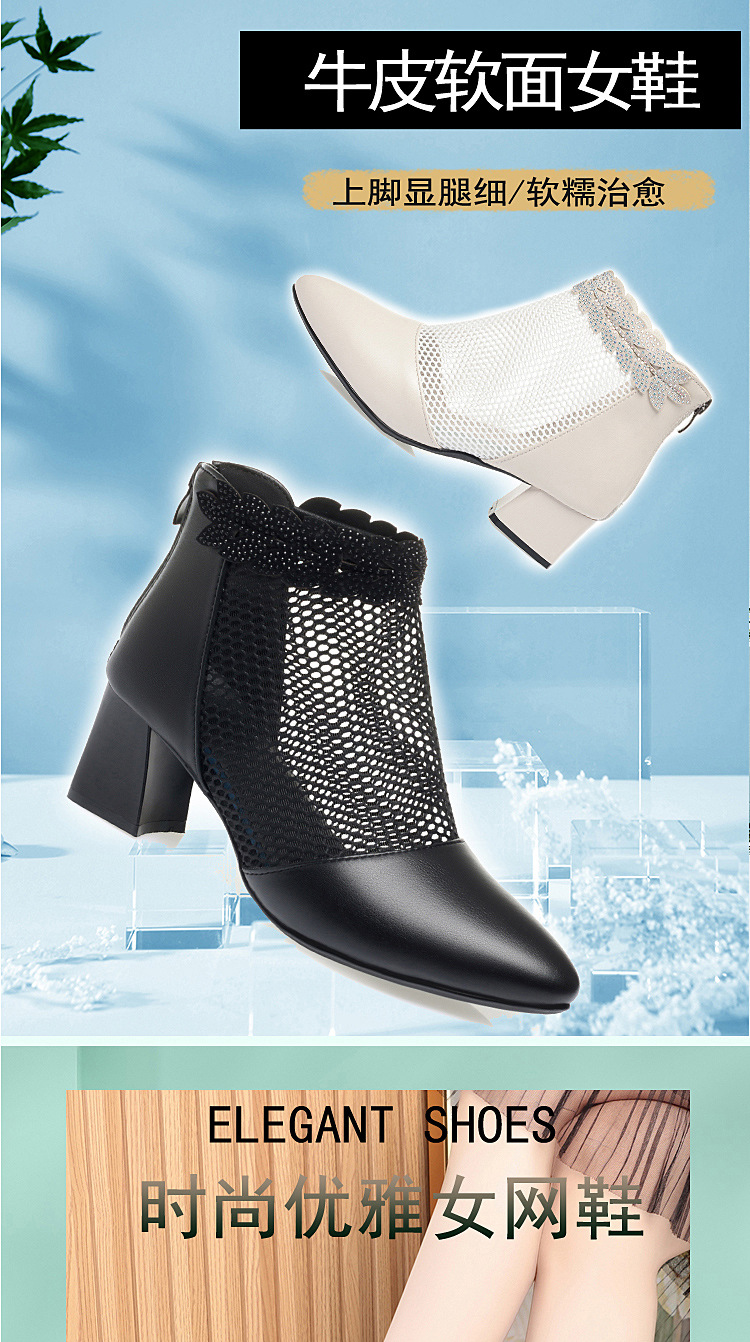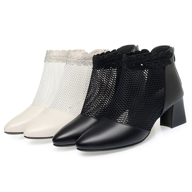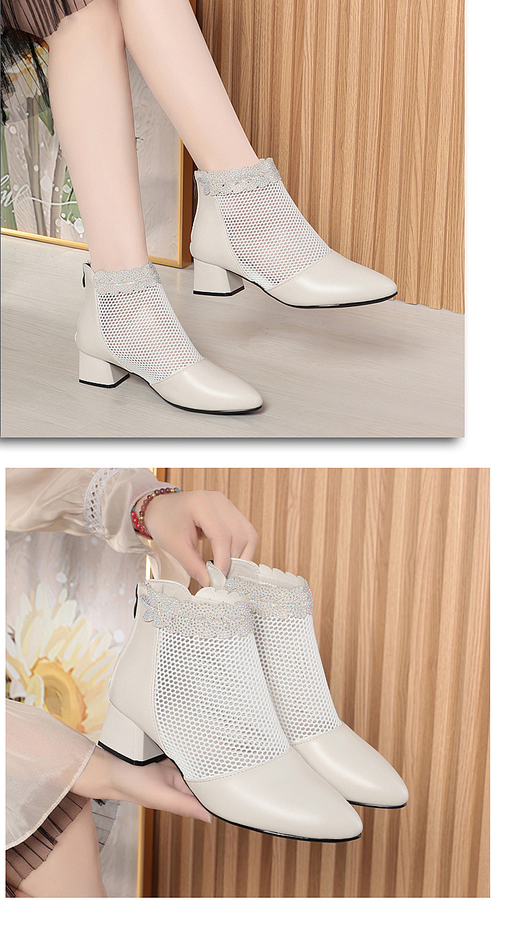 천연가죽 메쉬 중공 샌들, 하이힐, 패셔너블한 중년 엄마 부츠, 여성용 숏부츠, 두꺼운 굽, 통기성 메쉬 메쉬 부츠
