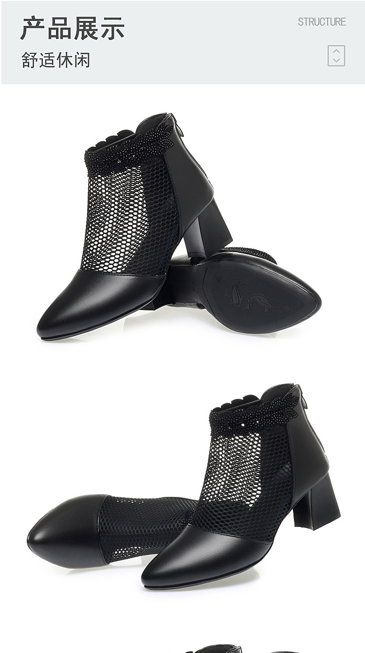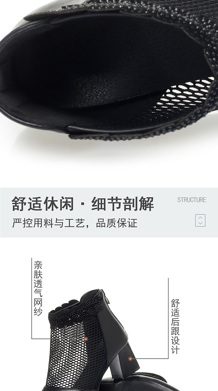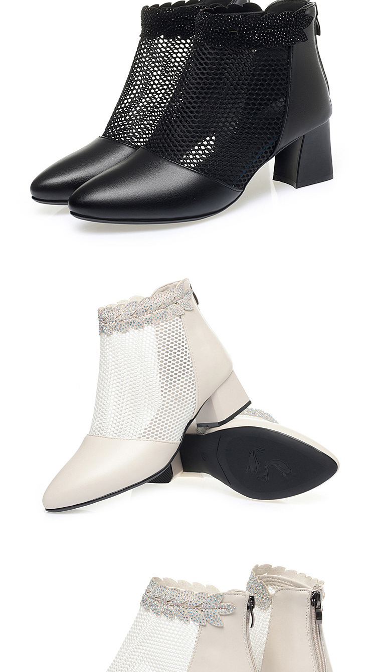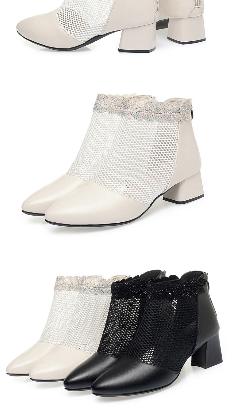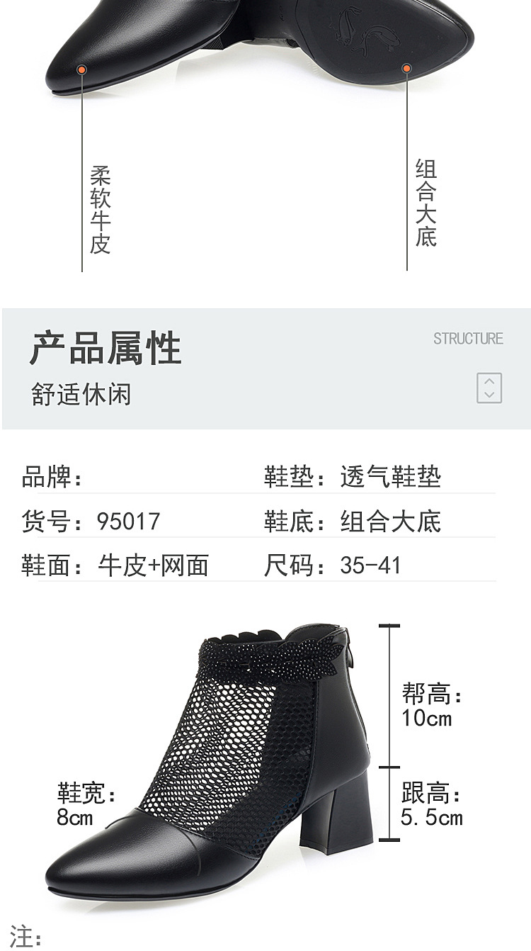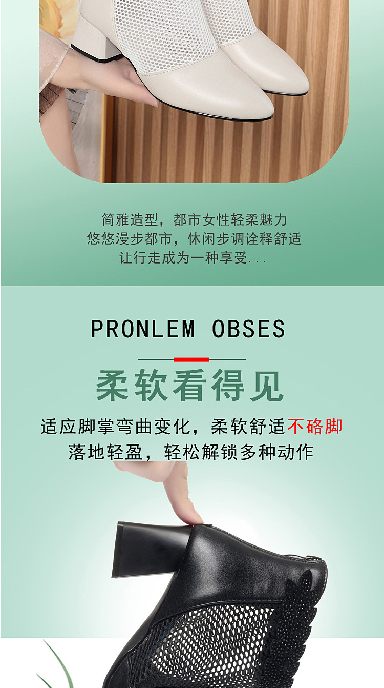 천연가죽 메쉬 중공 샌들, 하이힐, 패셔너블한 중년 엄마 부츠, 여성용 숏부츠, 두꺼운 굽, 통기성 메쉬 메쉬 부츠