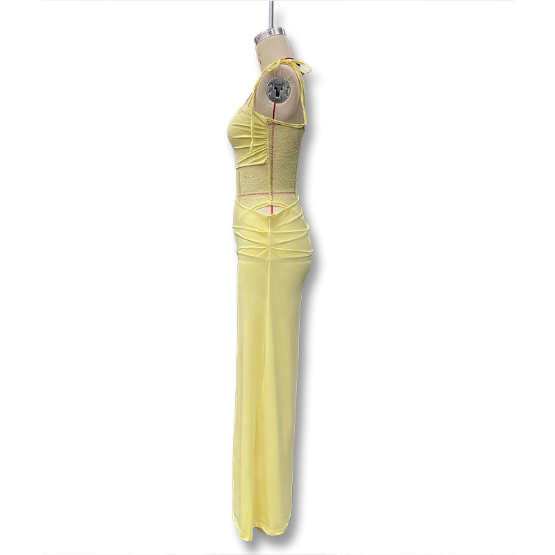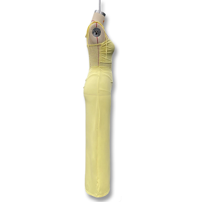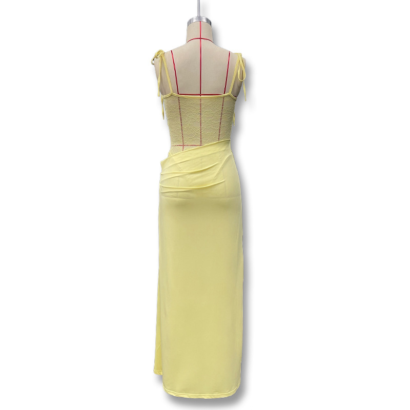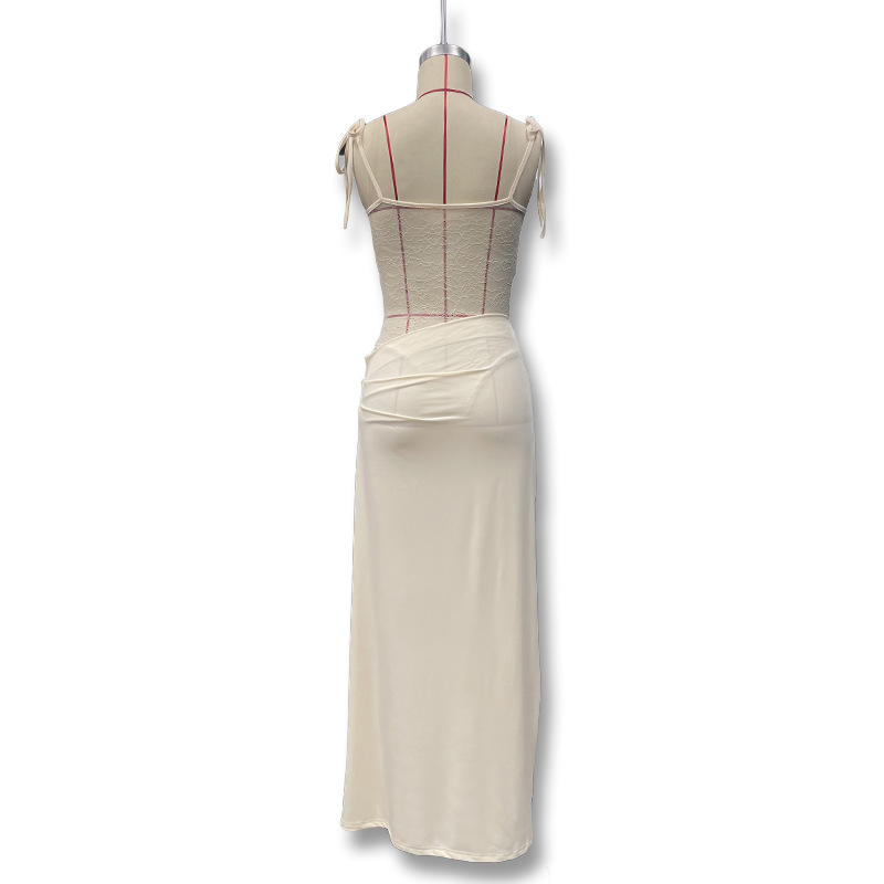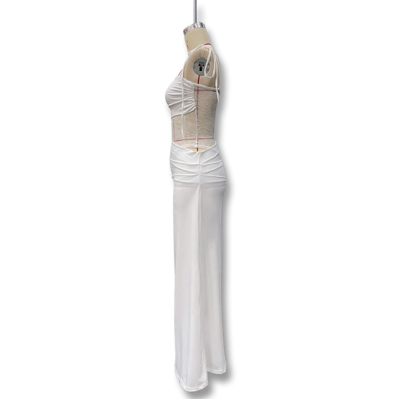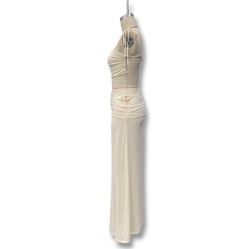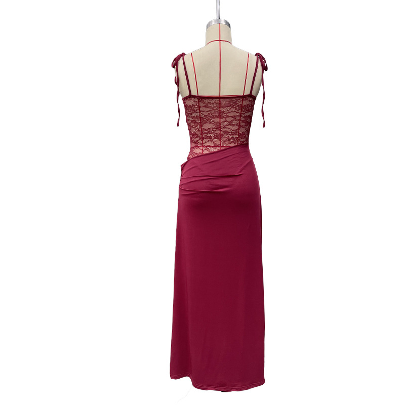유럽과 미국 스타일의 새로운 레이스 오프 숄더 스트랩 슬림 스플릿 원피스 섹시한 스티칭 중공 관점 원피스