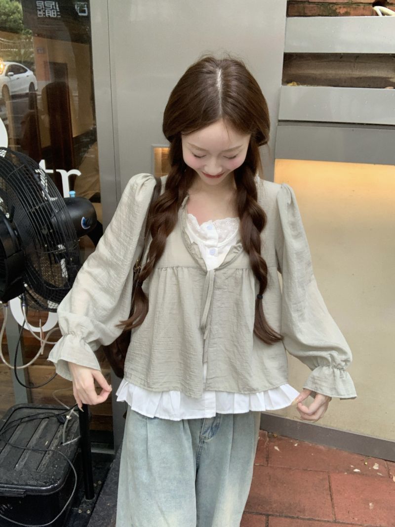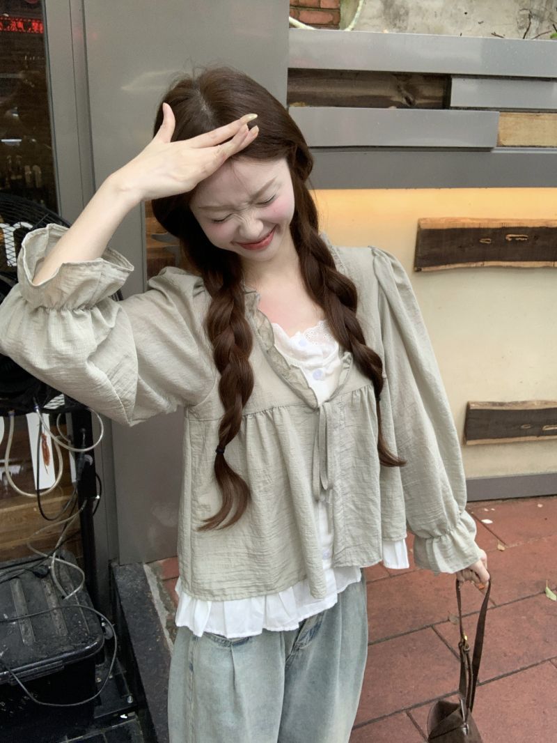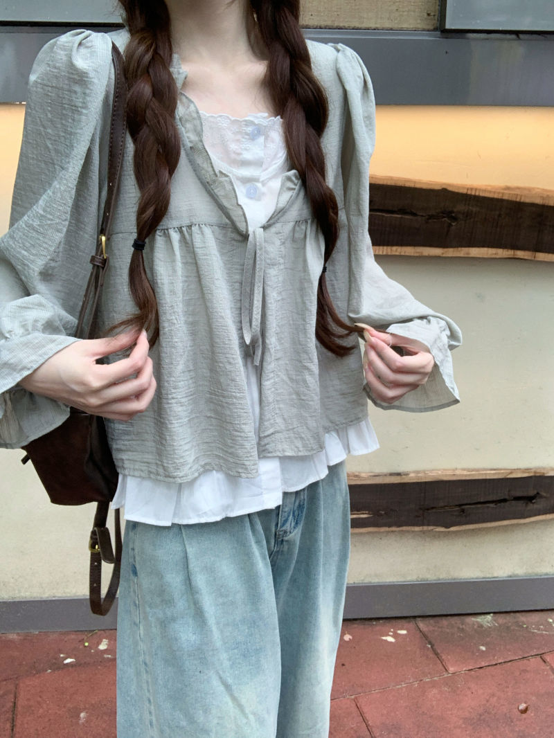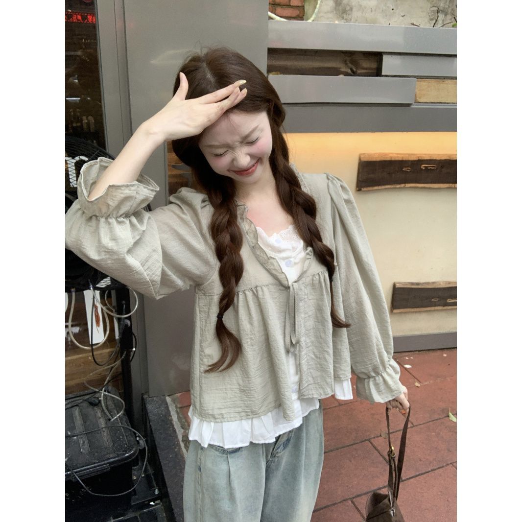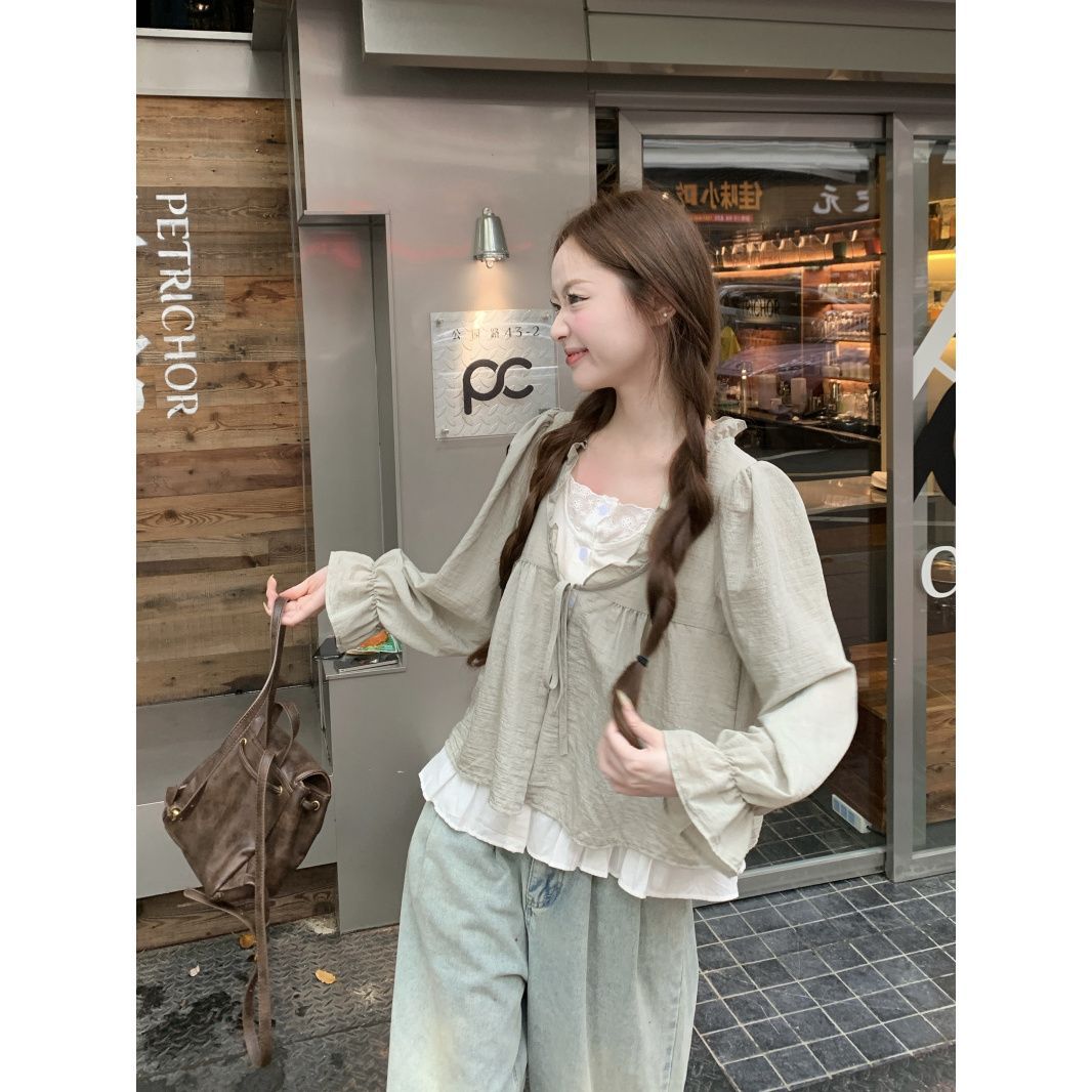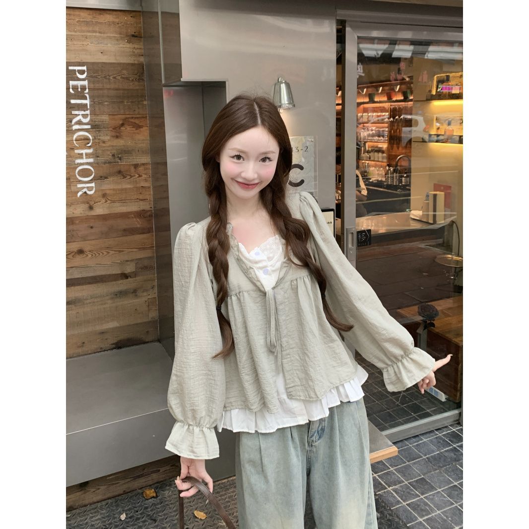 동남아시아 스타일 투피스 랩 스타일 긴팔 셔츠 여성용 2025 신상품, 우아하고 슬림한 핏, 크로스보더, 고급스러운 여성스러운 스타일