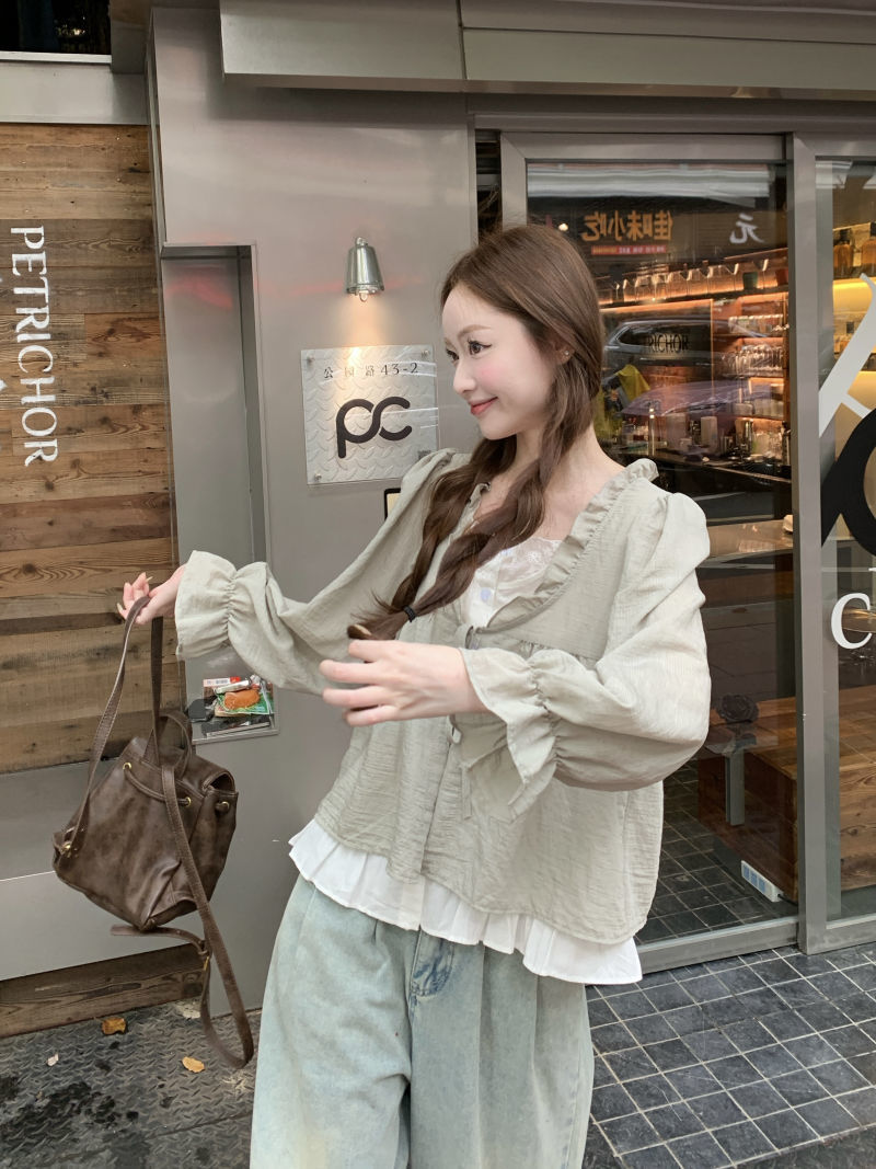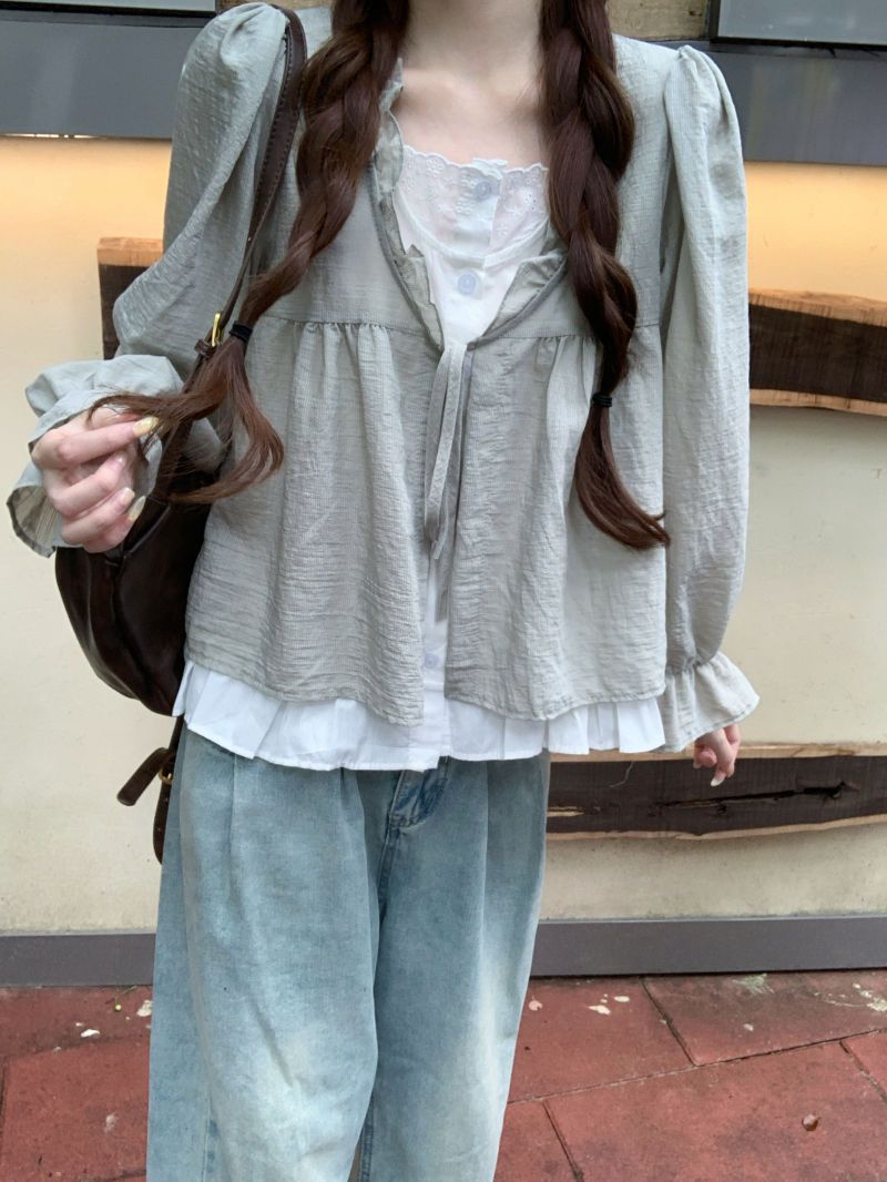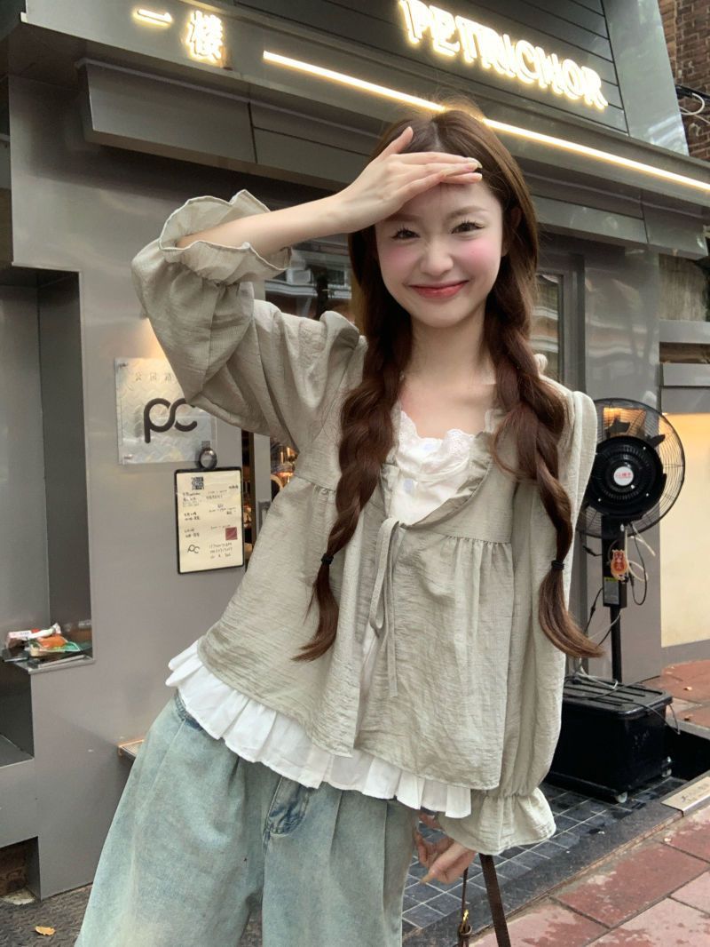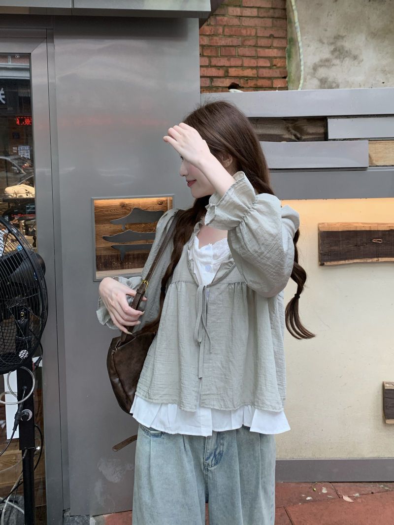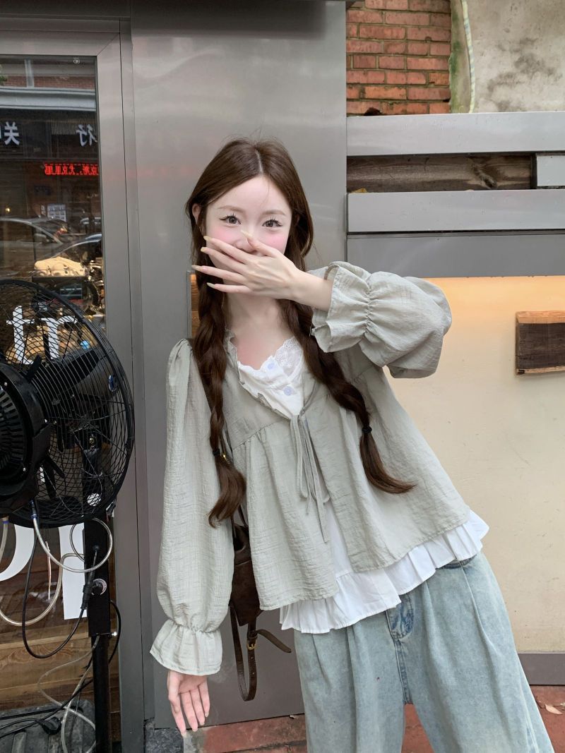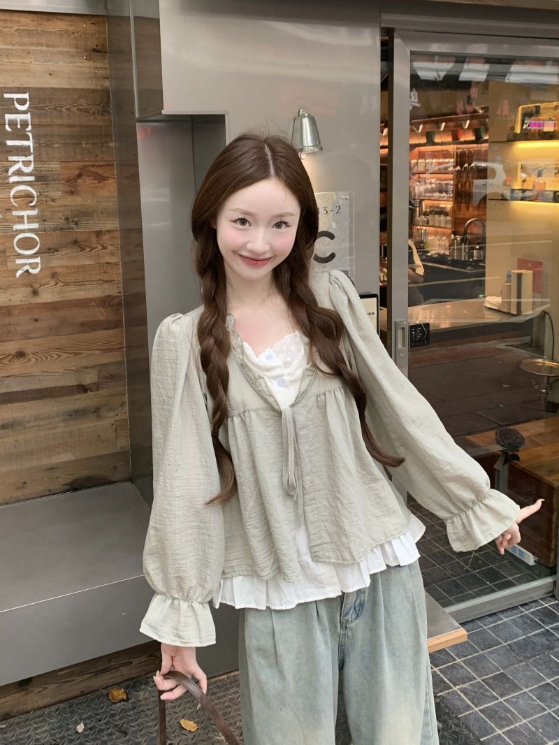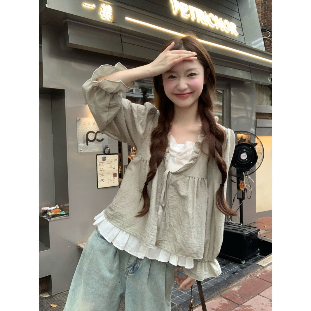 동남아시아 스타일 투피스 랩 스타일 긴팔 셔츠 여성용 2025 신상품, 우아하고 슬림한 핏, 크로스보더, 고급스러운 여성스러운 스타일
