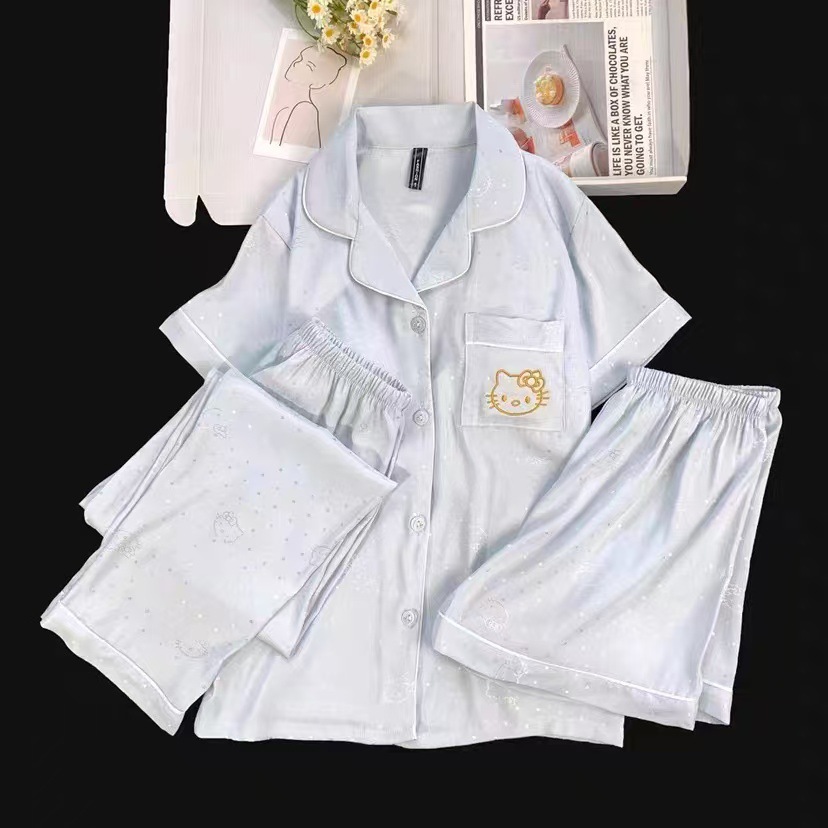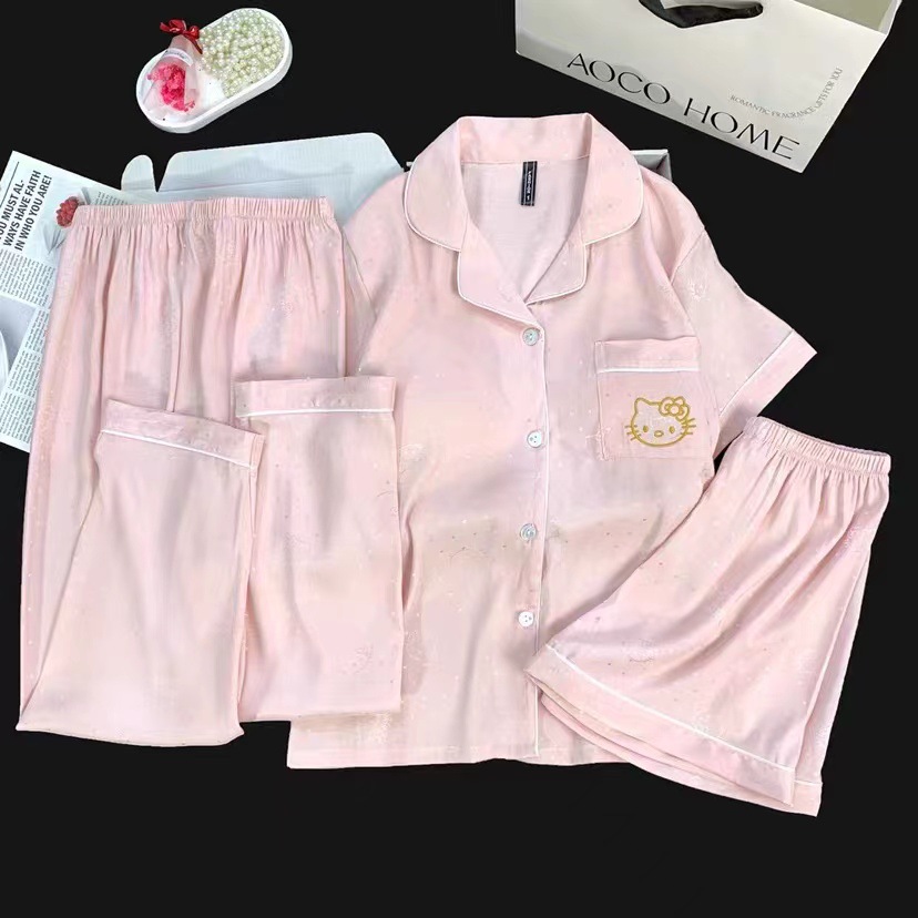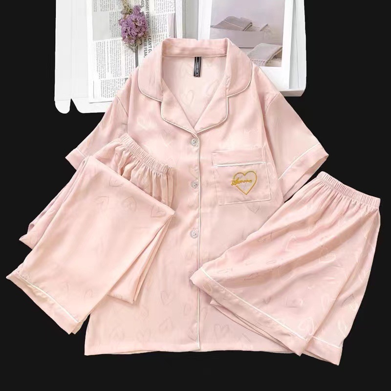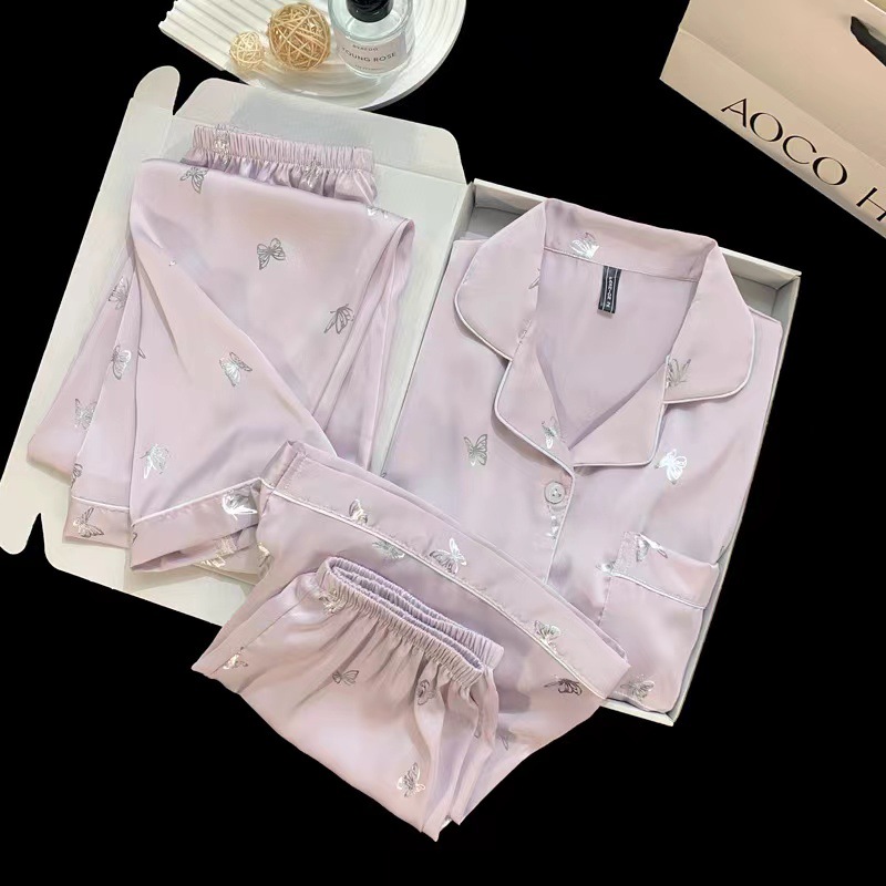 여성용 가슴 패드가 있는 크로스보더 3피스 잠옷, 여름 아이스 실크, 새로운 시원한 실크, 고급 홈웨어, 소스 공장