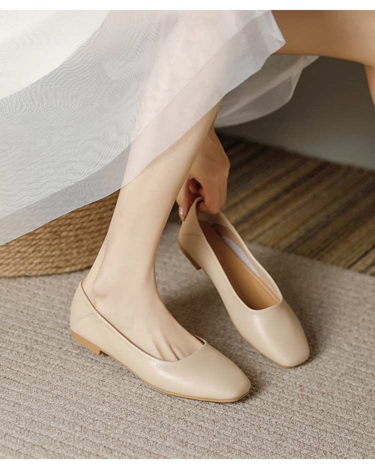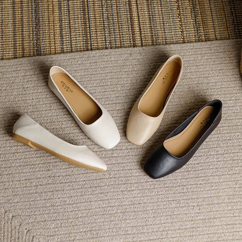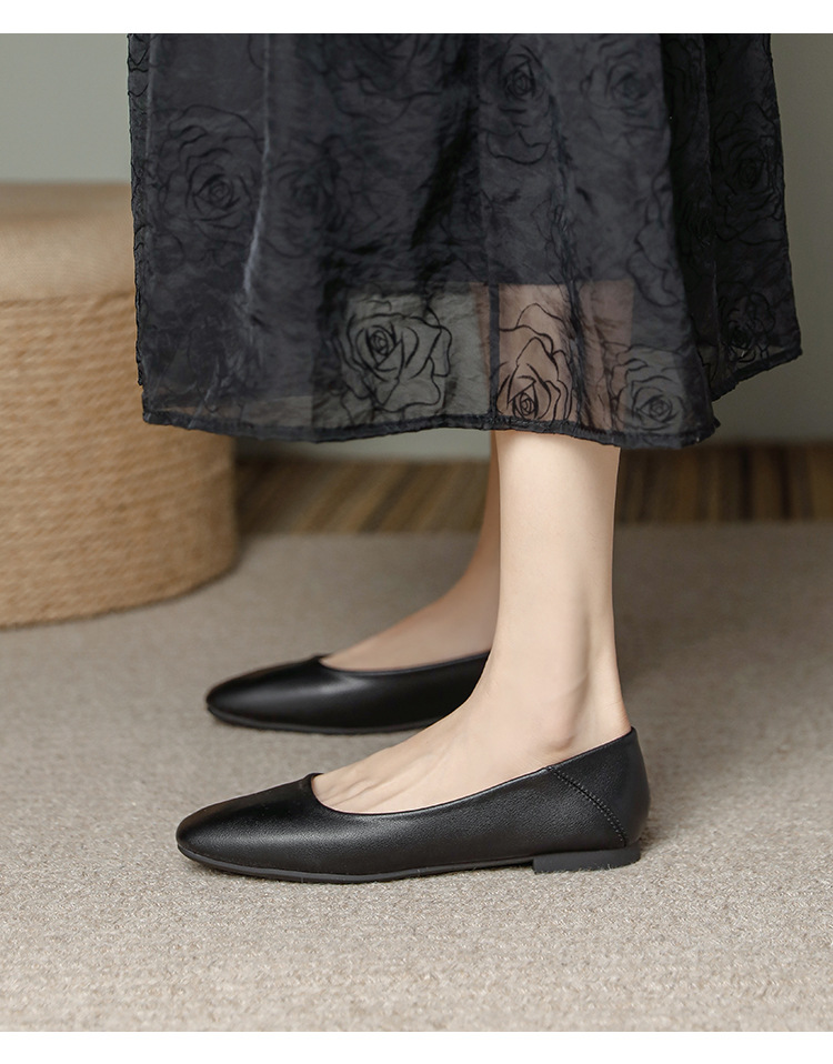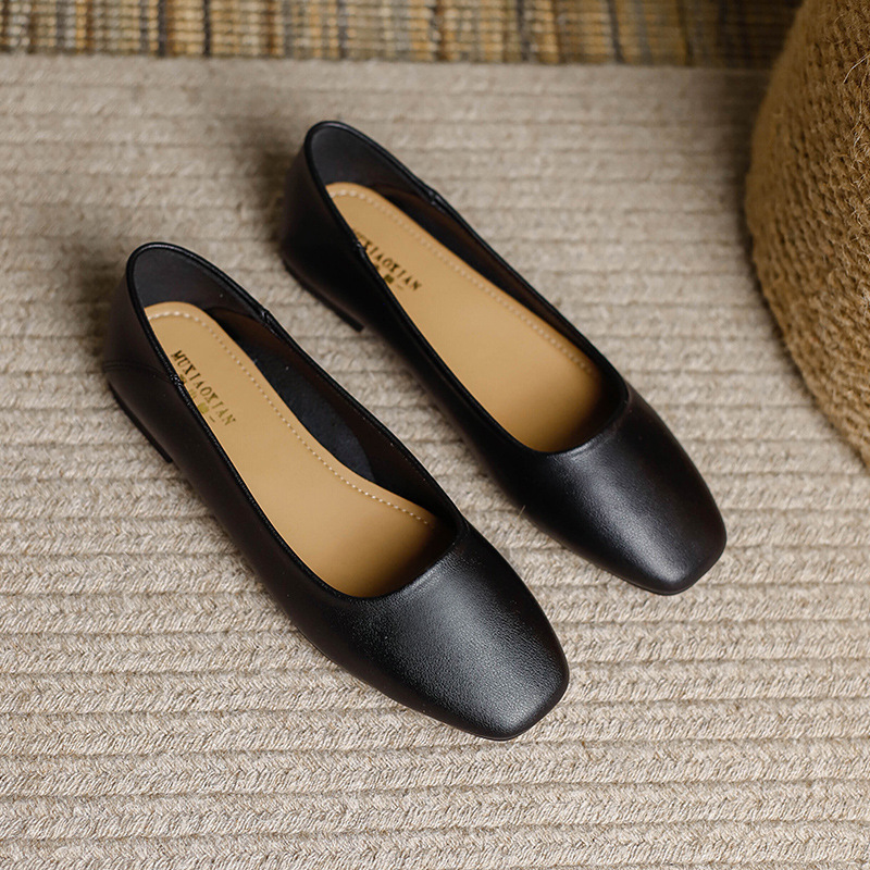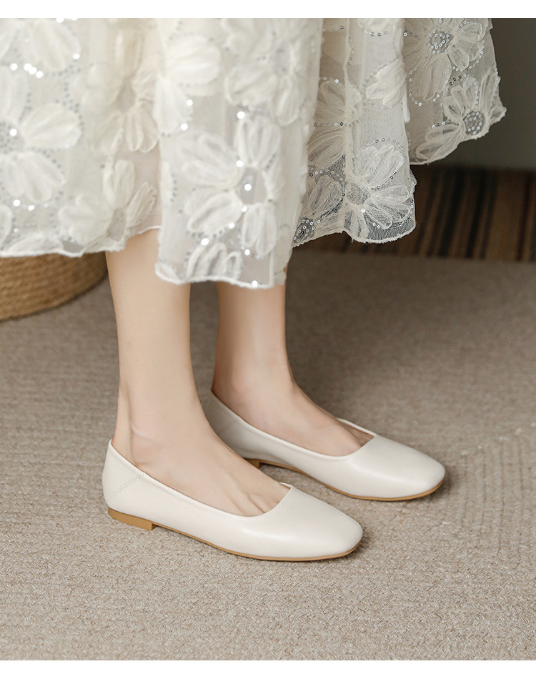밀크 신발 여성용 플랫 싱글 레이어 신발 2024 새로운 얕은 입 부드러운 바닥 레이디 슈즈 프랑스 이브닝 스타일 원피스 틈새 용 대형 신발