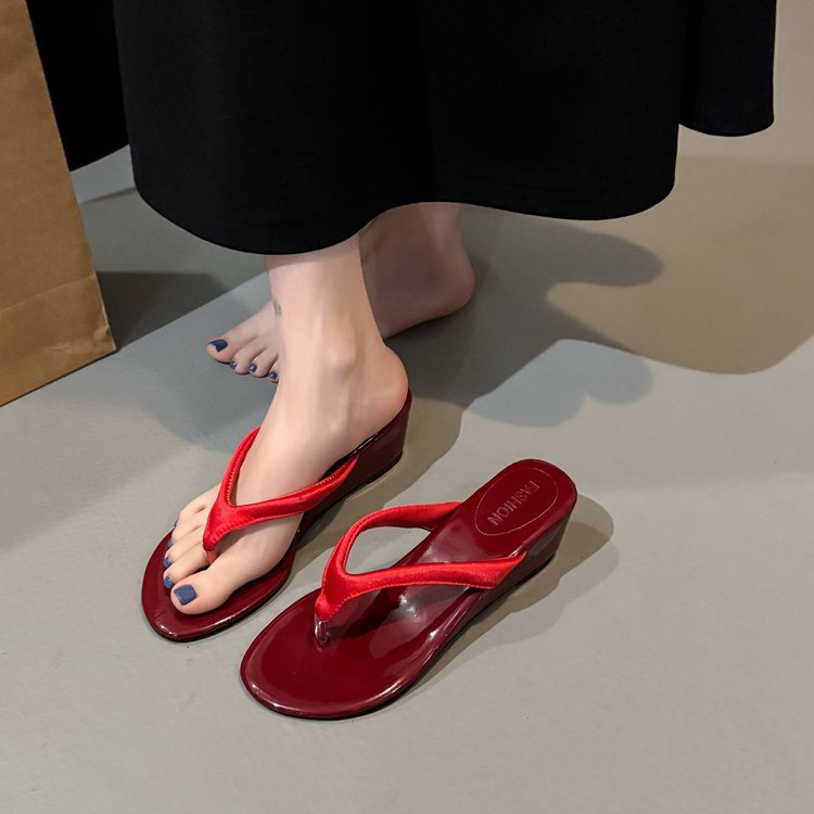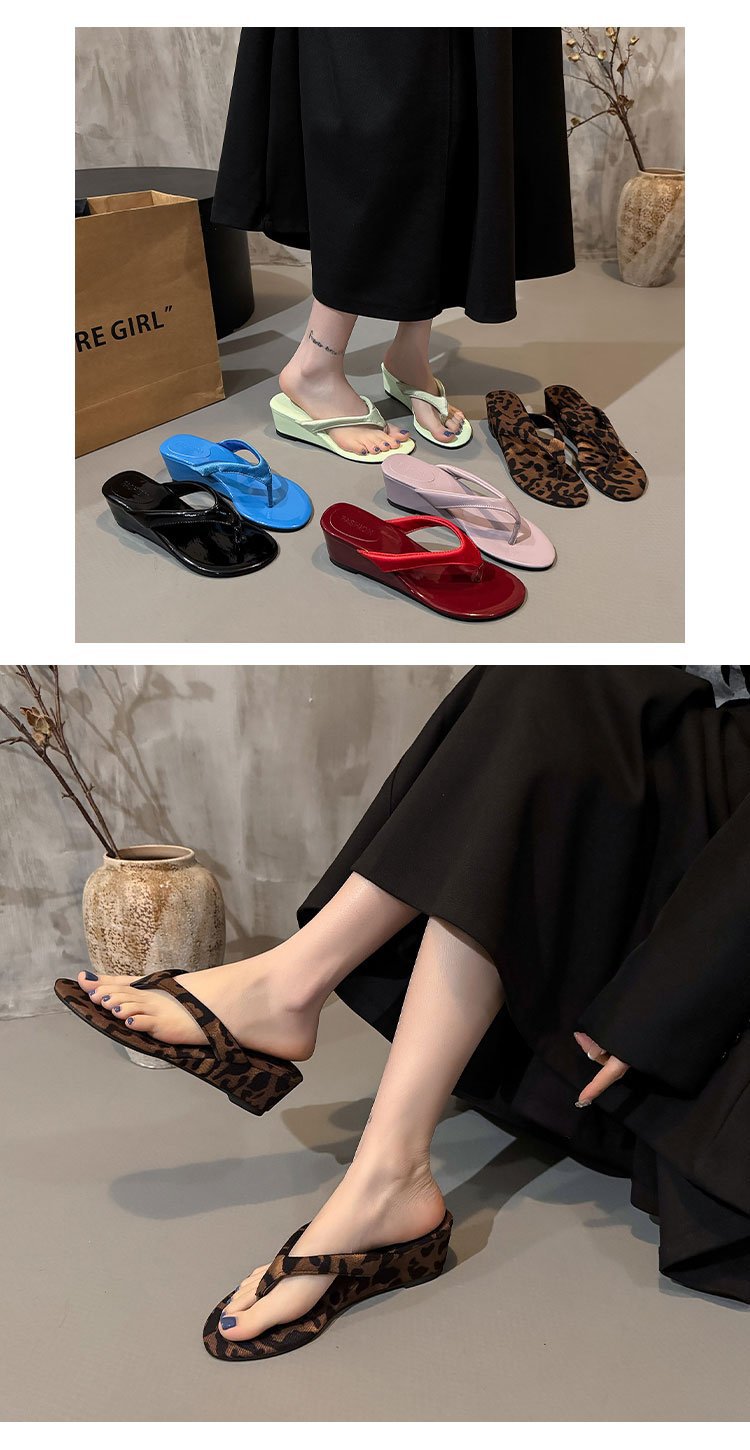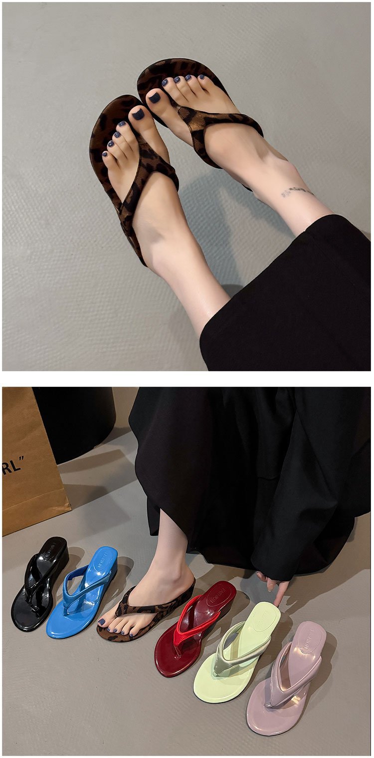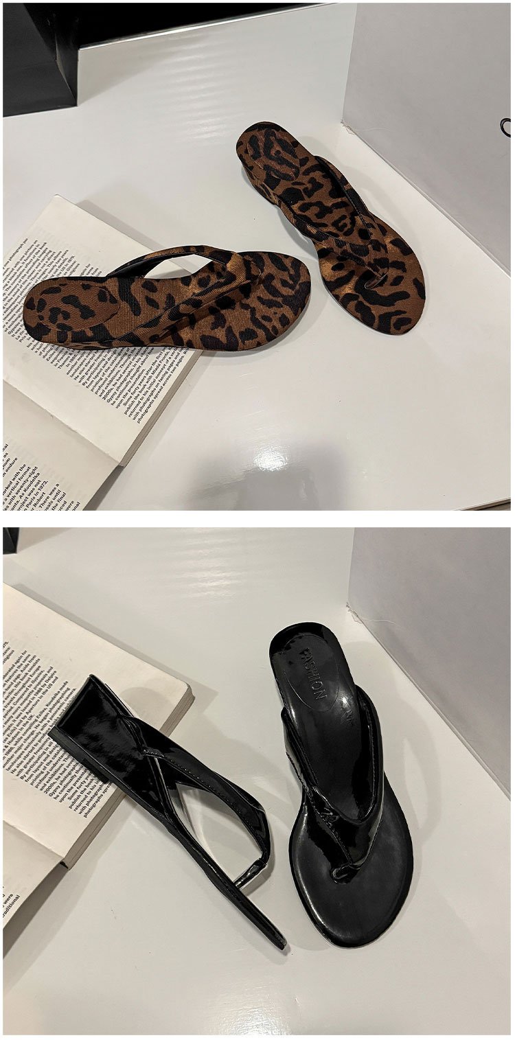 2026년 여름 신상 한국 스타일 여성용 레오파드 프린트 미들힐 플립플랍 샌들 도매