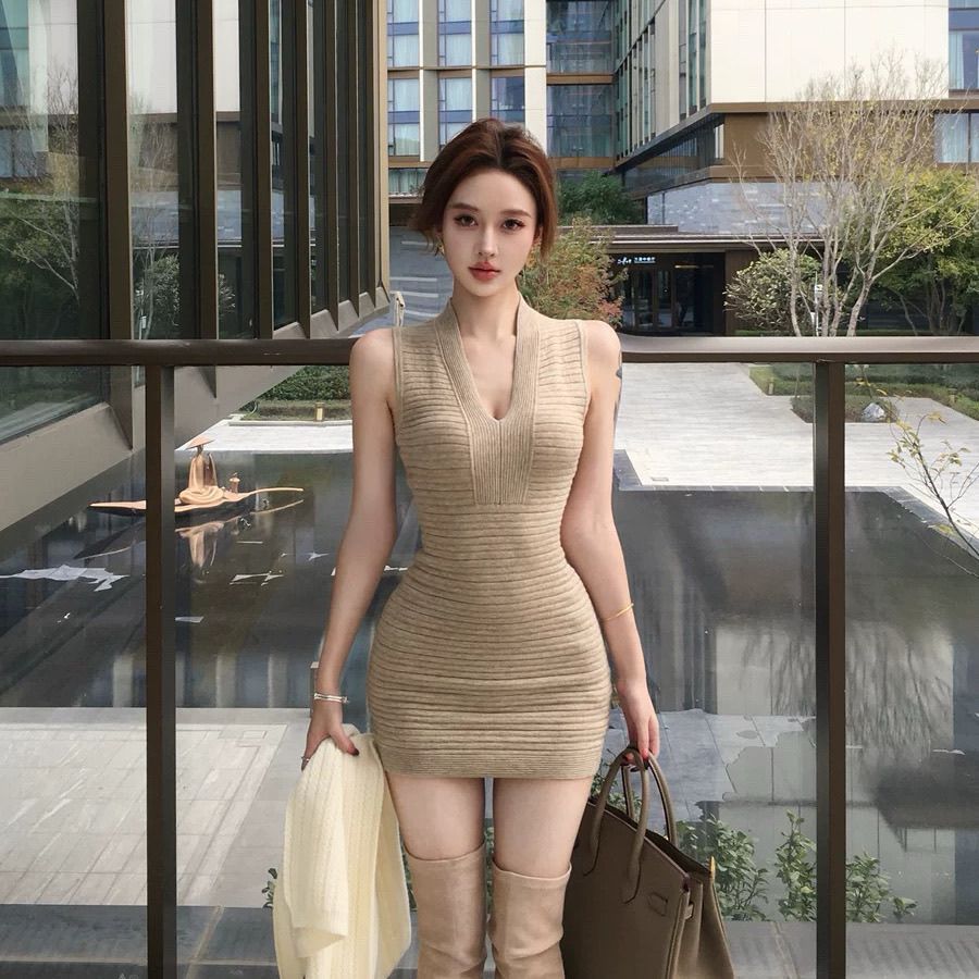 핫걸 스타일 섹시한 홀터넥 타이트핏 힙라인 강조 블랙 미니 드레스 고급 패션 기질 드레스 2026년 초봄