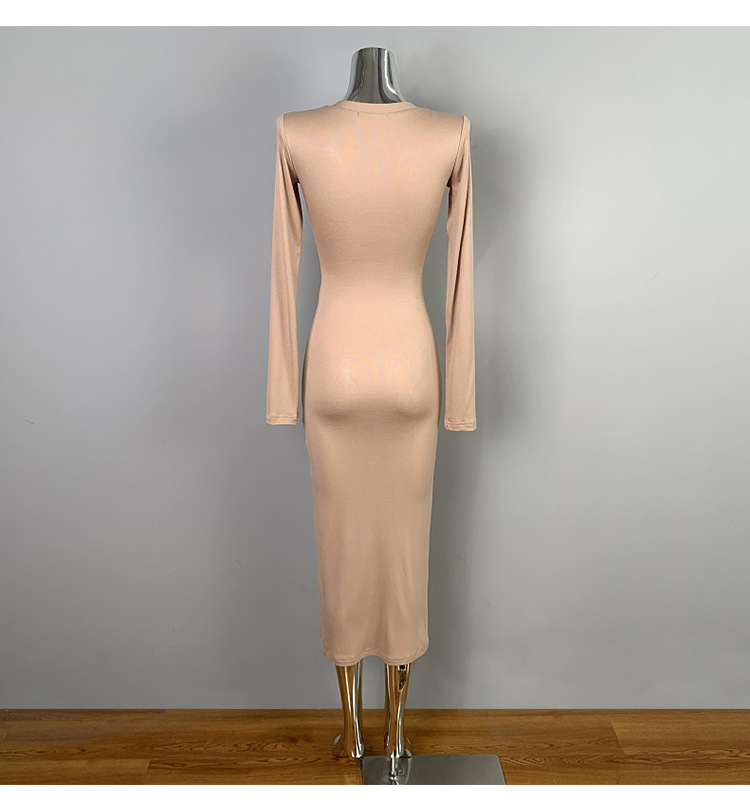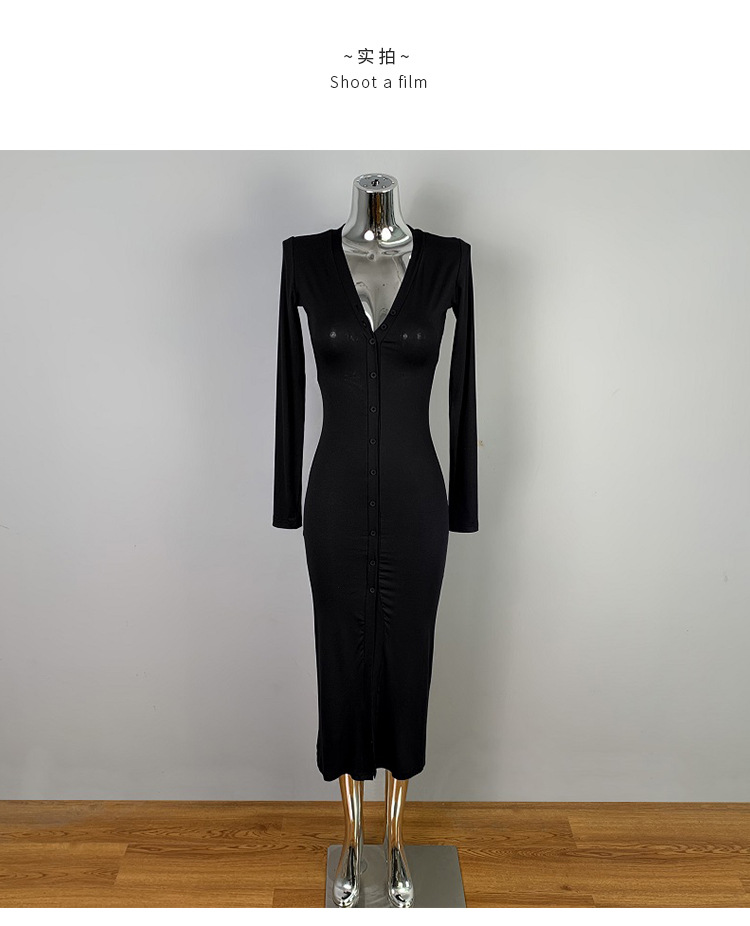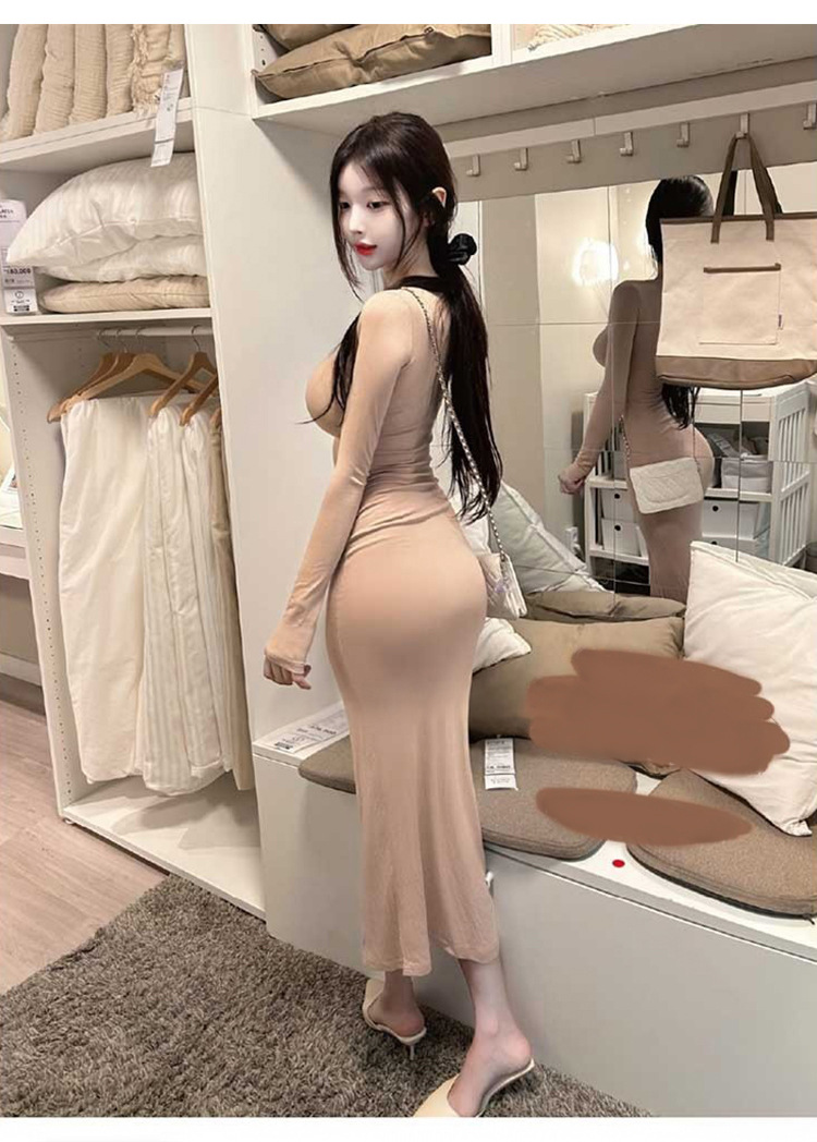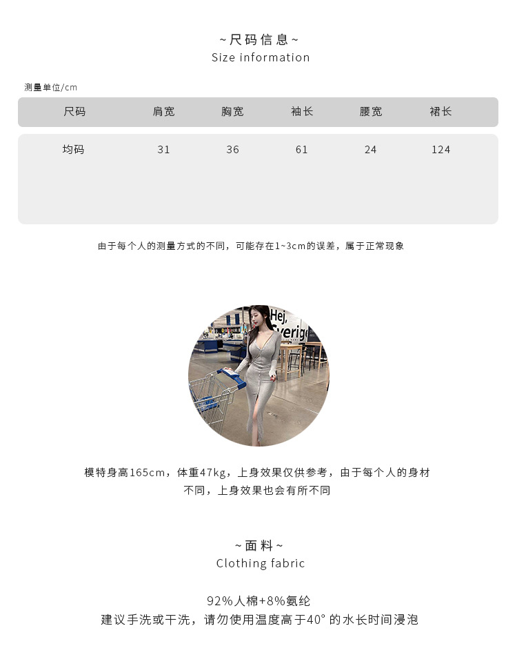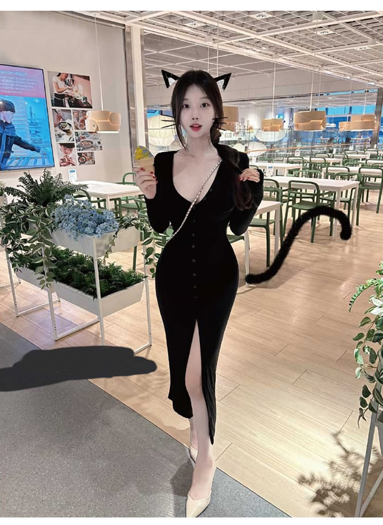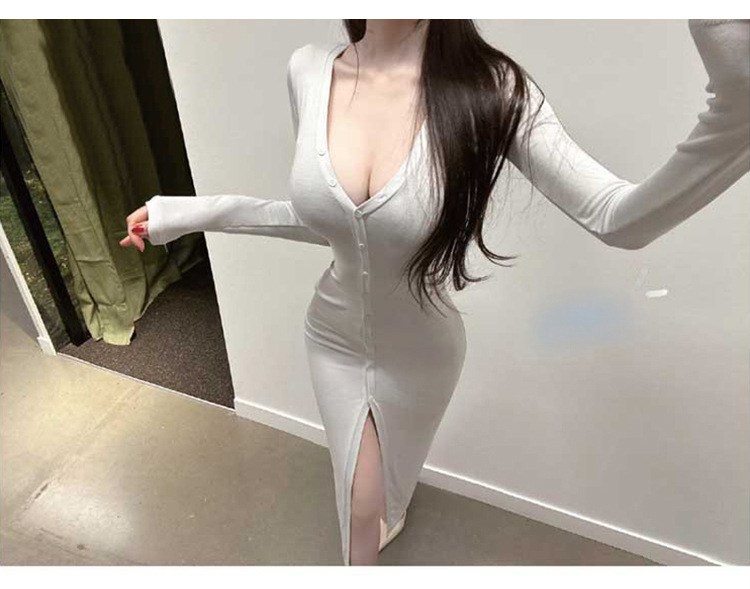 한국 동대문 신상 슬림하고 섹시한 핫걸 순수한 욕망 몸매를 드러내는 여성스러운 슬릿 힙 커버 긴팔 드레스