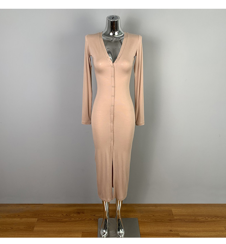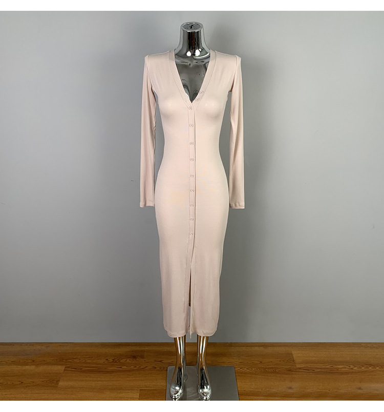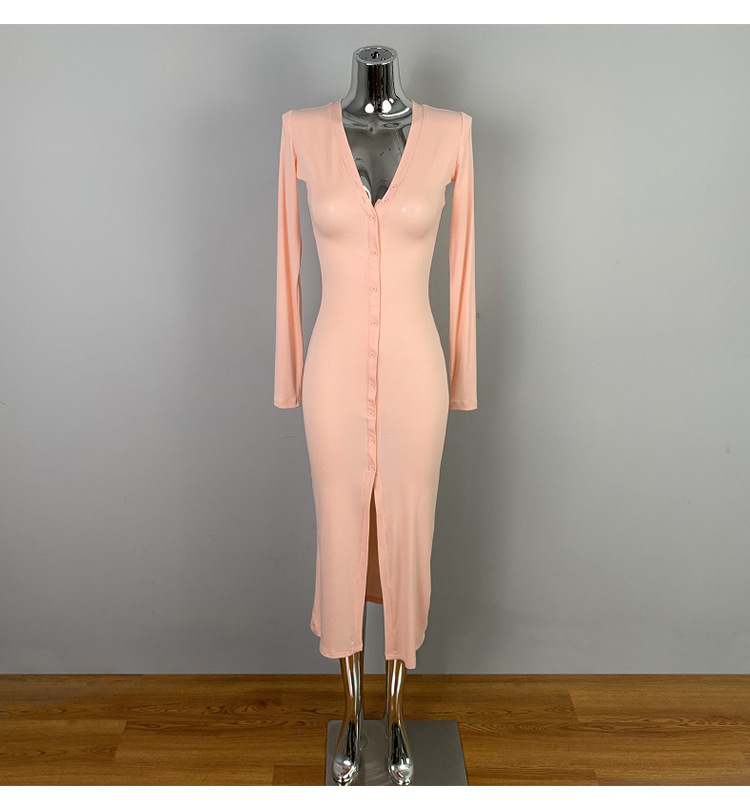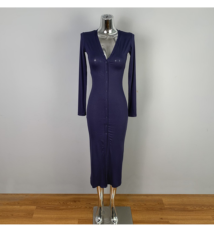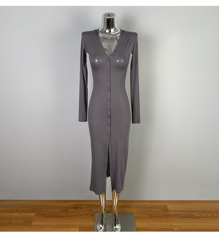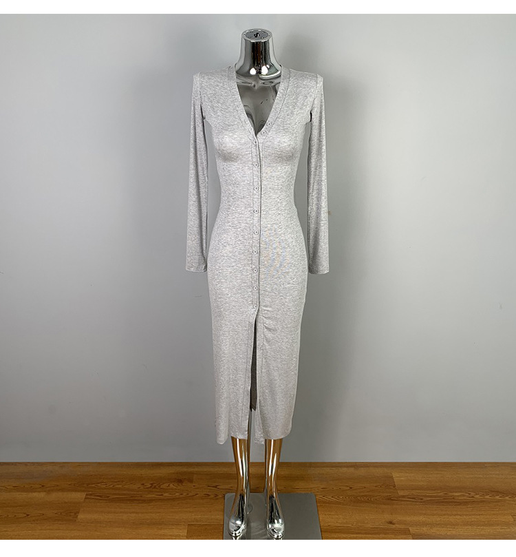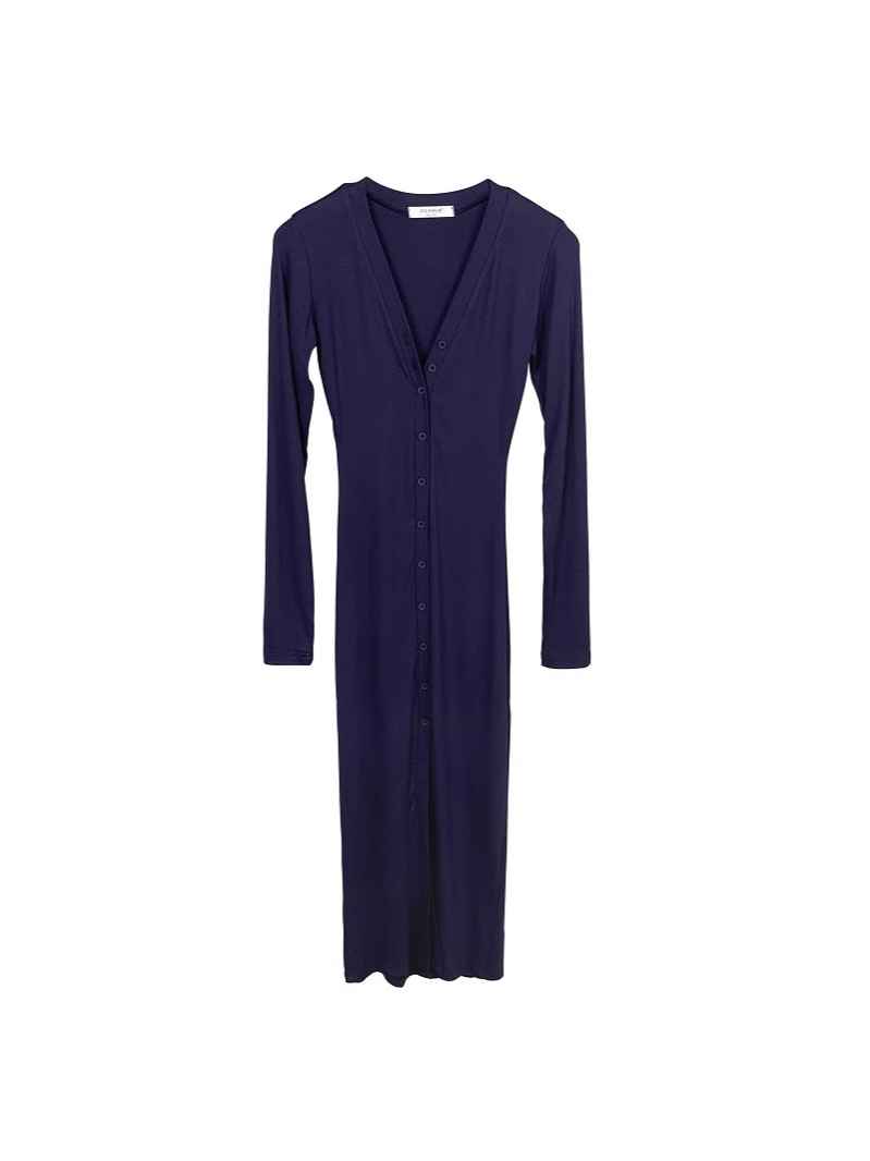 한국 동대문 신상 슬림하고 섹시한 핫걸 순수한 욕망 몸매를 드러내는 여성스러운 슬릿 힙 커버 긴팔 드레스