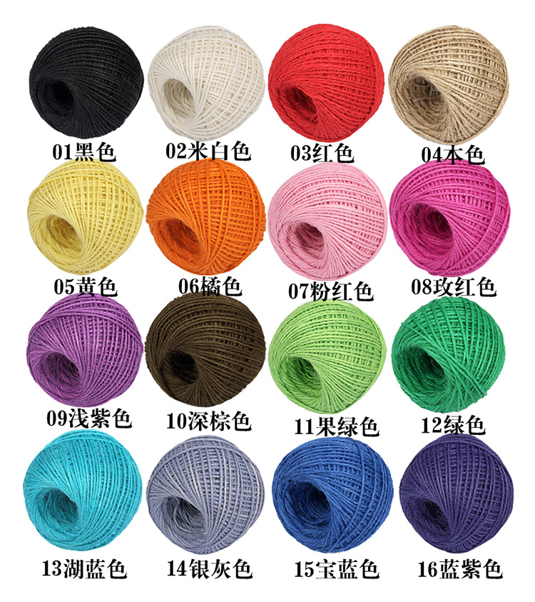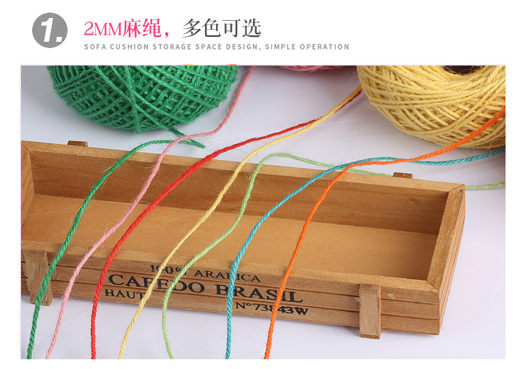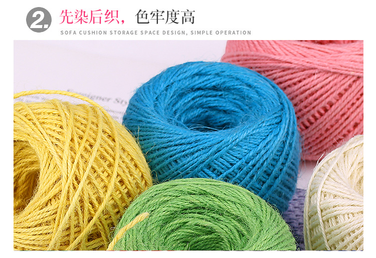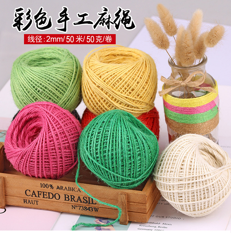 2mm 컬러 대마 로프 천연 황마 고양이 클라이밍 프레임 병 및 항아리 포장 장식 대마 로프 장식 로프 DIY 바인딩 대마 로프
