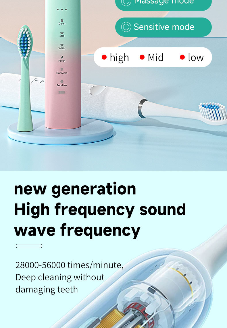 제조 업체 도매 국경 간 부드러운 강모 충전식 완전 자동 금속 샤프트 18 기어 전동 칫솔 커플 모델 성인