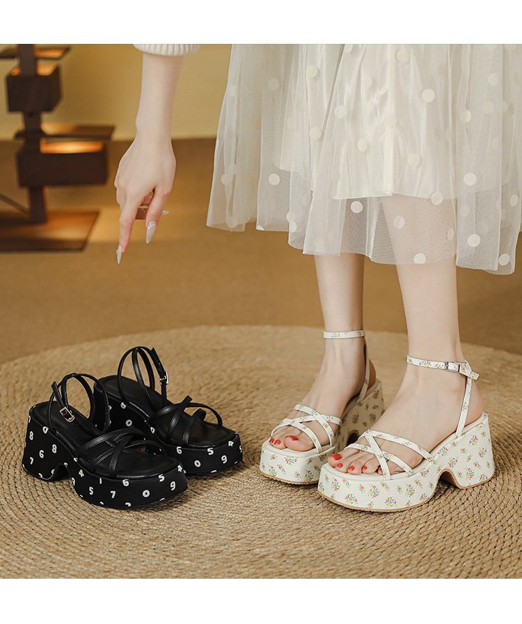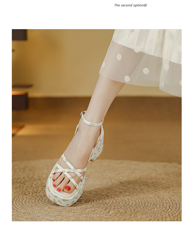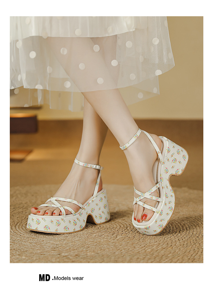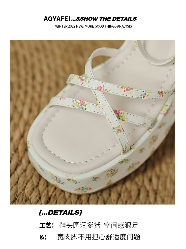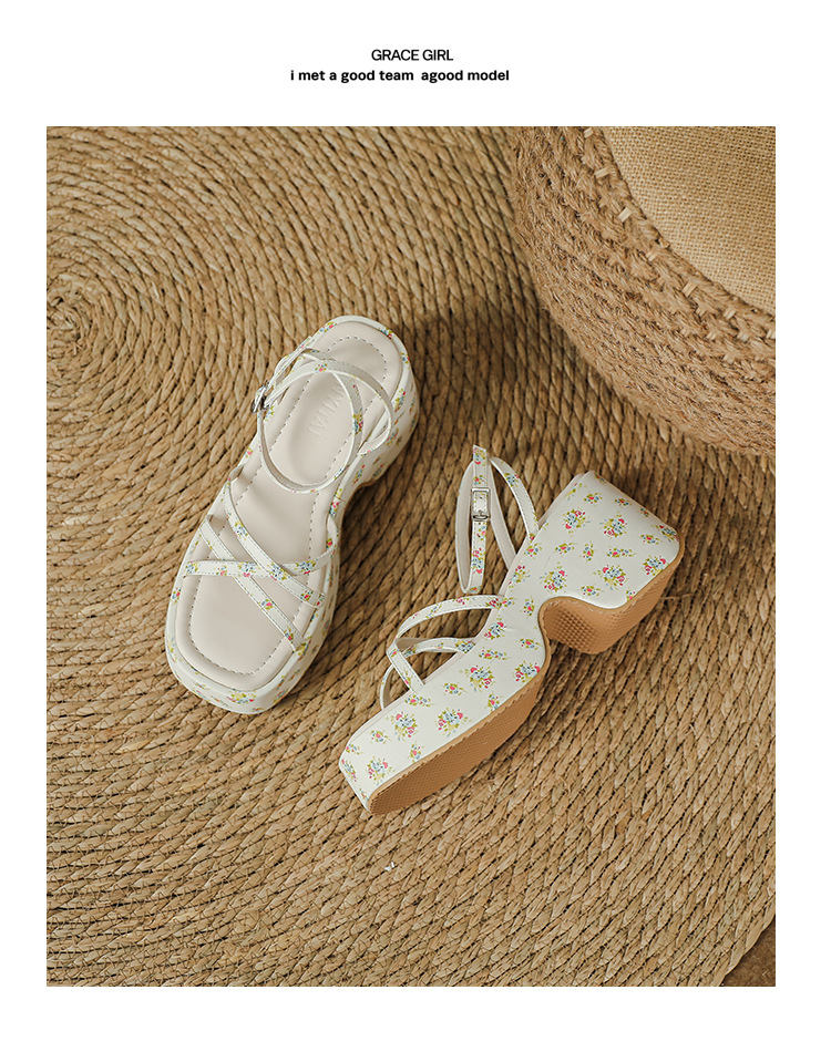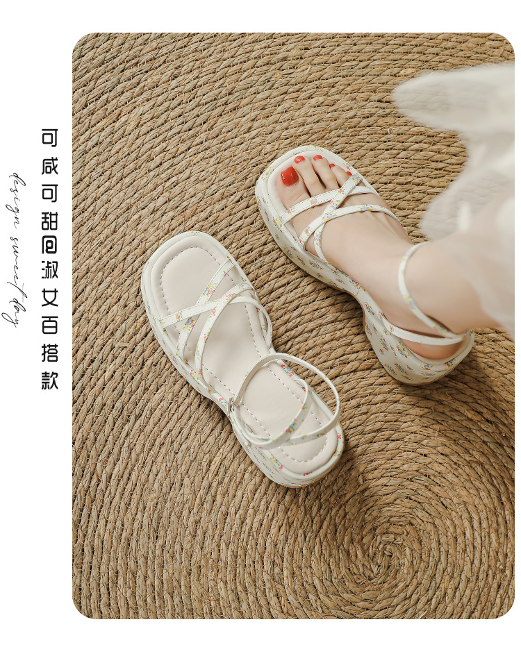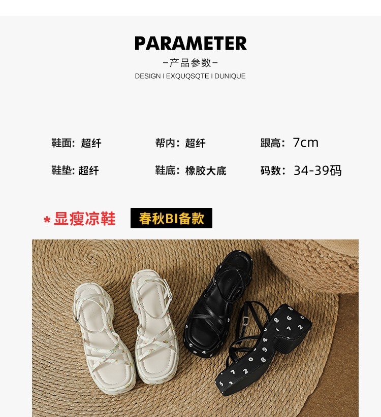두꺼운 밑창 웨지 샌들 여성 여름 달콤한 쿨 스타일 한 단어 버클 스트랩 작은 높이 증가 7cm 방수 플랫폼 로마 샌들 여성