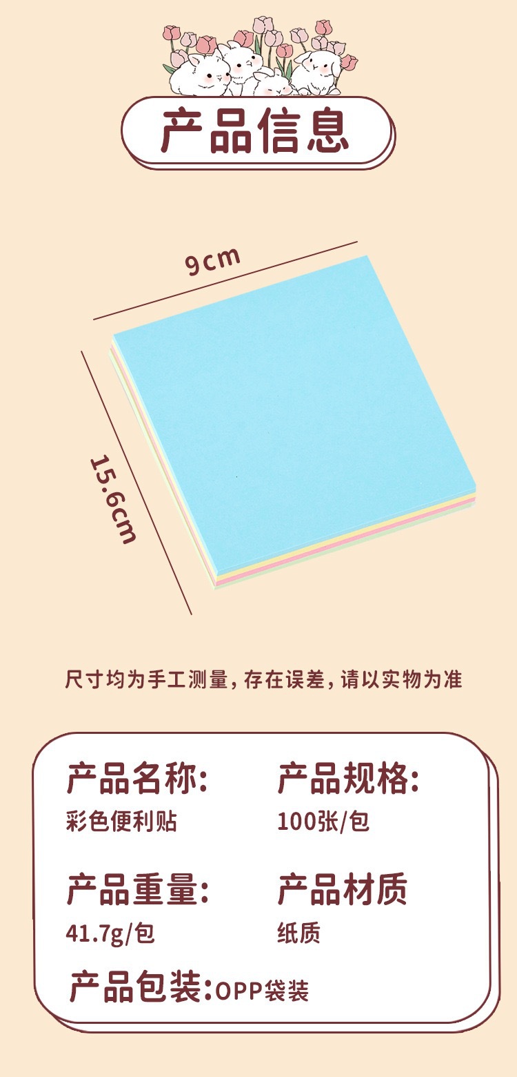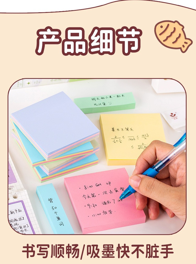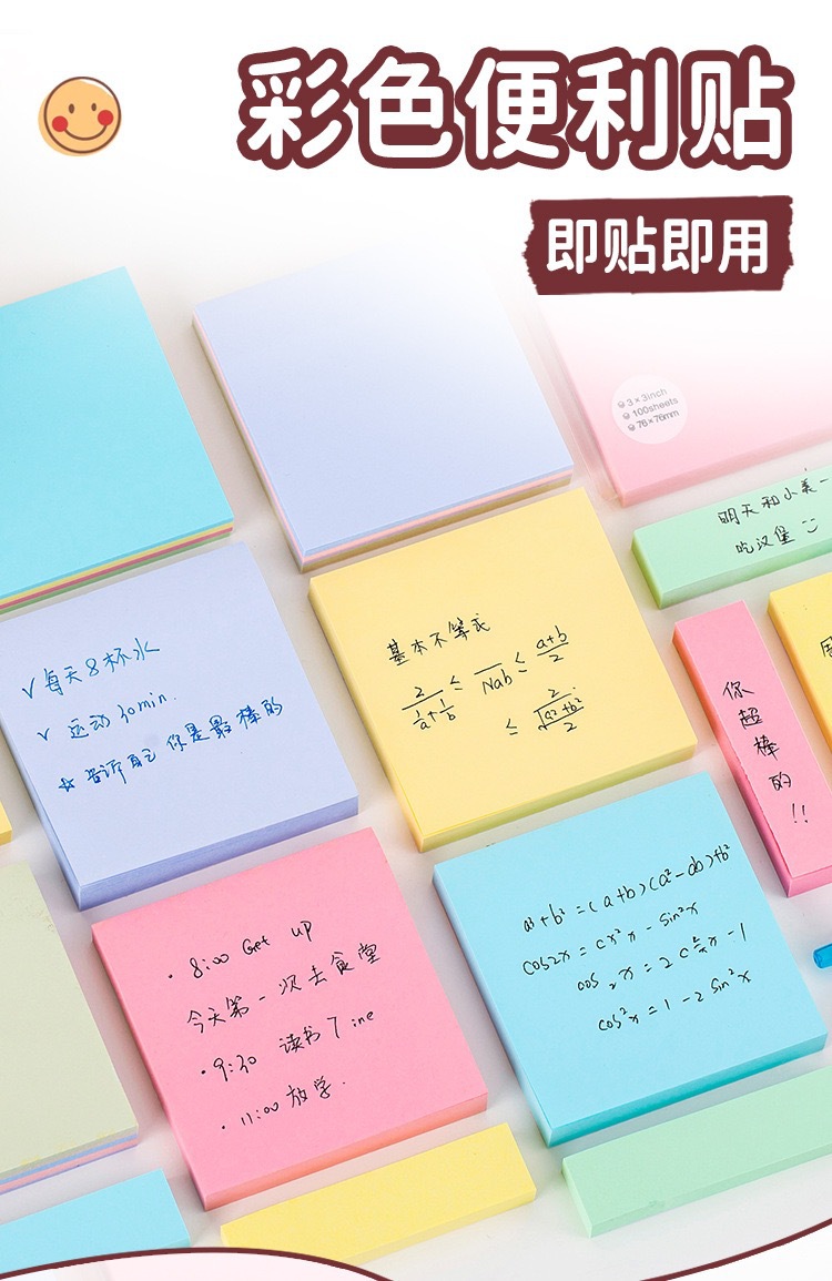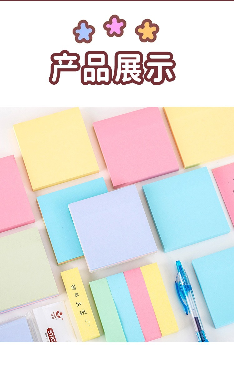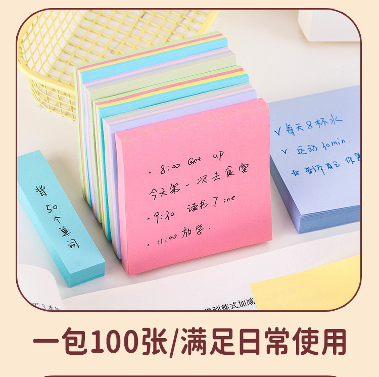 간단한 단색 스티커 메모 자체 접착 메모 용지 100 사무실 문구 학생 메시지 메모 스티커 도매