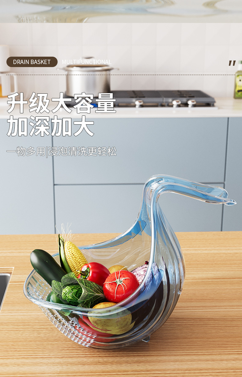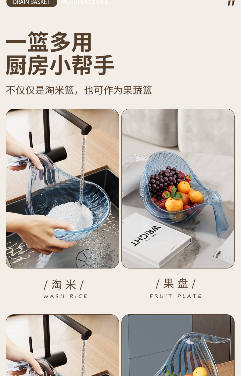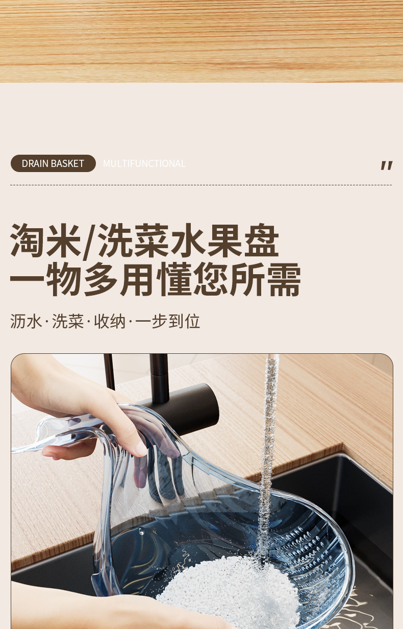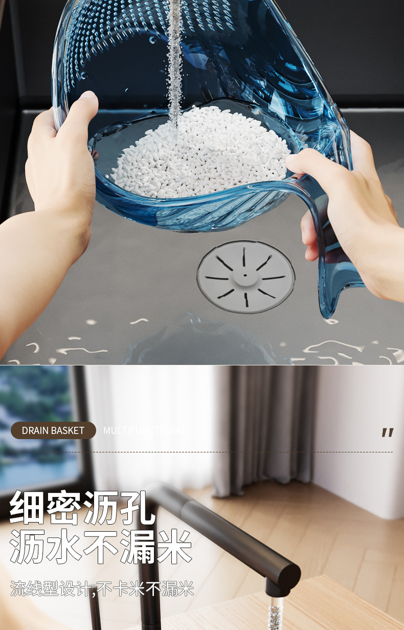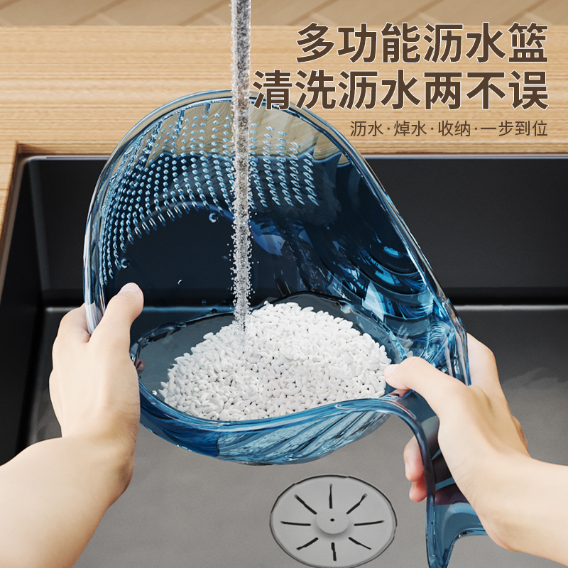 국경 간 새로운 다기능 배수 바구니 다기능 과일 분지 주방 가정용 야채 세척 바구니 투명한 쌀 세척 유물
