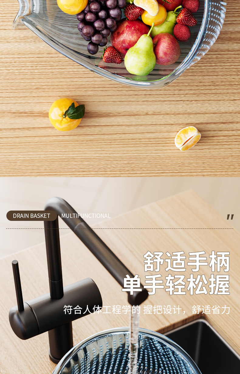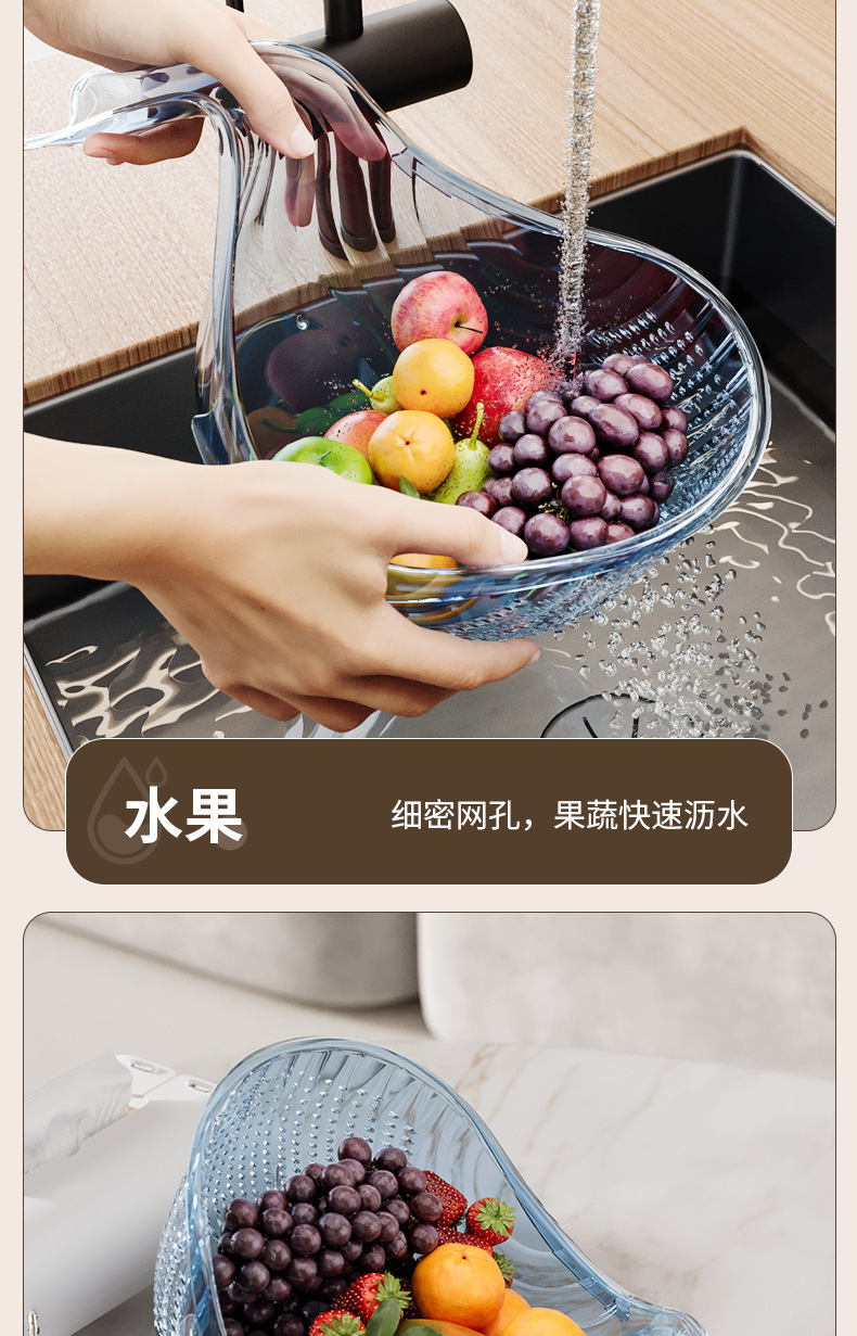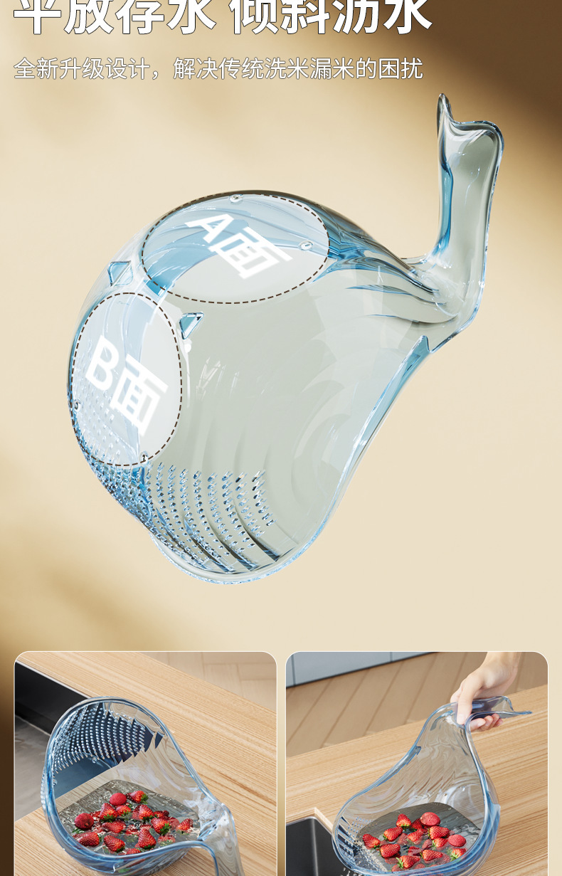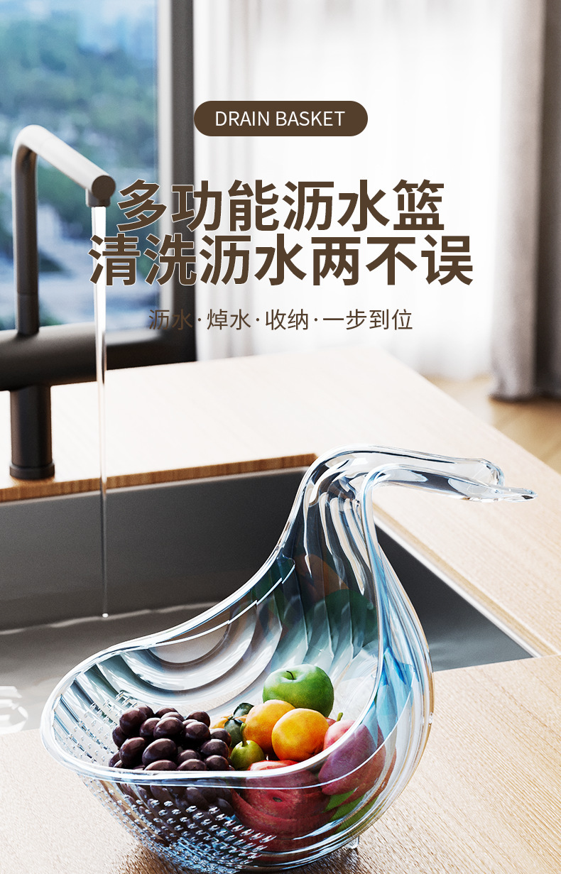 국경 간 새로운 다기능 배수 바구니 다기능 과일 분지 주방 가정용 야채 세척 바구니 투명한 쌀 세척 유물