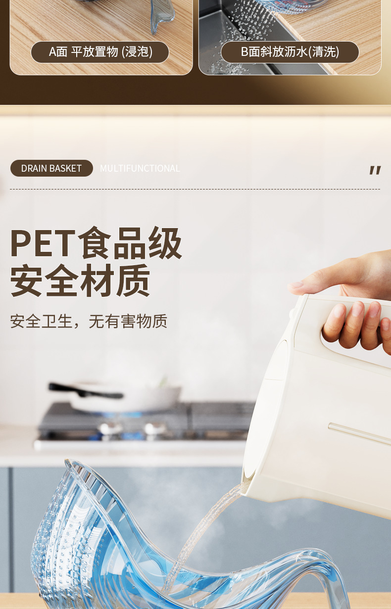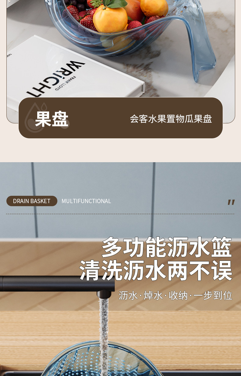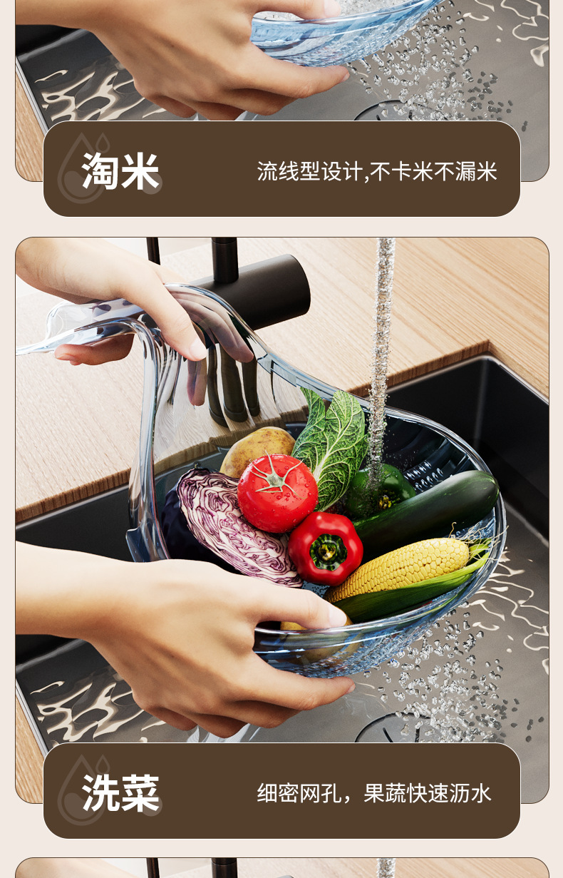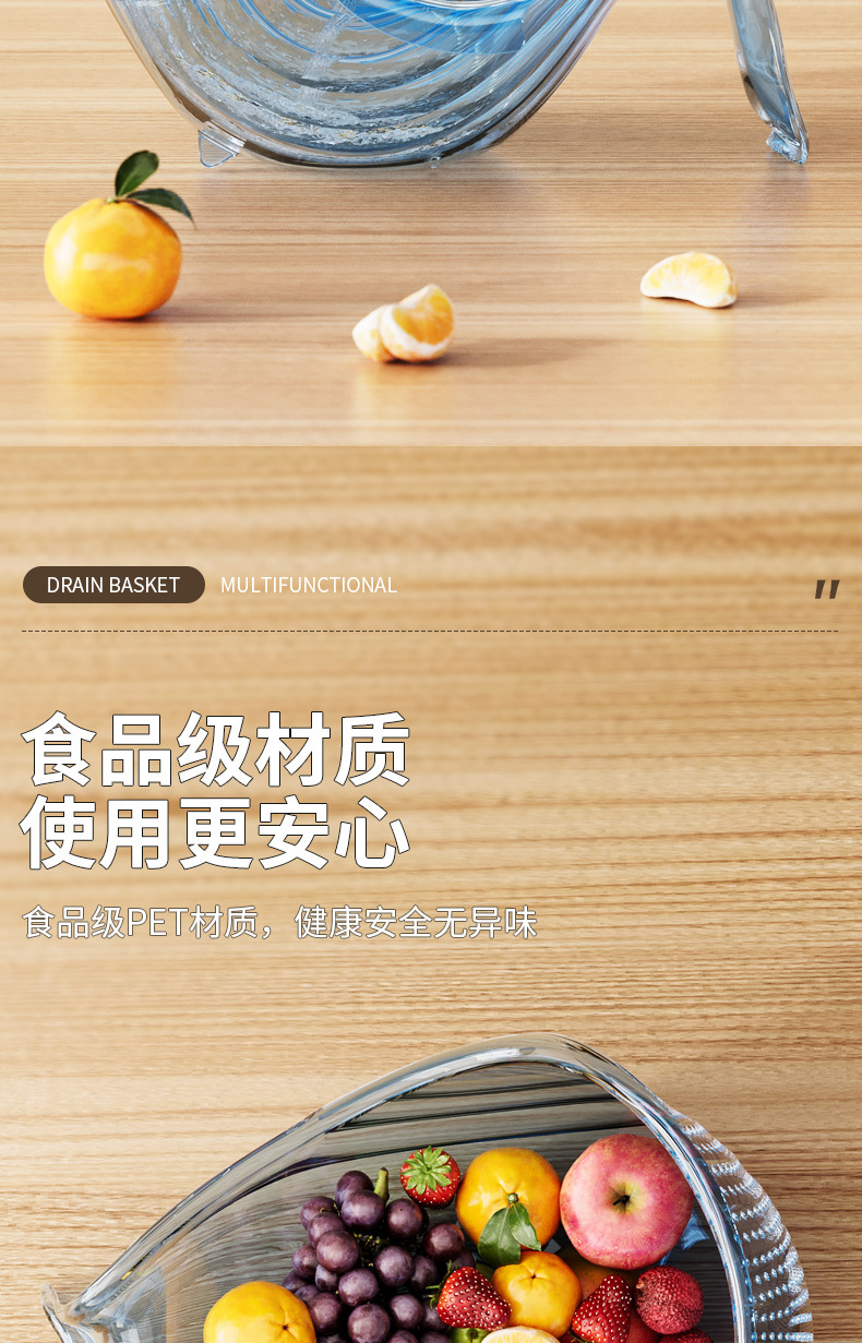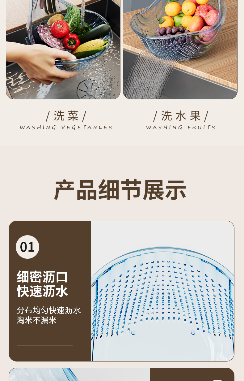 국경 간 새로운 다기능 배수 바구니 다기능 과일 분지 주방 가정용 야채 세척 바구니 투명한 쌀 세척 유물