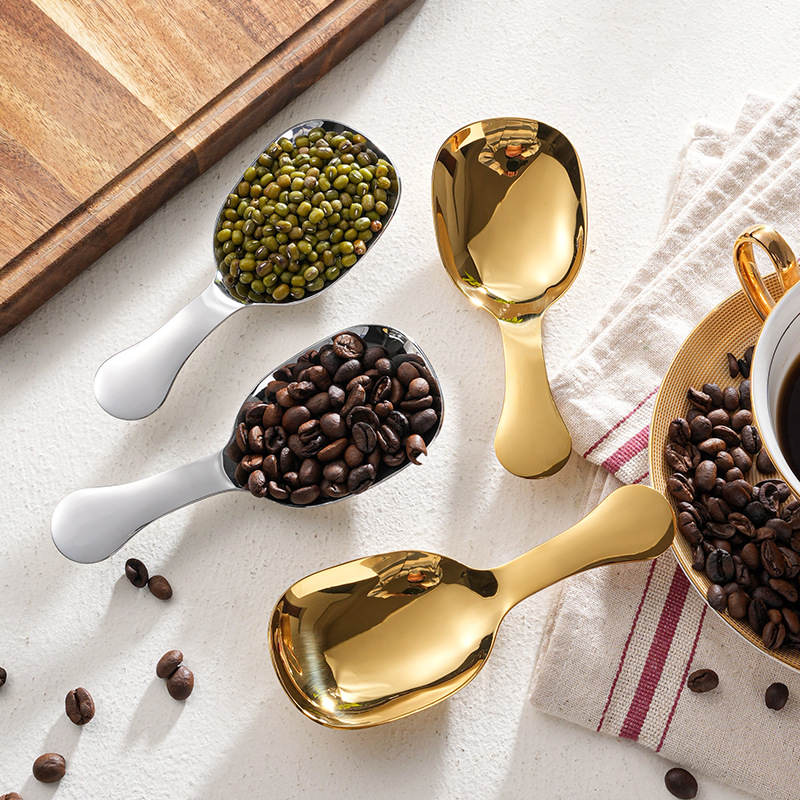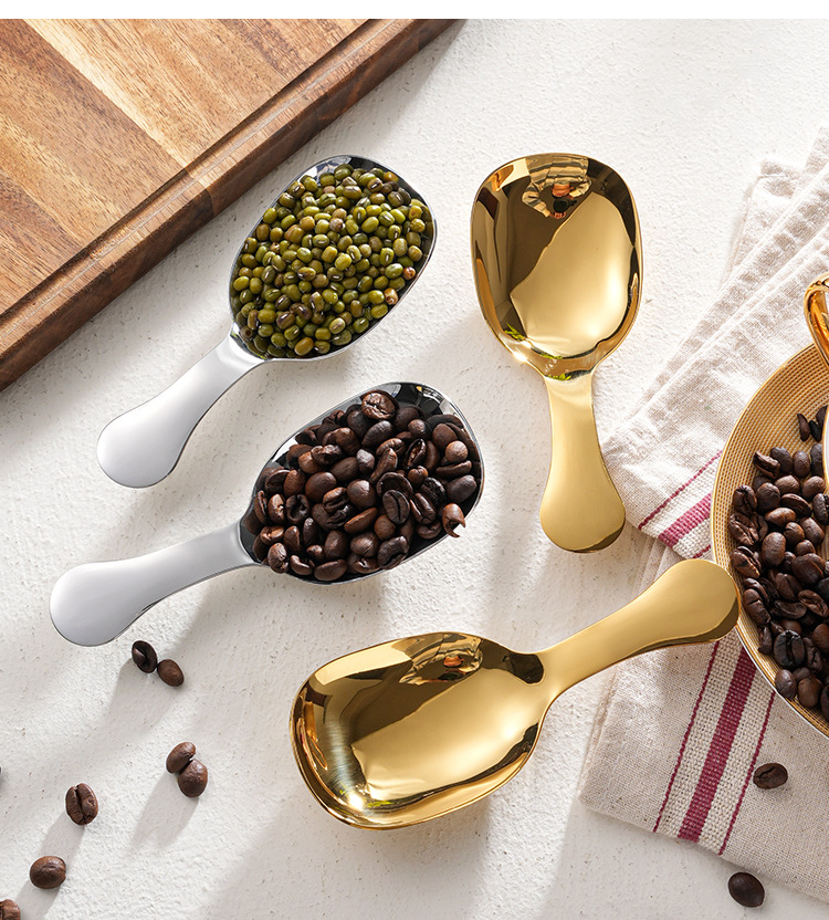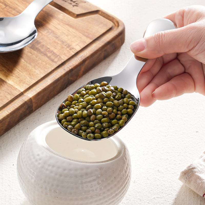 두꺼운 짧은 손잡이 스테인레스 스틸 차 스푼 커피 콩 주걱 아이스크림 스푼 밀가루 스푼 측정 스푼 가정용 미니 차 스푼