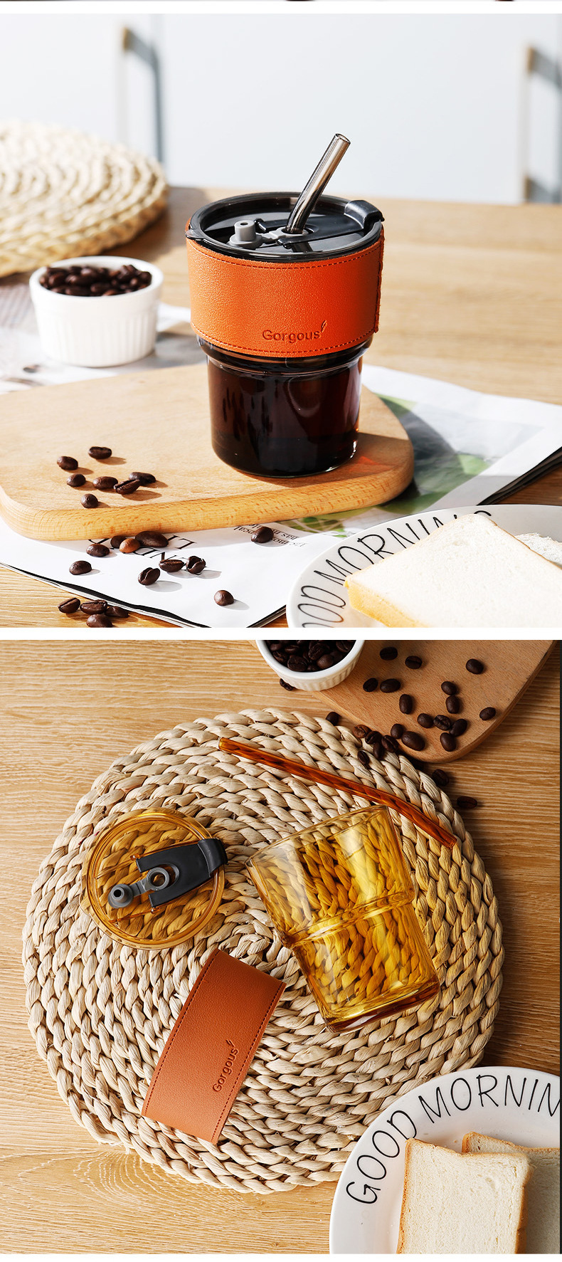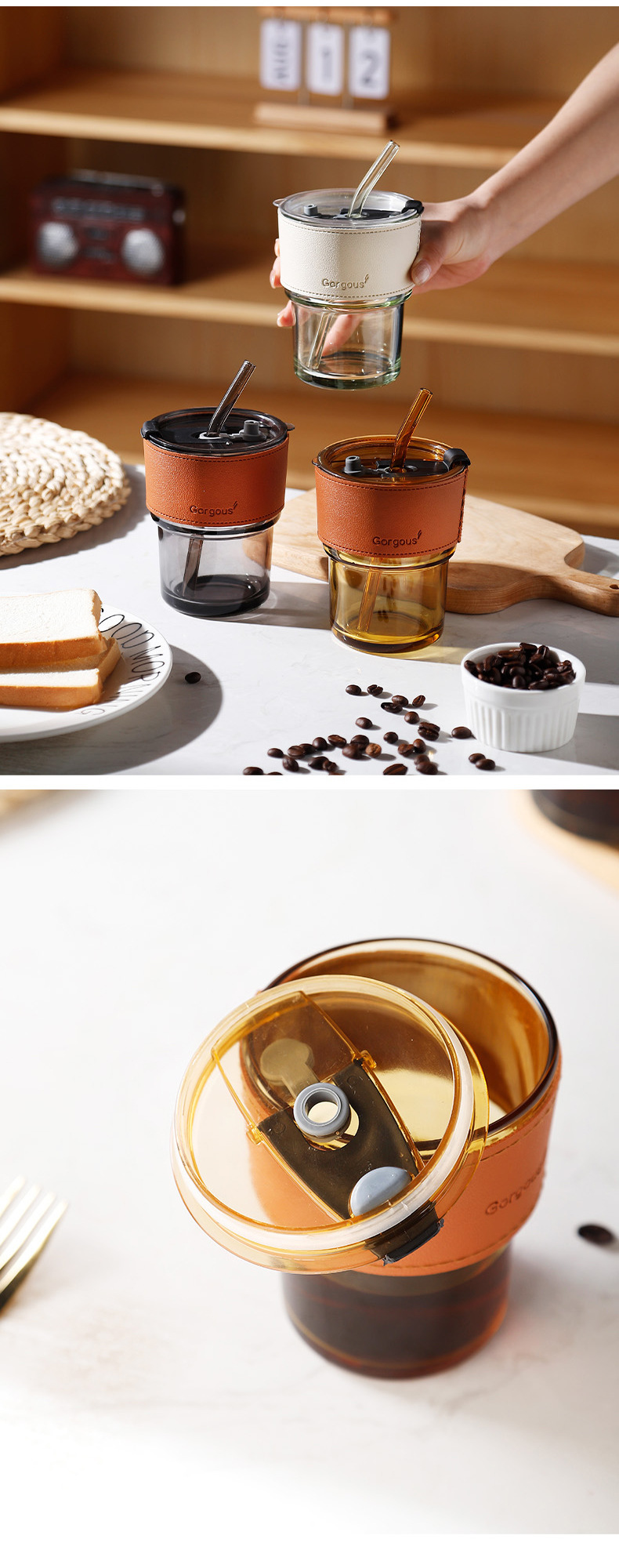 호박색 + 뚜껑 + 빨대 + 컵 슬리브 + 컬러 박스
