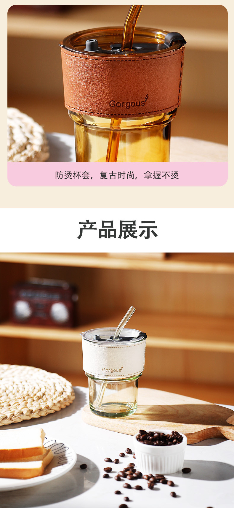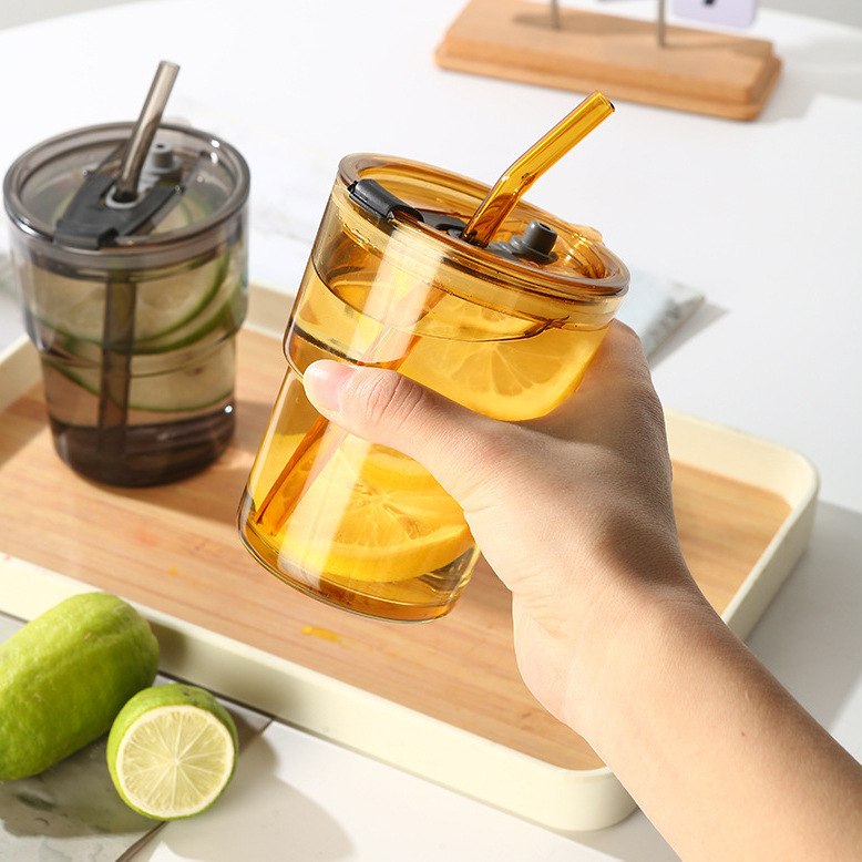 网红竹节杯ins风吸管咖啡双饮杯子引流广告礼品玻璃水杯印制logo定制logo批发网红玻璃竹节杯子严选百货开业小引流礼品赠送水杯00
