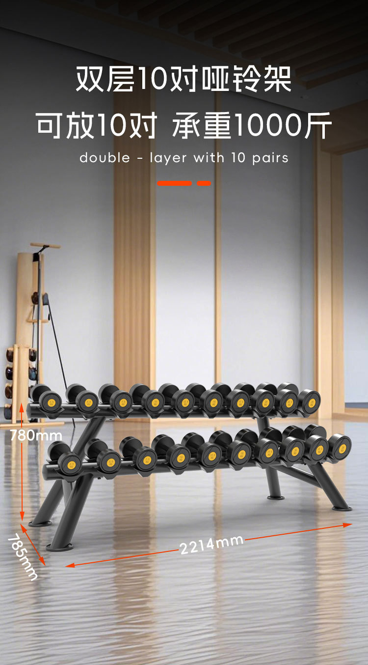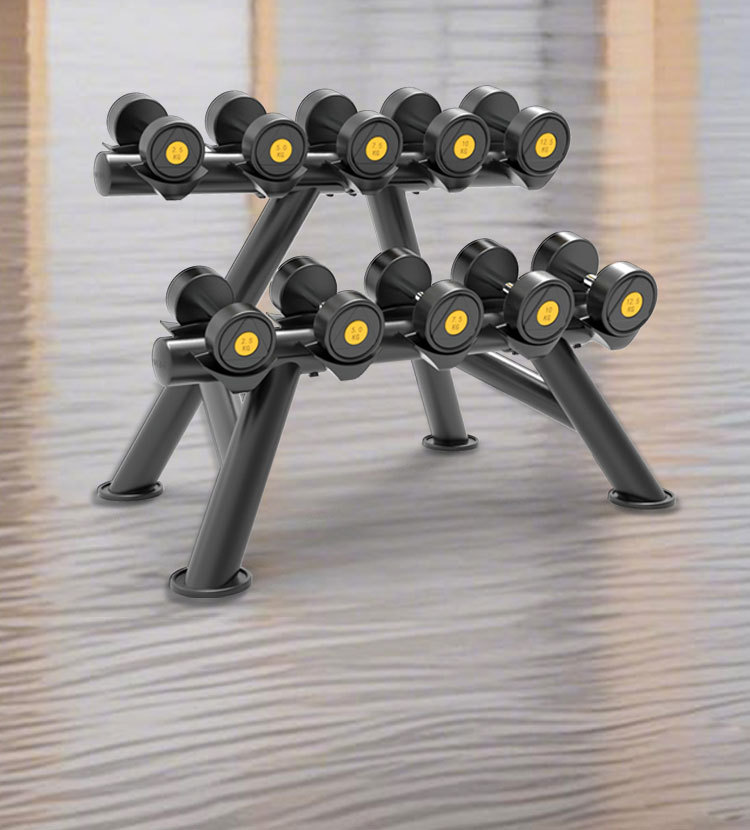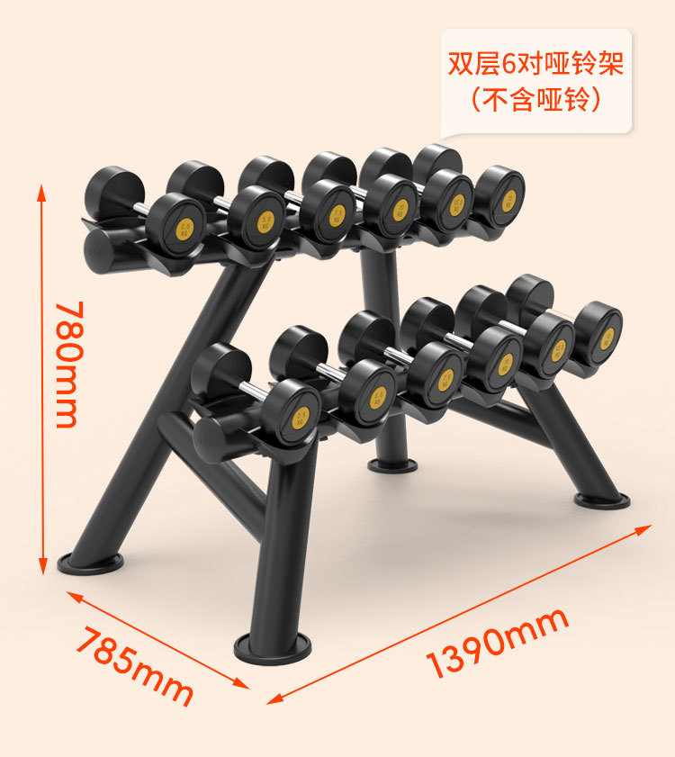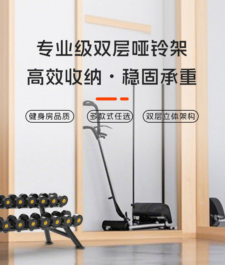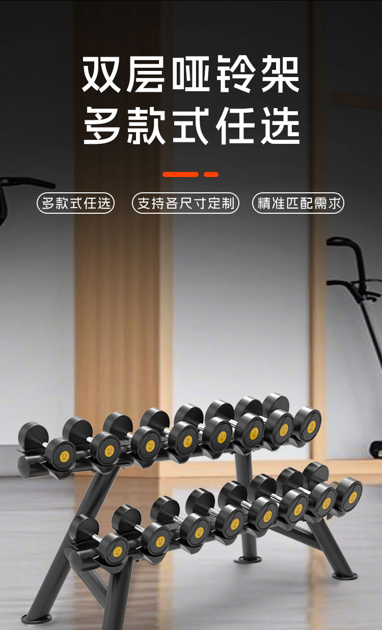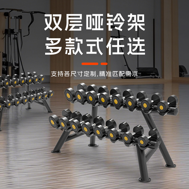 피트니스 장비 더블 레이어 덤벨 랙 라운드 헤드 육각형 고무 덤벨 랙 체육관 개인 트레이너 가제트 보관