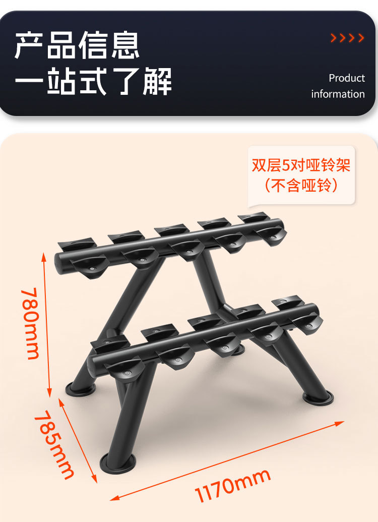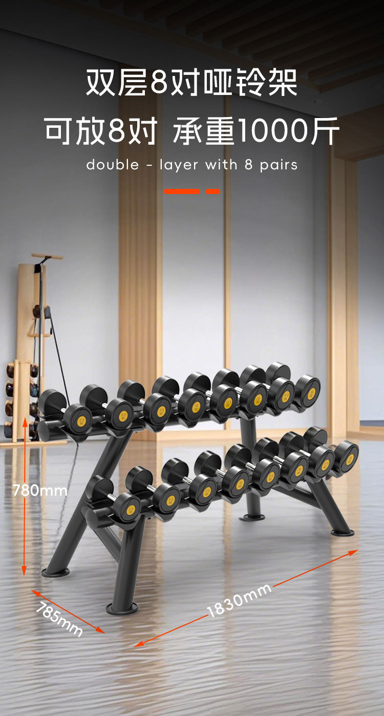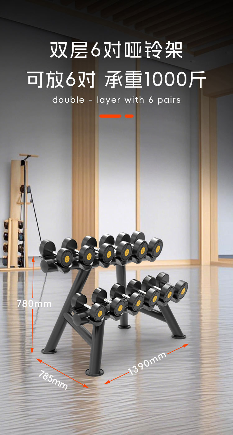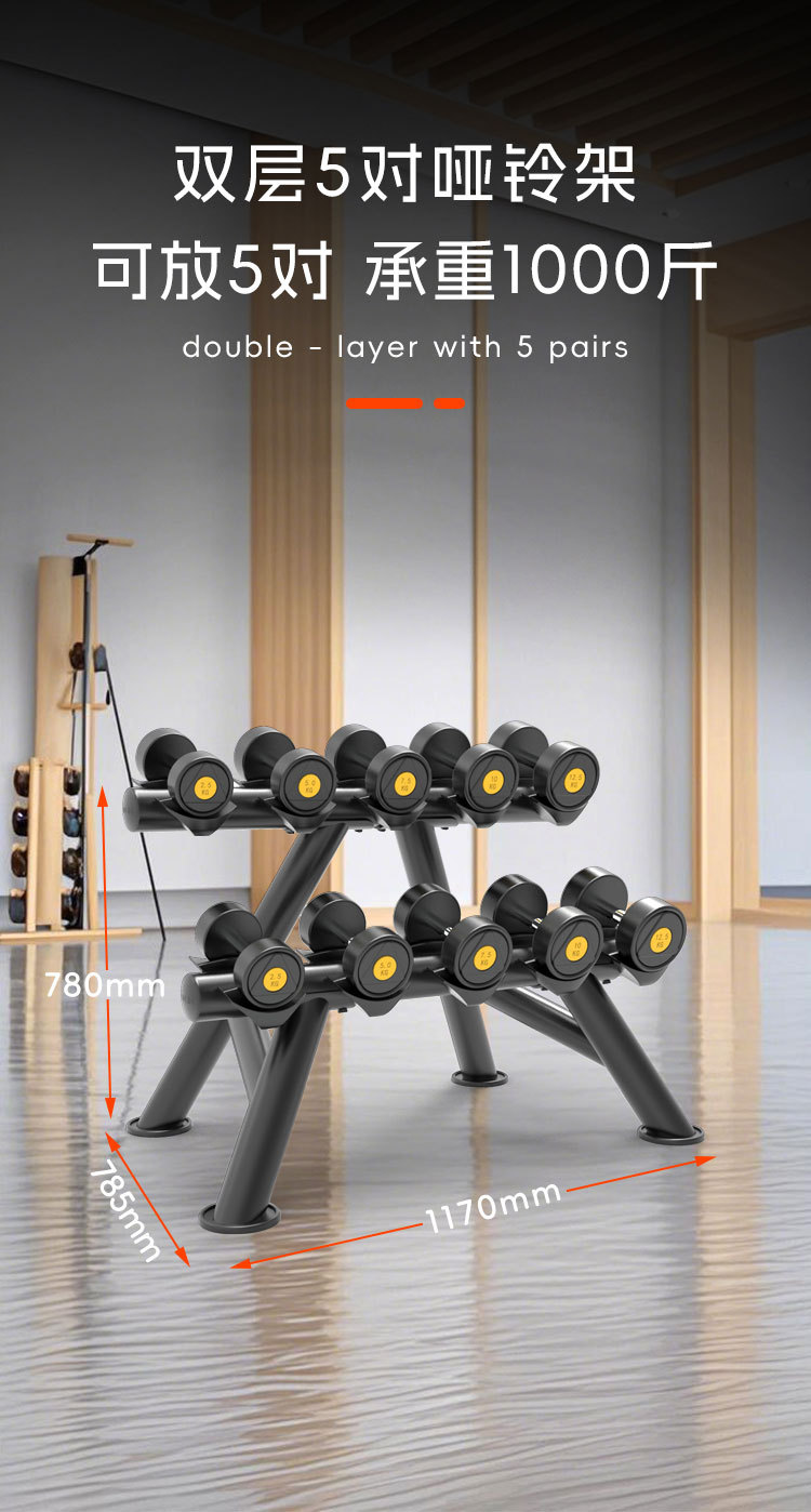 피트니스 장비 더블 레이어 덤벨 랙 라운드 헤드 육각형 고무 덤벨 랙 체육관 개인 트레이너 가제트 보관