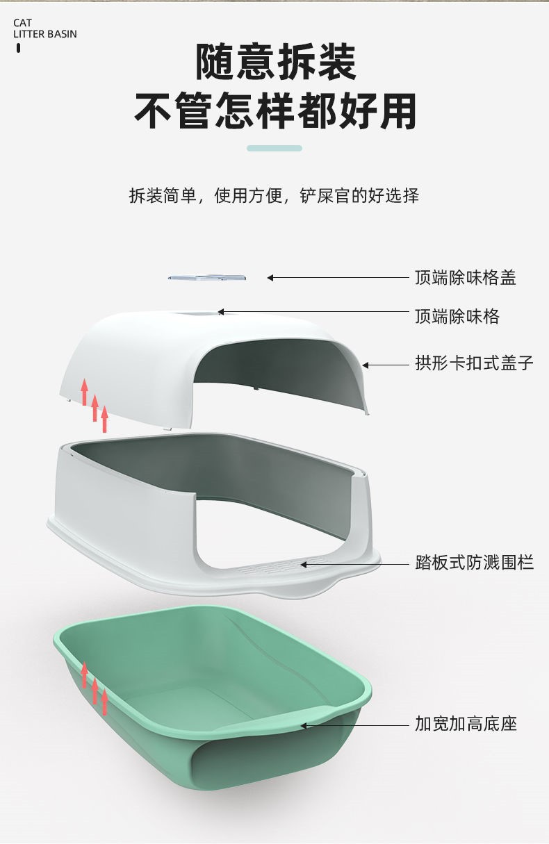 완전 밀폐형 고양이 화장실, 초대형 탈취 및 고양이 모래로 물 튀김 방지, 새끼 고양이 모래 화장실, 고양이 용품