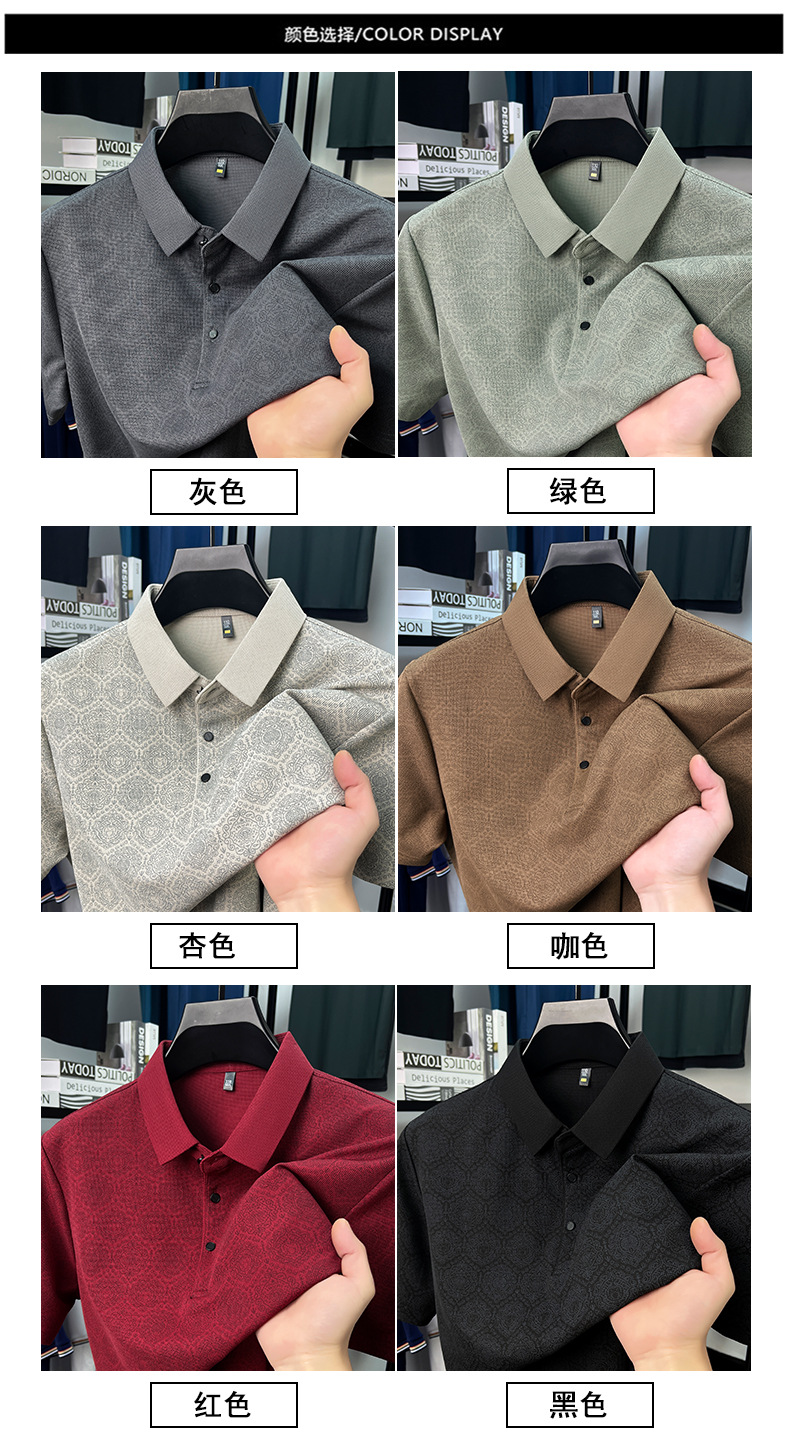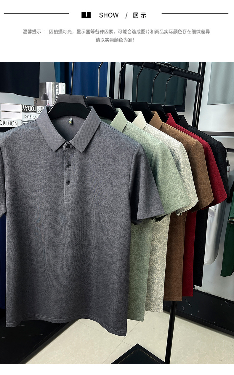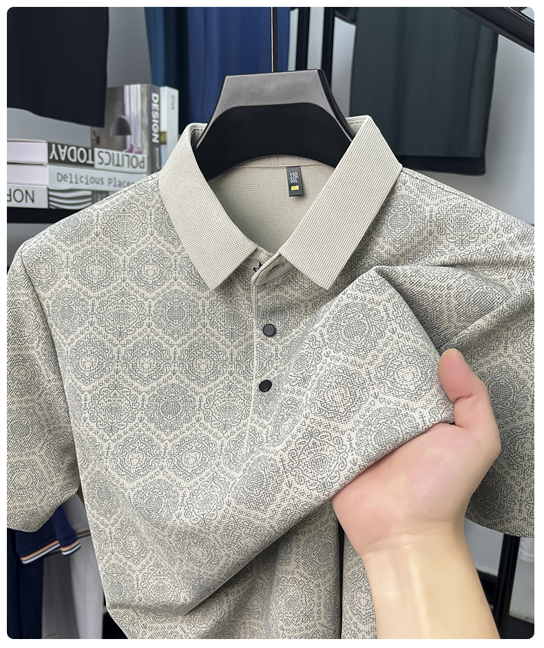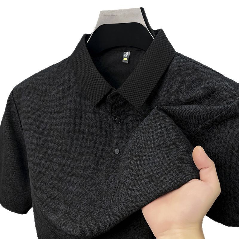 남성 티셔츠 반팔 크로스보더 도킹 2025 여름 신작 전신 프린트 와플 중년 아버지 폴로 셔츠