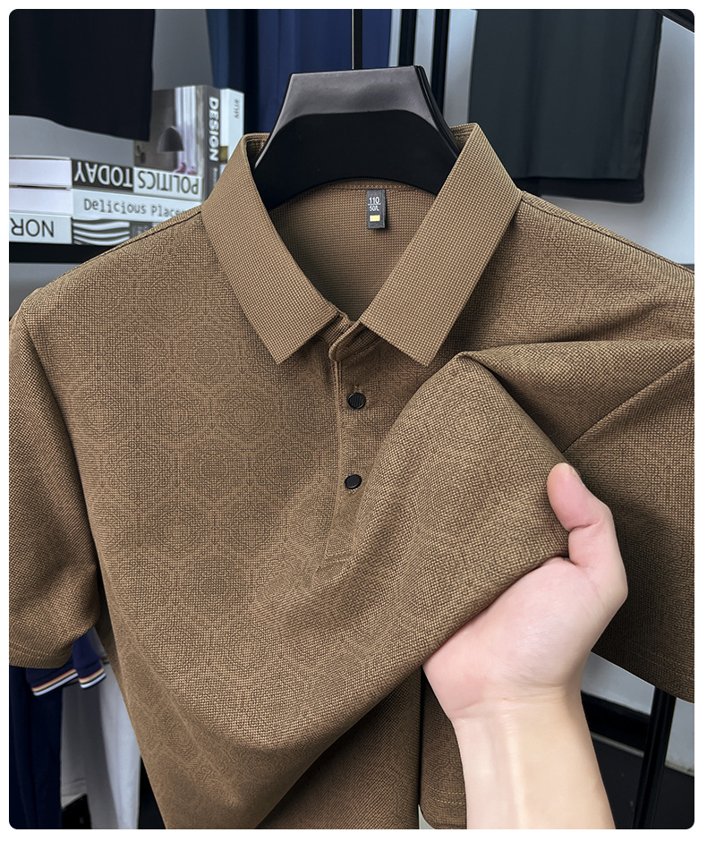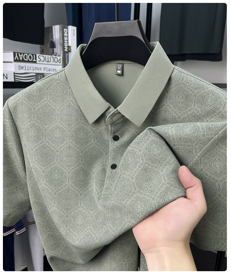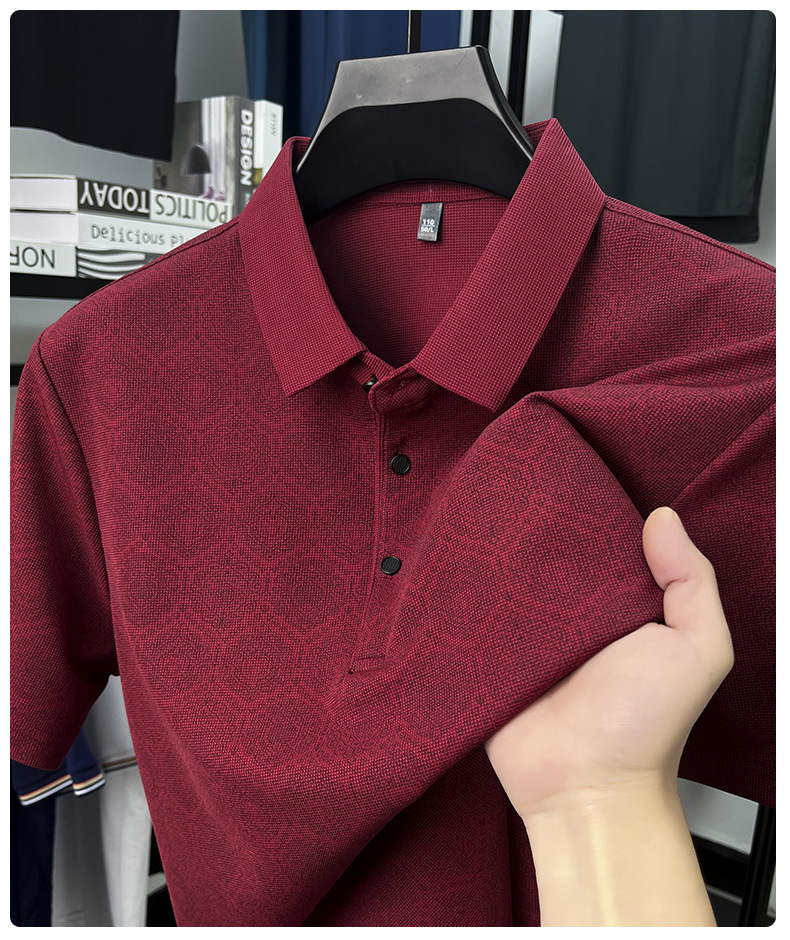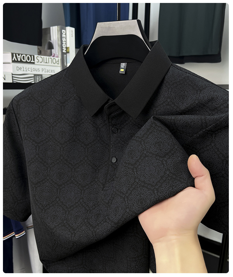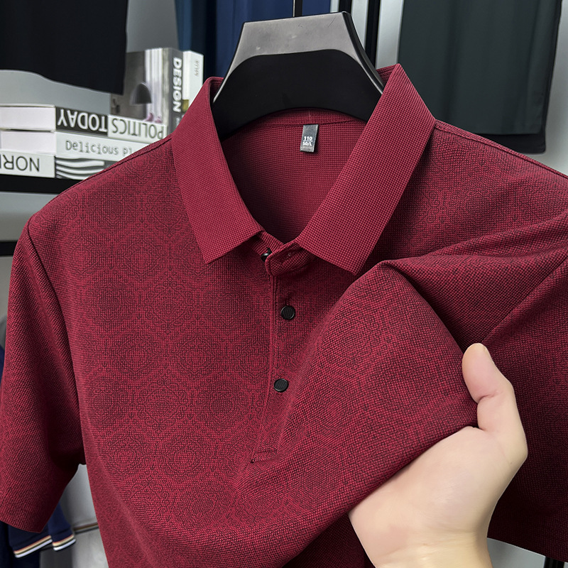 남성 티셔츠 반팔 크로스보더 도킹 2025 여름 신작 전신 프린트 와플 중년 아버지 폴로 셔츠