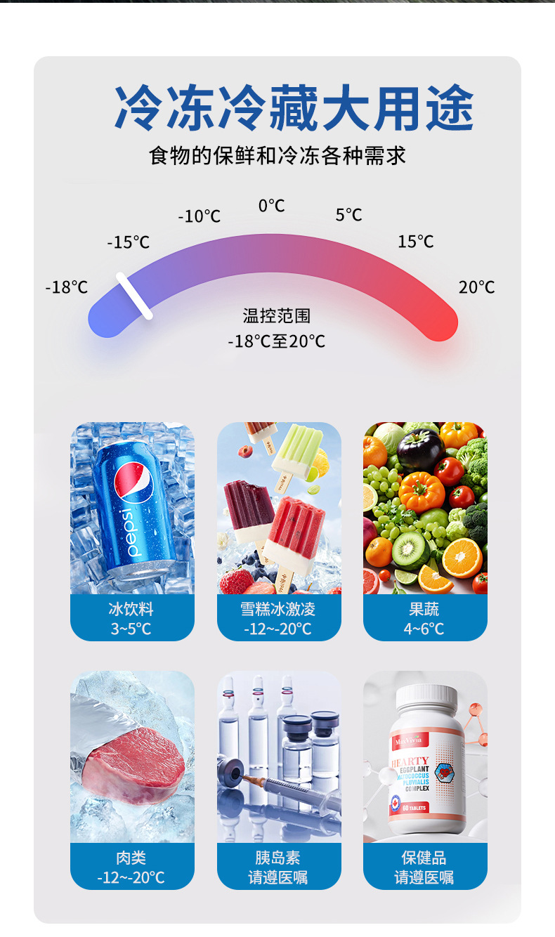 【制冷范围】:制冷大约20 - 零下15℃左右