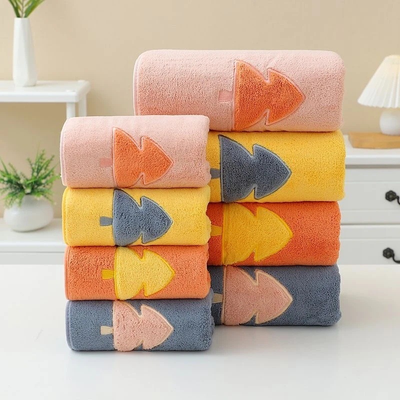 원산지 제조업체에서 도매하는 산호벨벳 성인용 가정용 테두리 디자인 처리된 두껍고 부드러우며 물을 흡수하는 보풀 없는 자수 타월