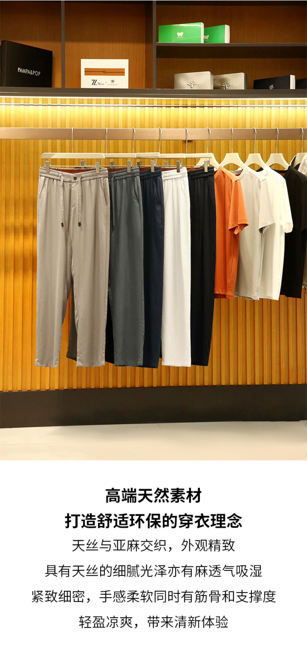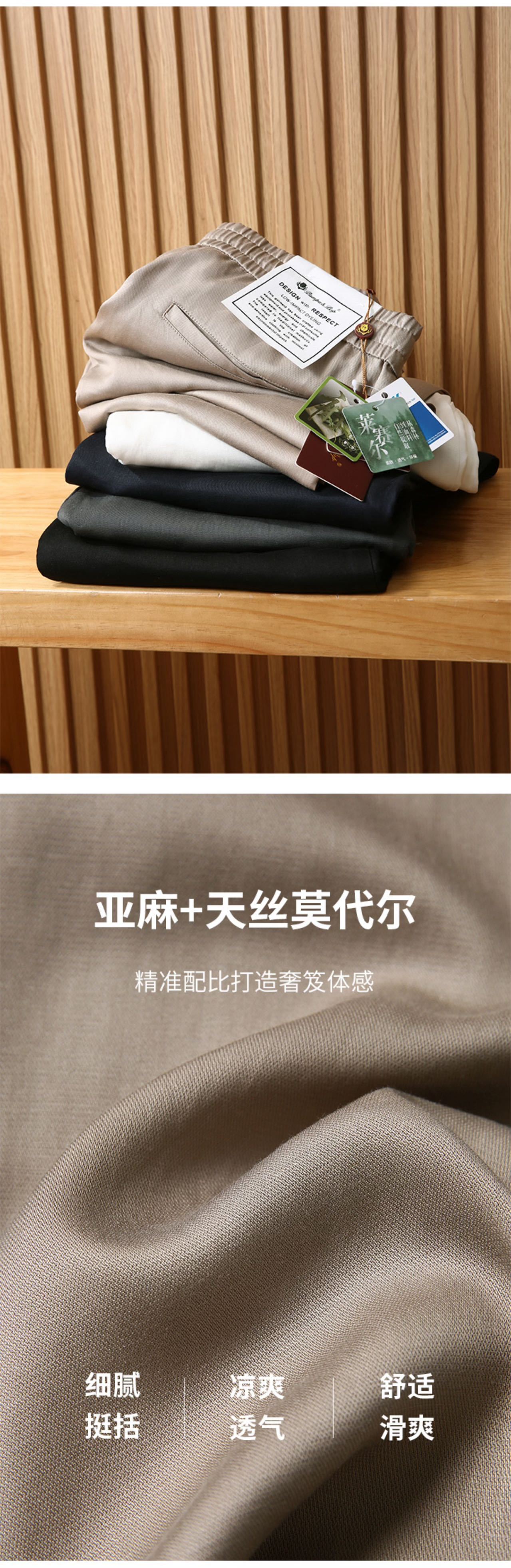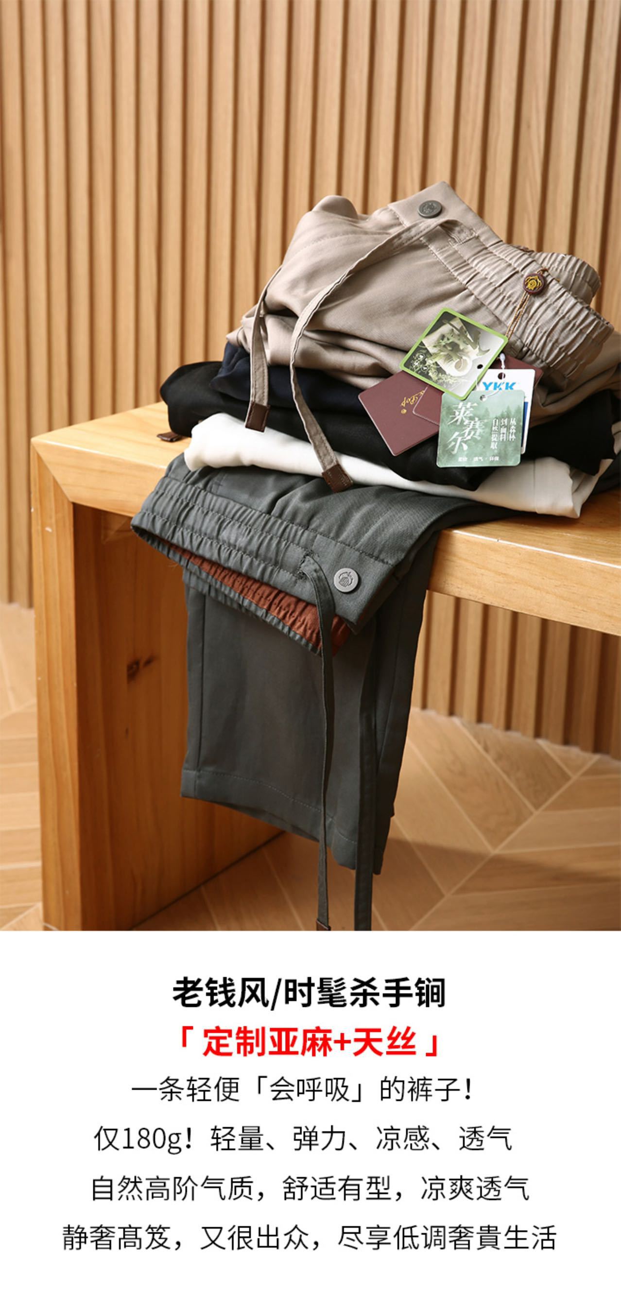 여름 호흡 ~ 180g 가벼운 공기 느낌 통기성 시원한 느낌 오래 된 돈 바람 남자의 Tiansilk 대마 여름 캐주얼 바지