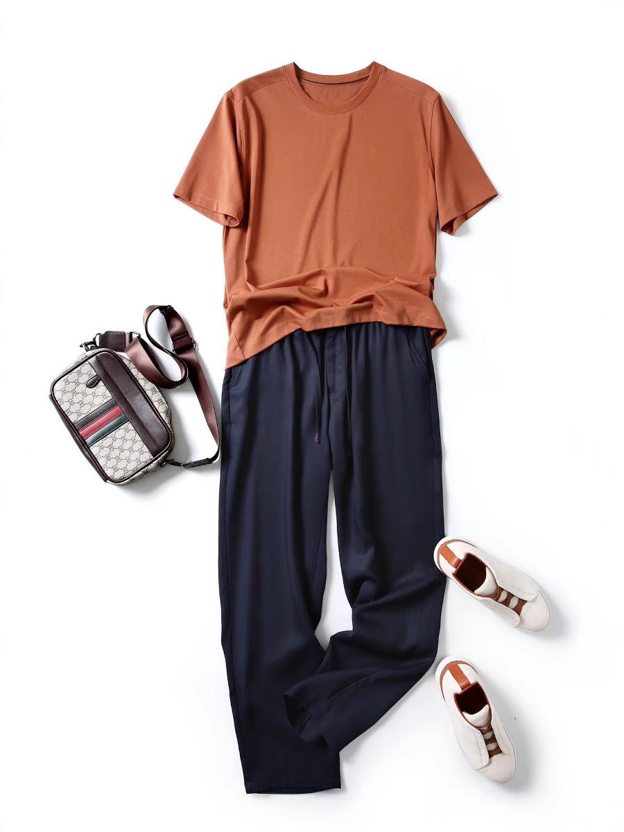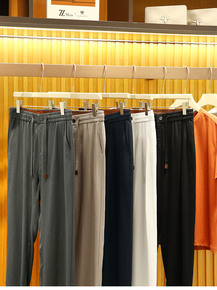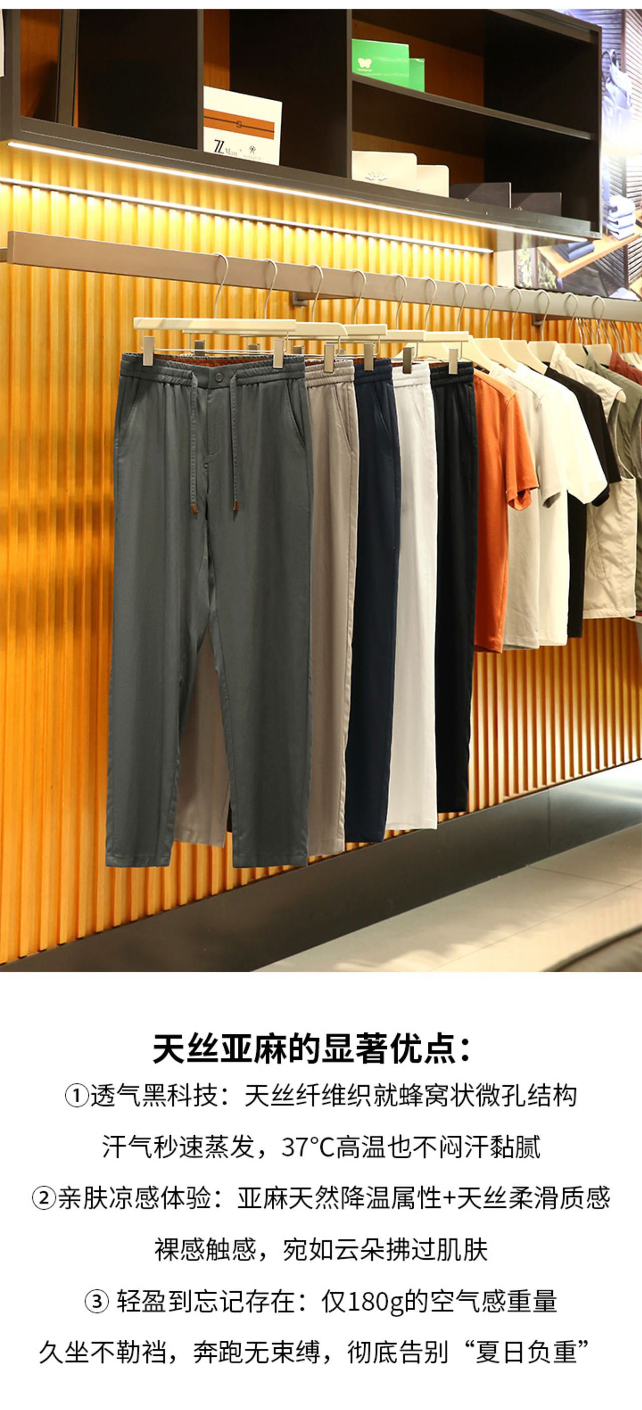 여름 호흡 ~ 180g 가벼운 공기 느낌 통기성 시원한 느낌 오래 된 돈 바람 남자의 Tiansilk 대마 여름 캐주얼 바지